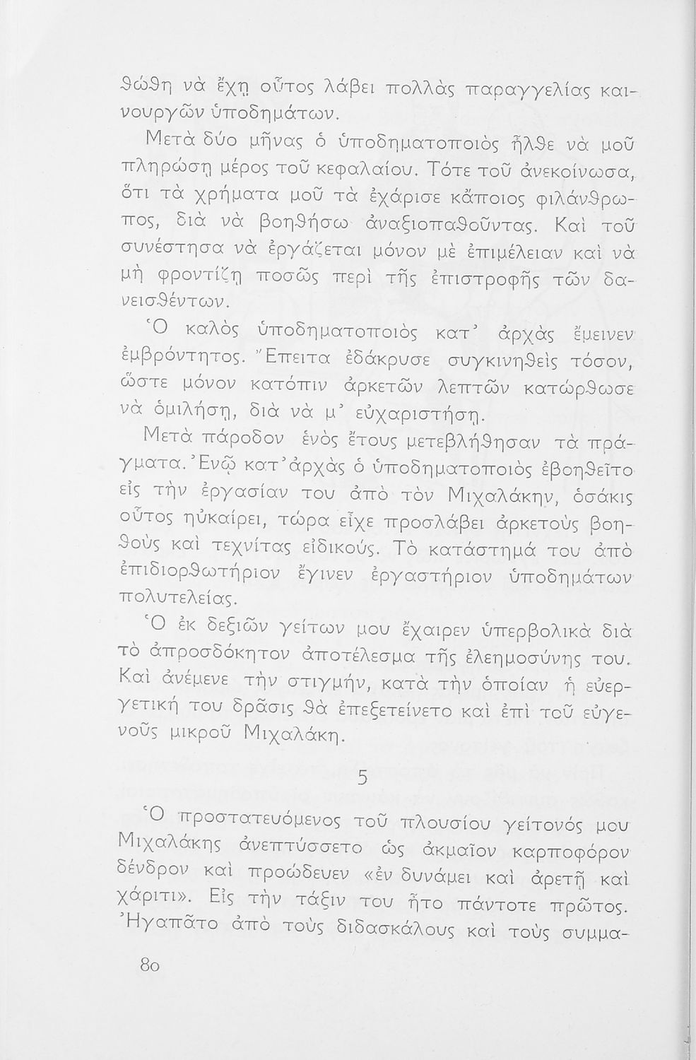 Αναγνωστικό Ε΄ Δημοτικού που περιλαμβάνει κείμενα με θέματα από τη θρησκευτική παράδοση, την οικογενειακή ζωή, την ελληνική μυθολογία, το ζωικό βασίλειο, τις ηθικές αρετές, την πατρίδα, τη βυζαντινή πολιτιστική παράδοση και την υγιεινή.