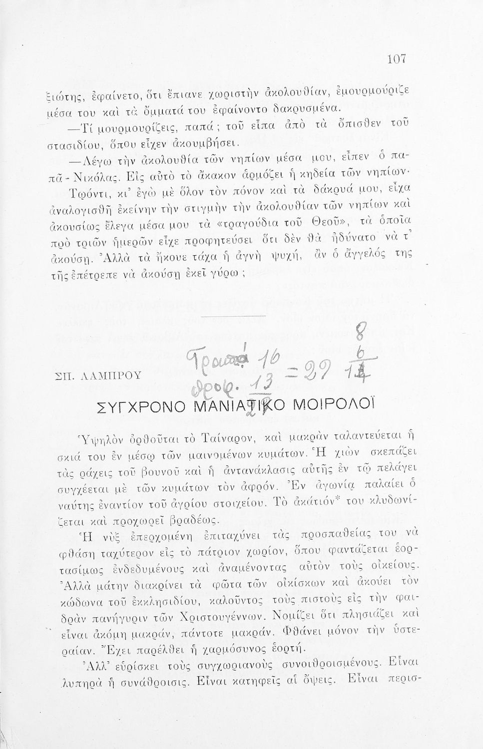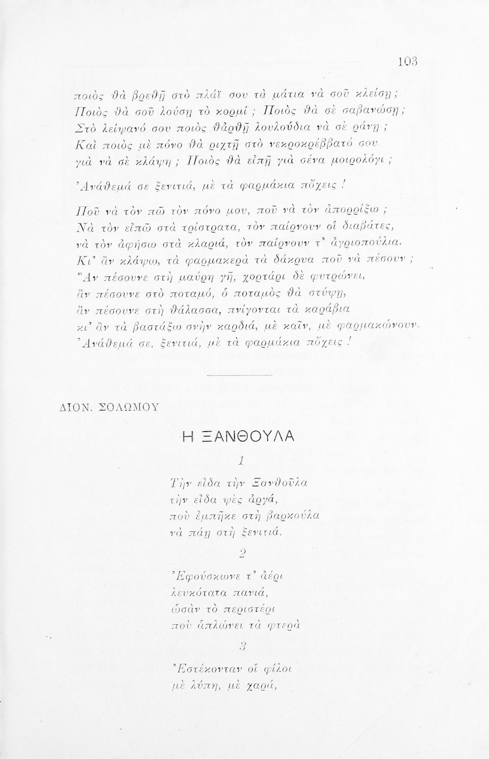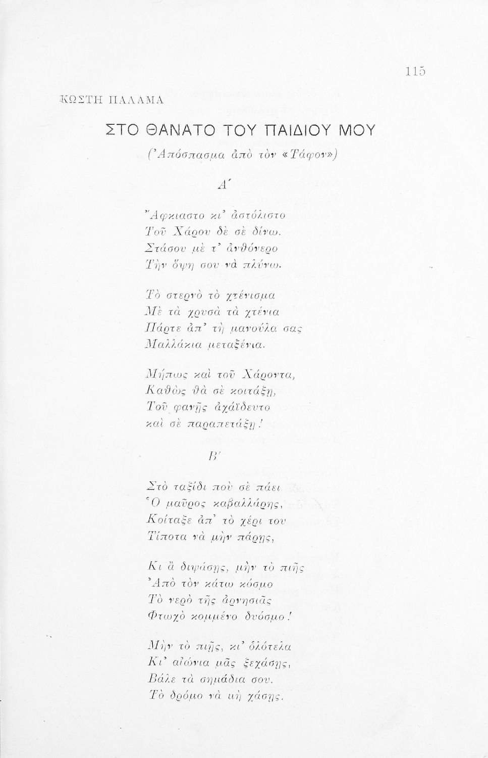 Σχετιζόμενοι όροι:  Παπαντωνίου, Πολέμης, Παλαμάς, Βηλαράς