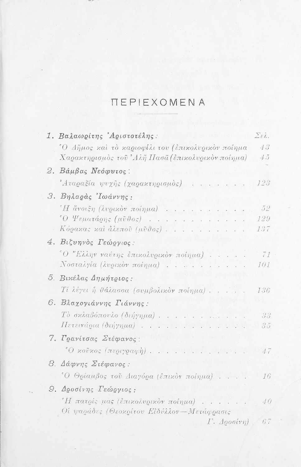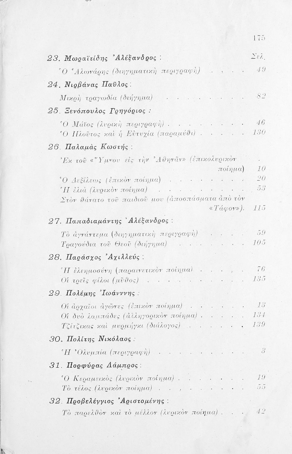 Σχετιζόμενοι όροι:  Παπαντωνίου, Πολέμης, Παλαμάς, Βιλαράς