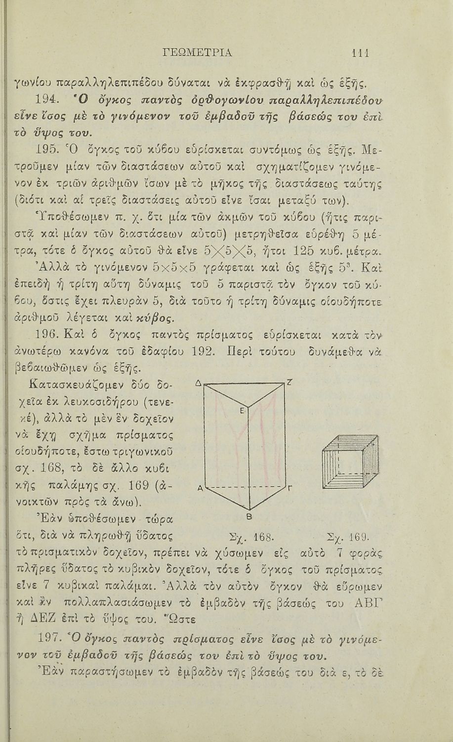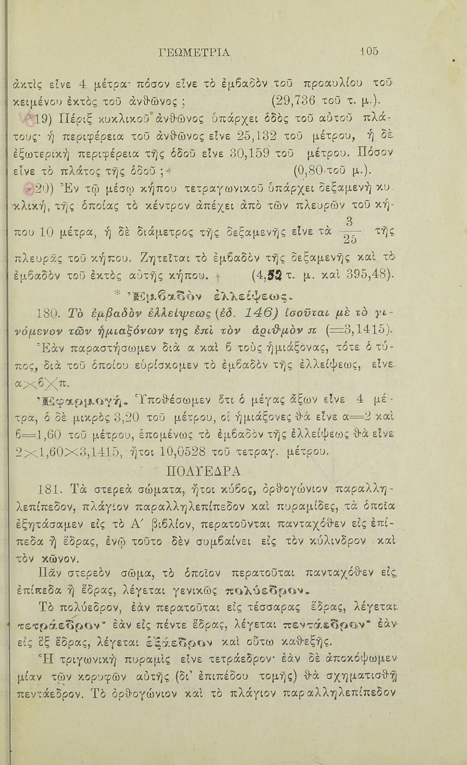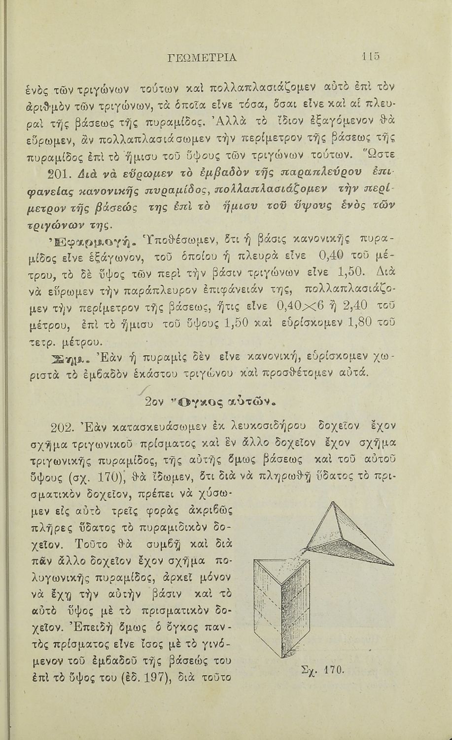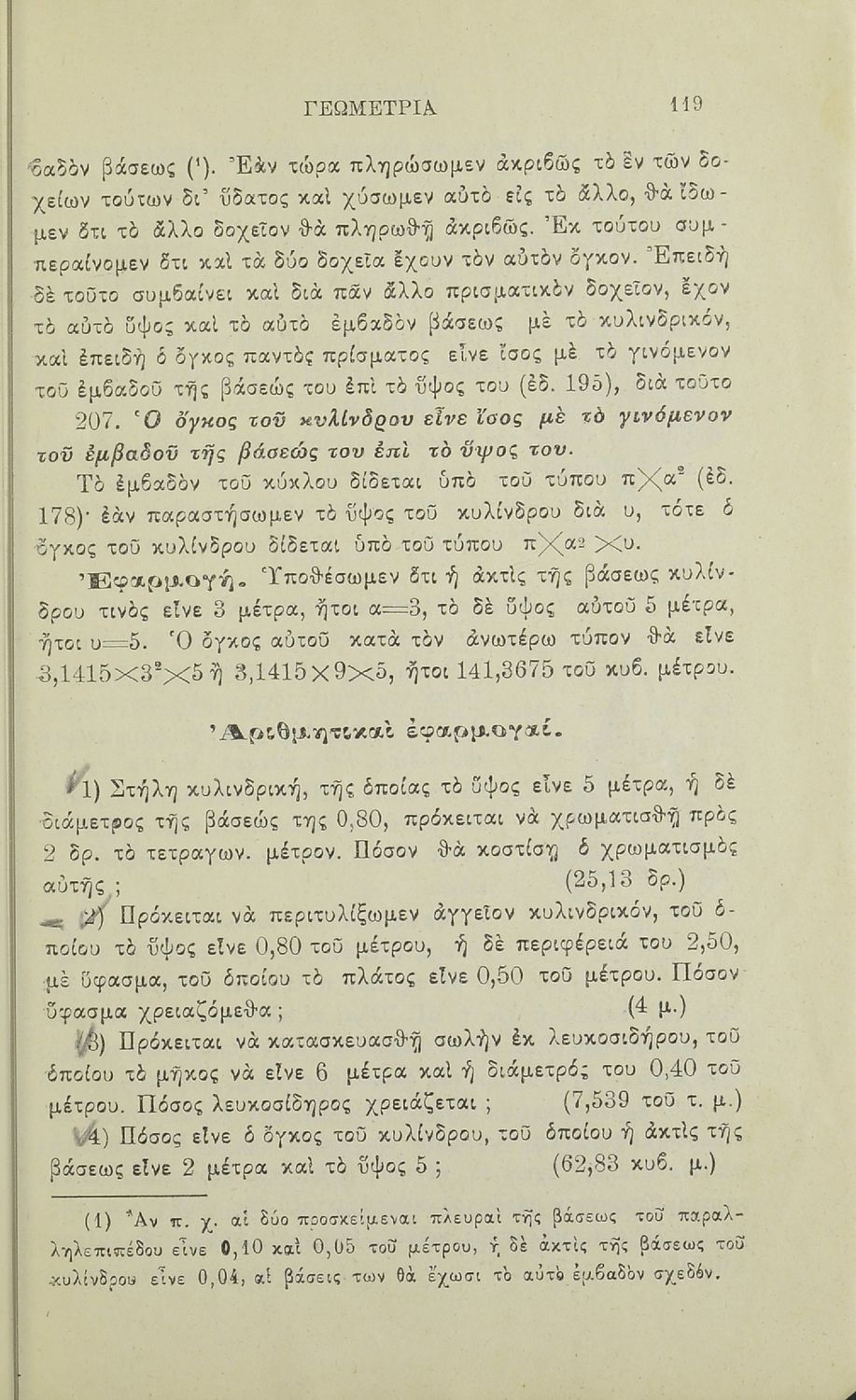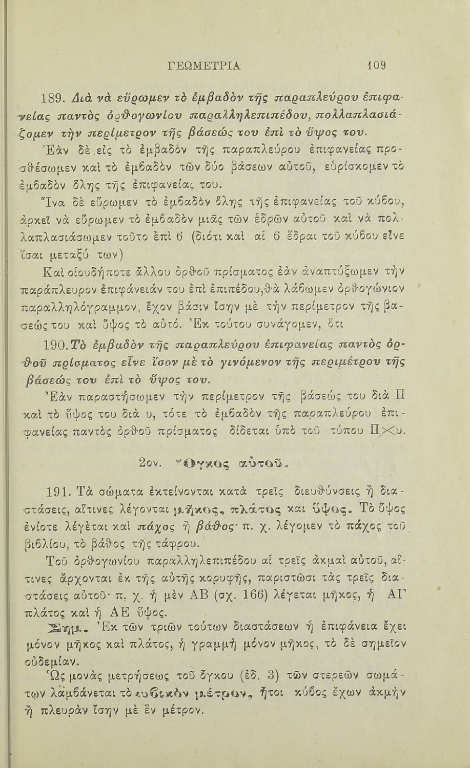 Σχολικό εγχειρίδιο Γεωμετρίας για την Α΄, Β΄ και Γ΄ τάξη των Ελληνικών και Αστικών Σχολείων και Παρθεναγωγείων που είναι χωρισμένο σε Επιπεδομετρία και Στερεομετρία και περιλαμβάνει θεωρία και ασκήσεις.
