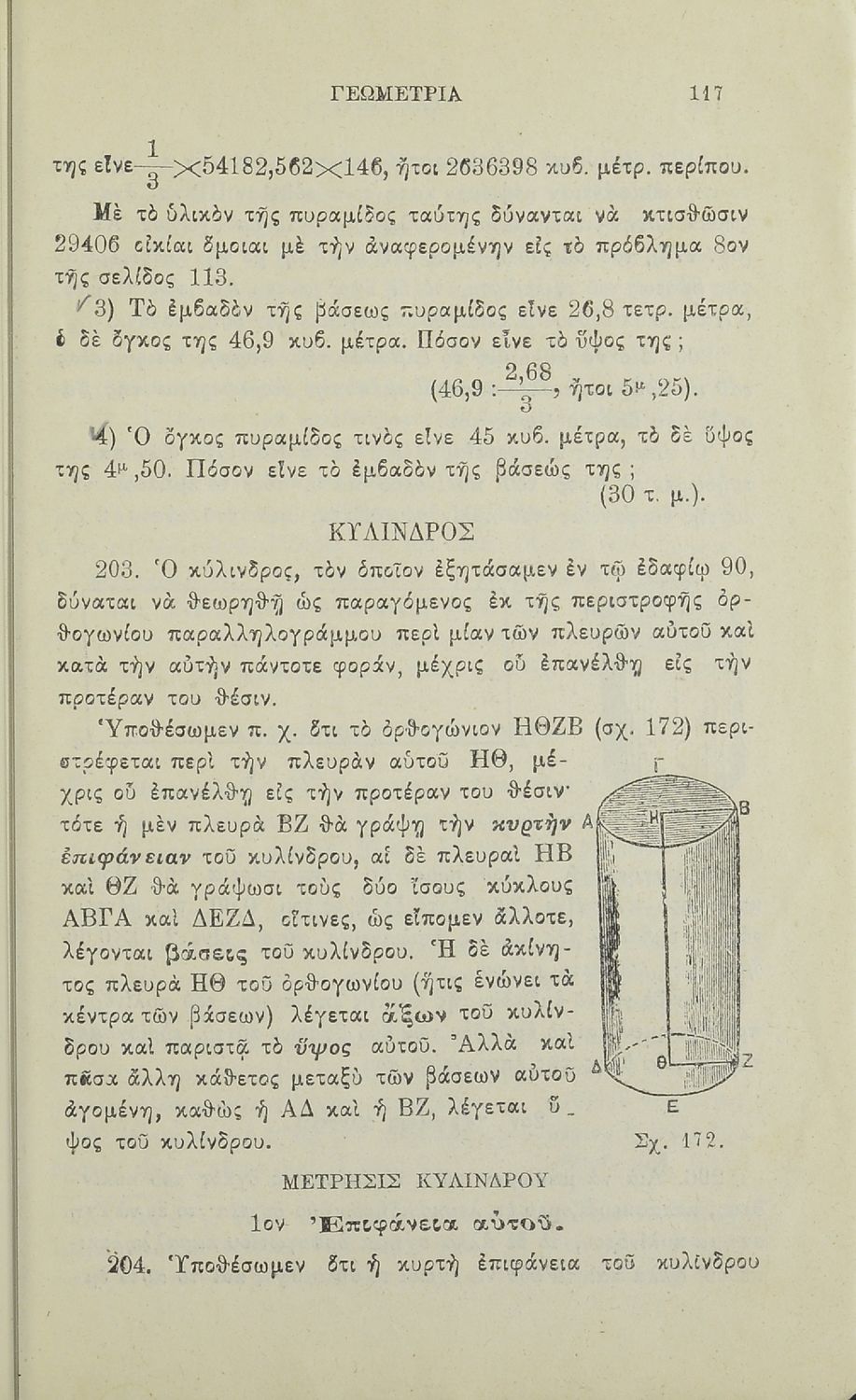 Σχολικό εγχειρίδιο Γεωμετρίας για τις Α΄, Β΄, Γ' Ελληνικού Σχολείου που περιλαμβάνει θεωρία, προβλήματα και ασκήσεις και εστιάζει στα γεωμετρικά σχήματα και σώματα και τη μέτρησή τους.