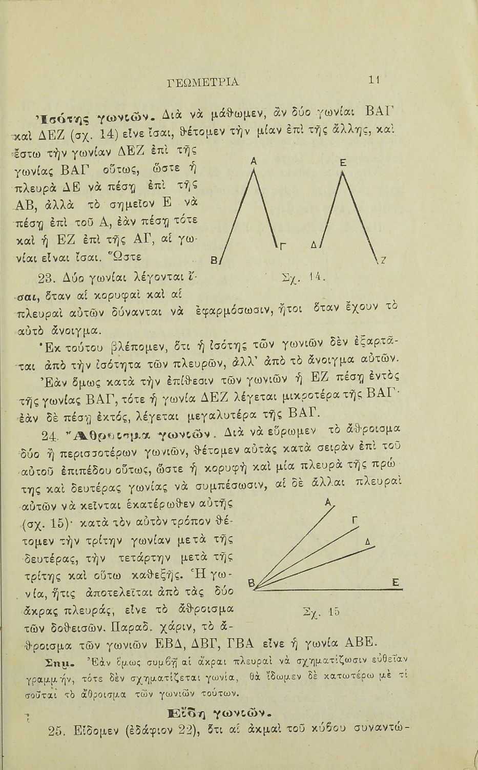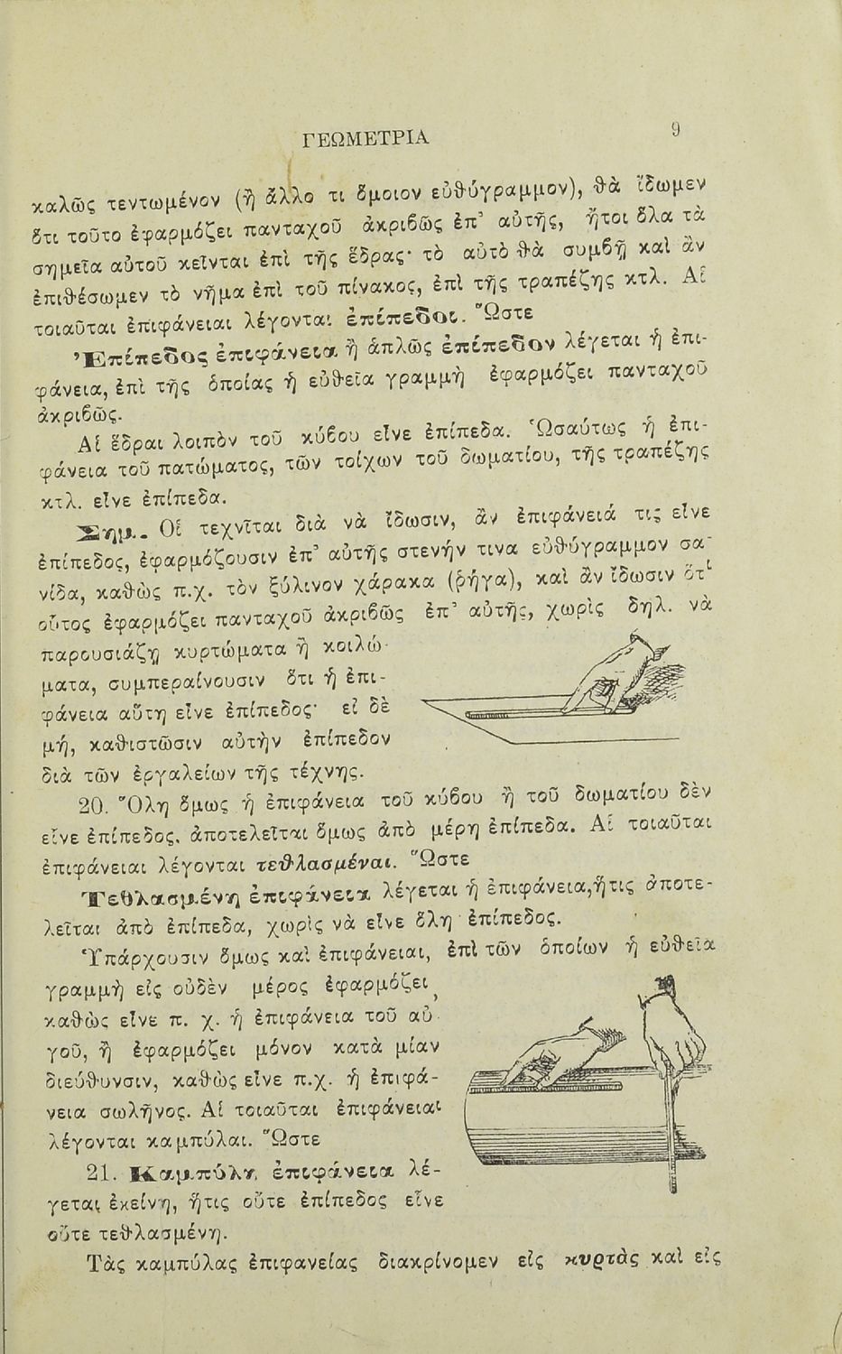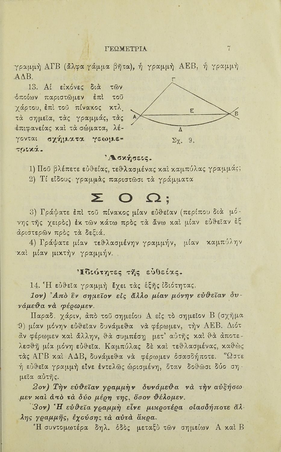 Σχολικό εγχειρίδιο Γεωμετρίας για την Α΄, Β΄ και Γ΄ τάξη των Ελληνικών και Αστικών Σχολείων και Παρθεναγωγείων που είναι χωρισμένο σε Επιπεδομετρία και Στερεομετρία και περιλαμβάνει θεωρία και ασκήσεις.