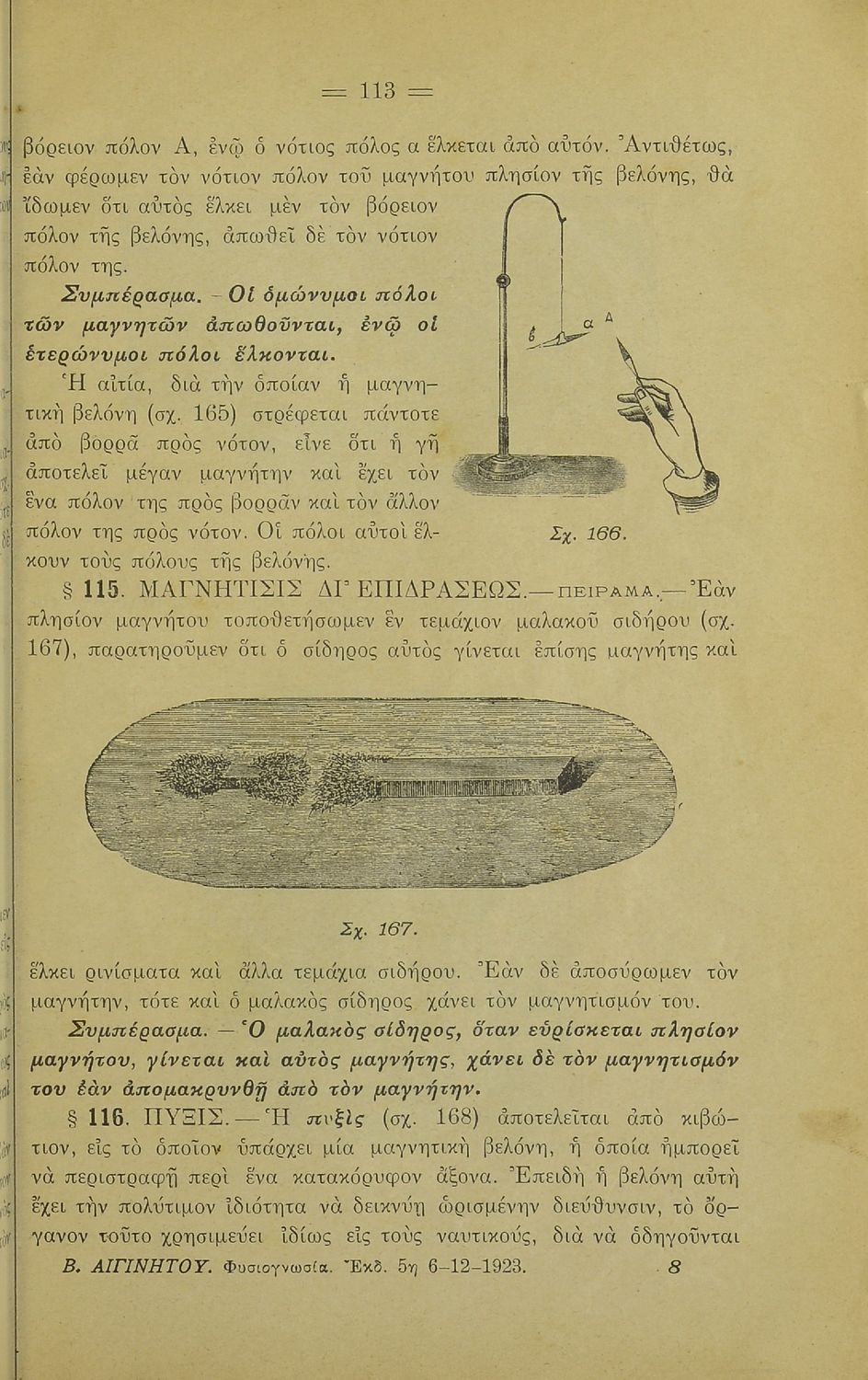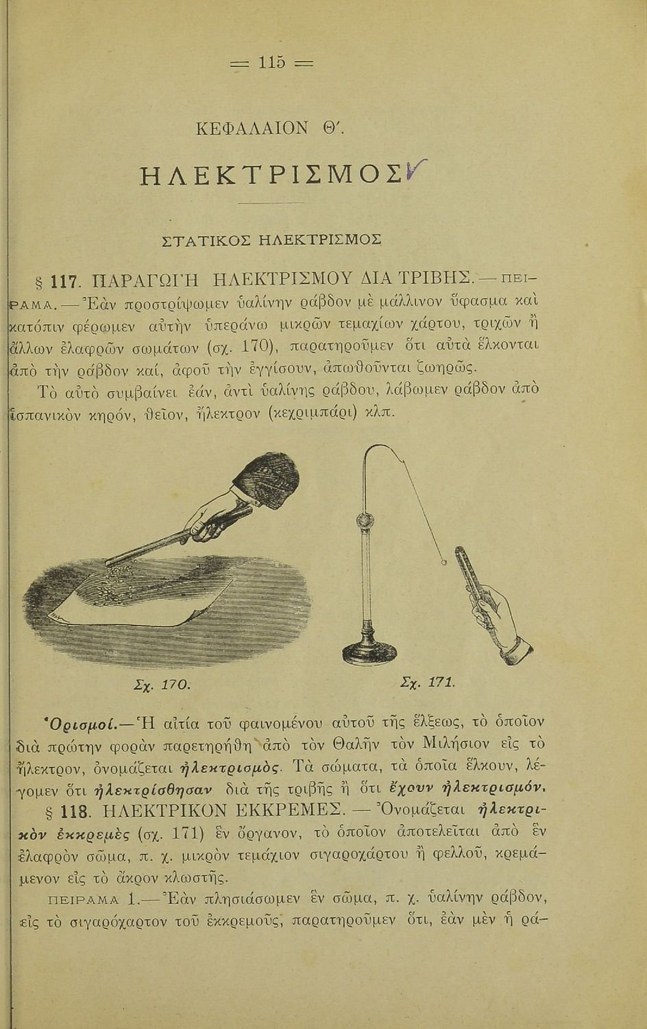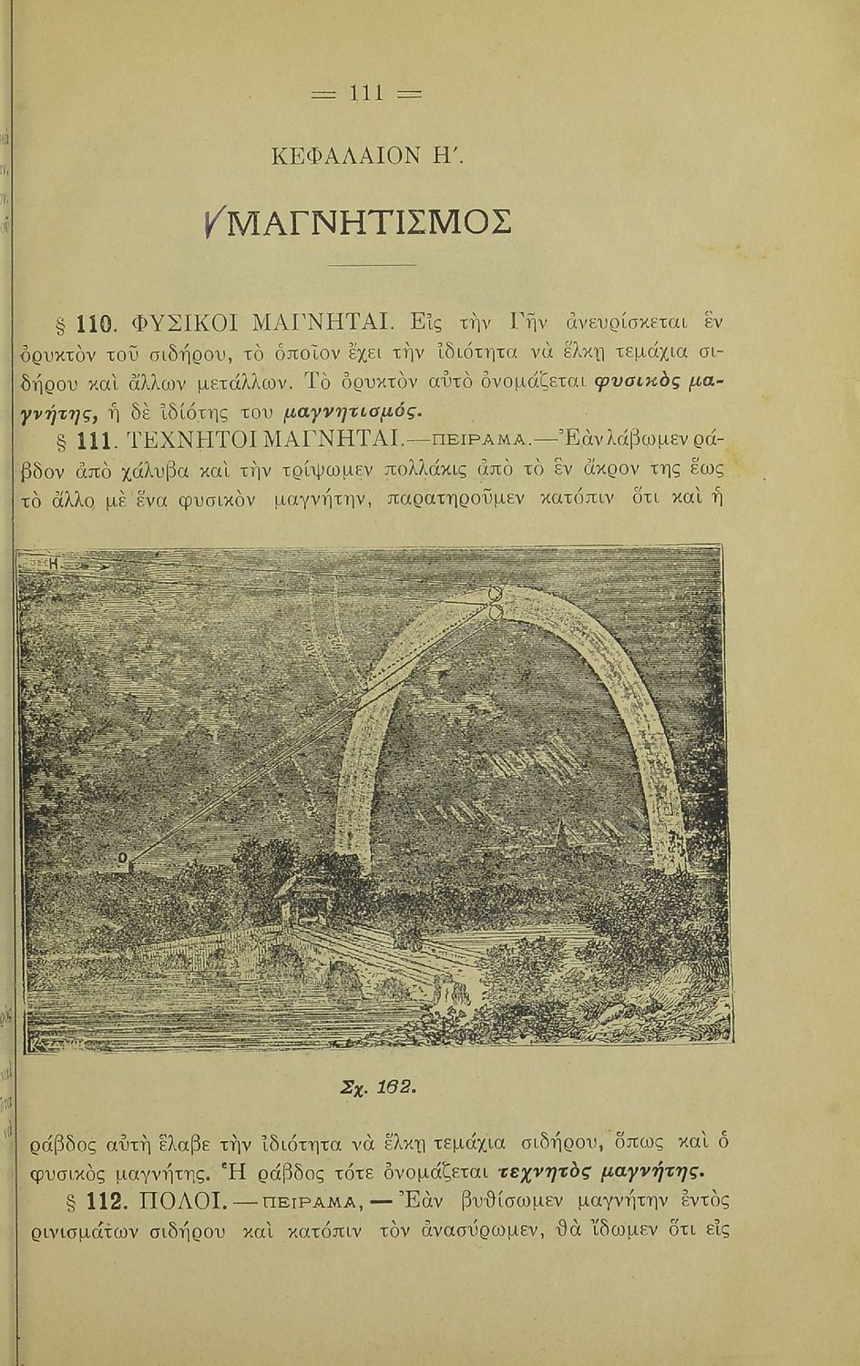 Σχολικό εγχειρίδιο Φυσικής για τα Ελληνικά Σχολεία και Παρθεναγωγεία που εστιάζει στα φαινόμενα της θερμότητας, του ηλεκτρισμού και του μαγνητισμού, τις δυνάμεις και την πίεση.