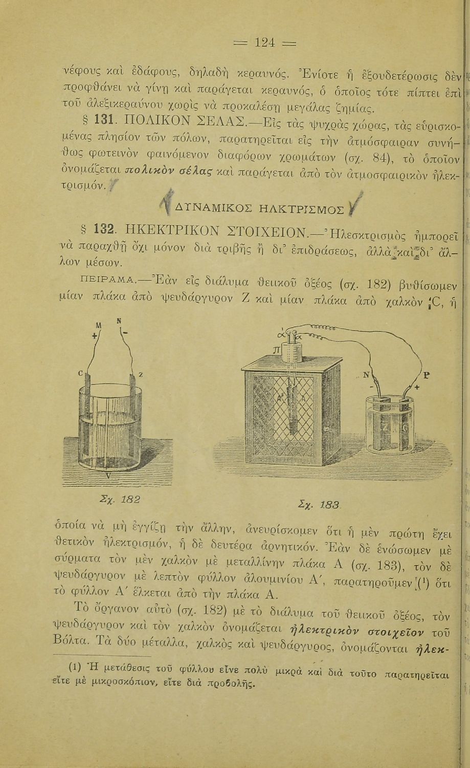 Σχολικό εγχειρίδιο Φυσικής και Χημείας για τα Ελληνικά Σχολεία και Παρθεναγωγεία που εστιάζει στα φυσικά φαινόμενα όπως ο ηλεκτρισμός και ο μαγνητισμός και τα βασικά στοιχεία της χημείας όπως τα οξέα και τα άλατα. Περιέχει και στοιχεία φυσιολογίας και ανατομίας.