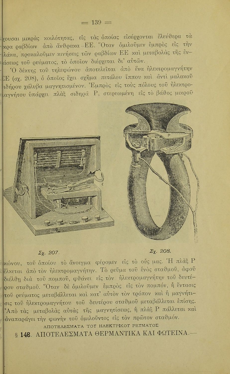 Σχολικό εγχειρίδιο Φυσικής για τα Ελληνικά Σχολεία και Παρθεναγωγεία που εστιάζει στα φαινόμενα της θερμότητας, του ηλεκτρισμού και του μαγνητισμού, τις δυνάμεις και την πίεση.