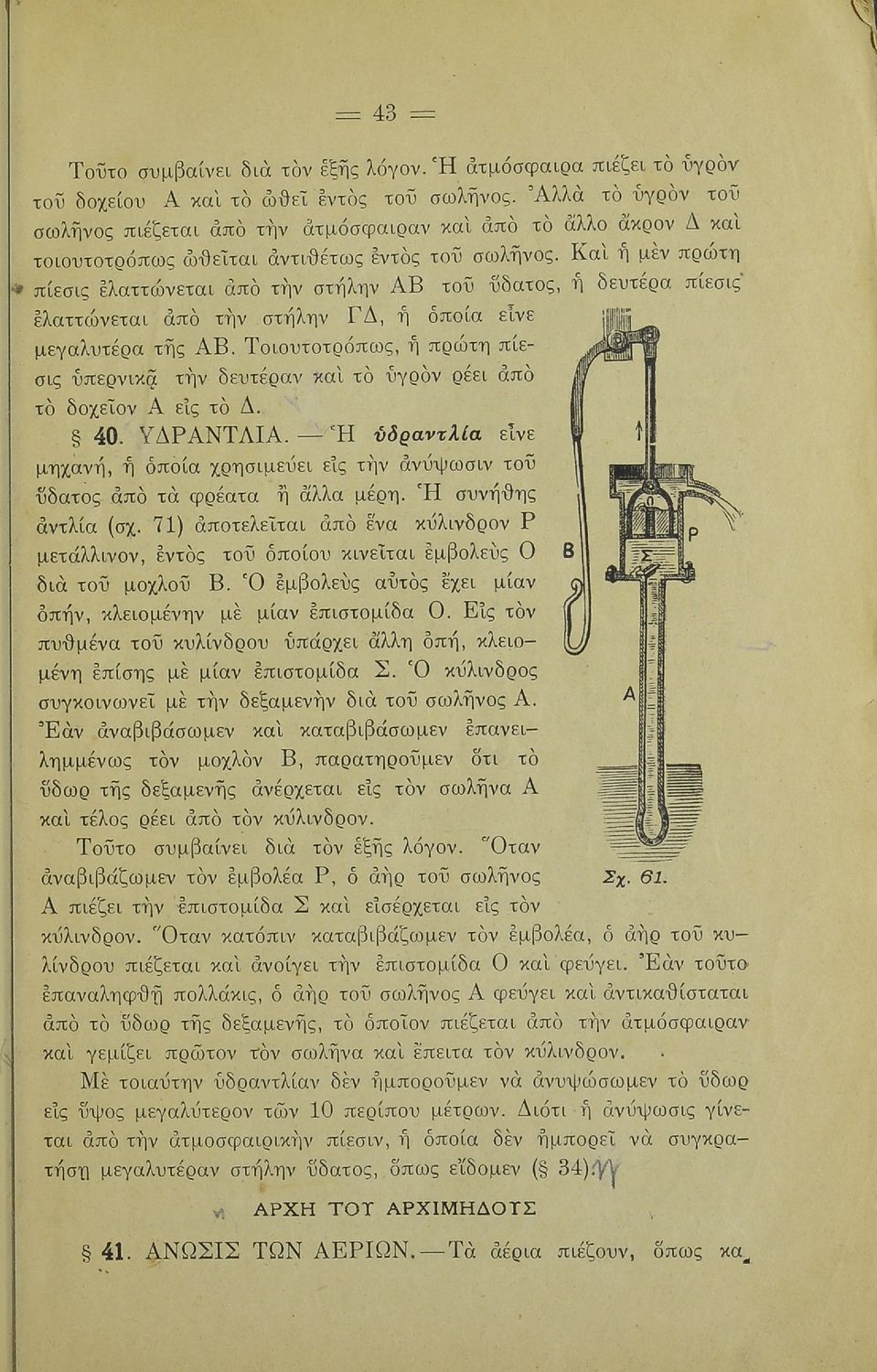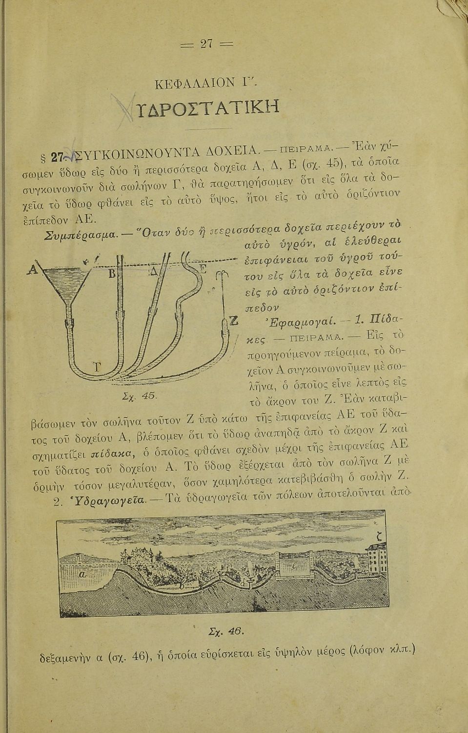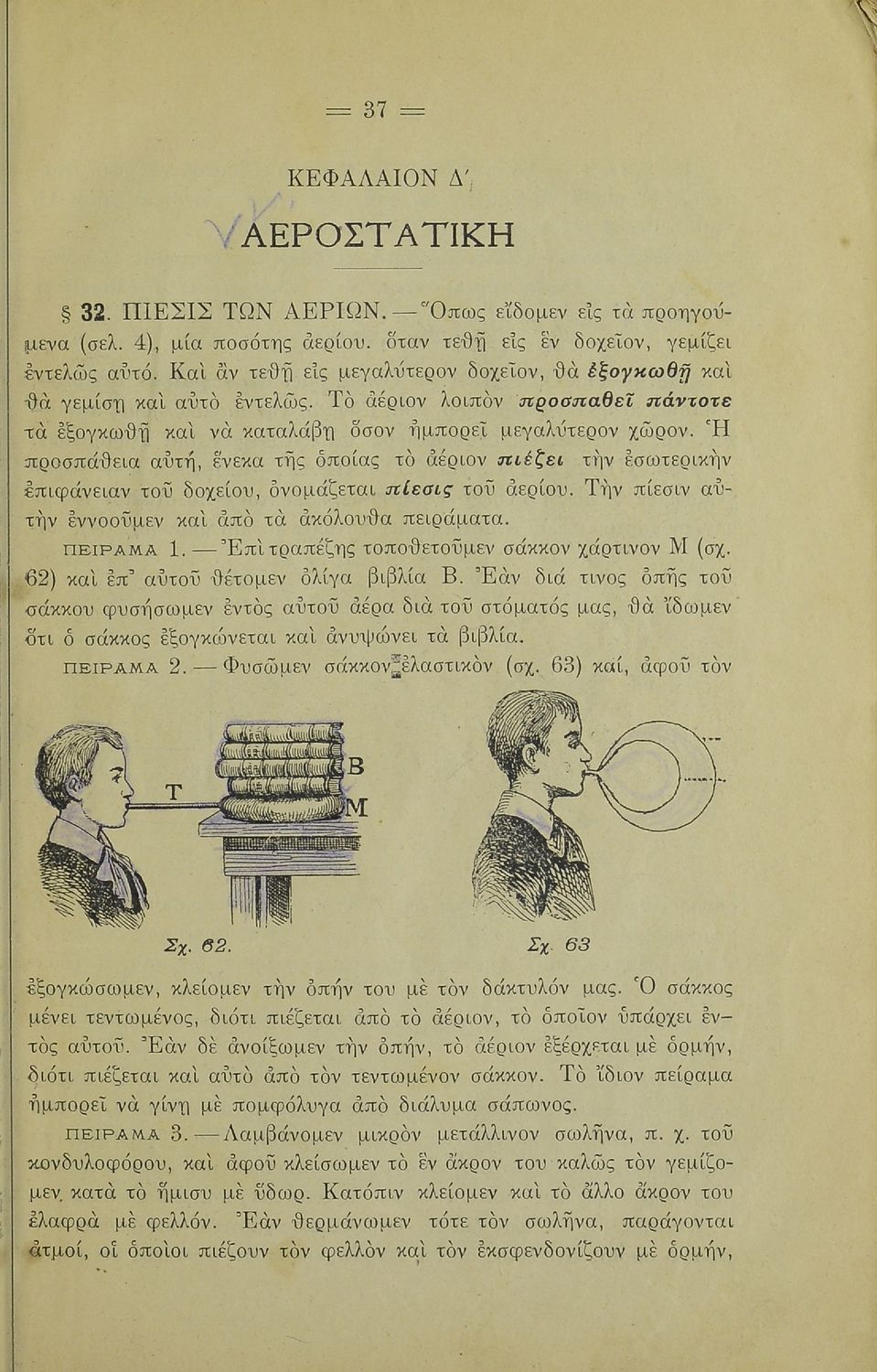 Σχολικό εγχειρίδιο Φυσικής και Χημείας για τα Ελληνικά Σχολεία και Παρθεναγωγεία που εστιάζει στα φυσικά φαινόμενα όπως ο ηλεκτρισμός και ο μαγνητισμός και τα βασικά στοιχεία της χημείας όπως τα οξέα και τα άλατα. Περιέχει και στοιχεία φυσιολογίας και ανατομίας.