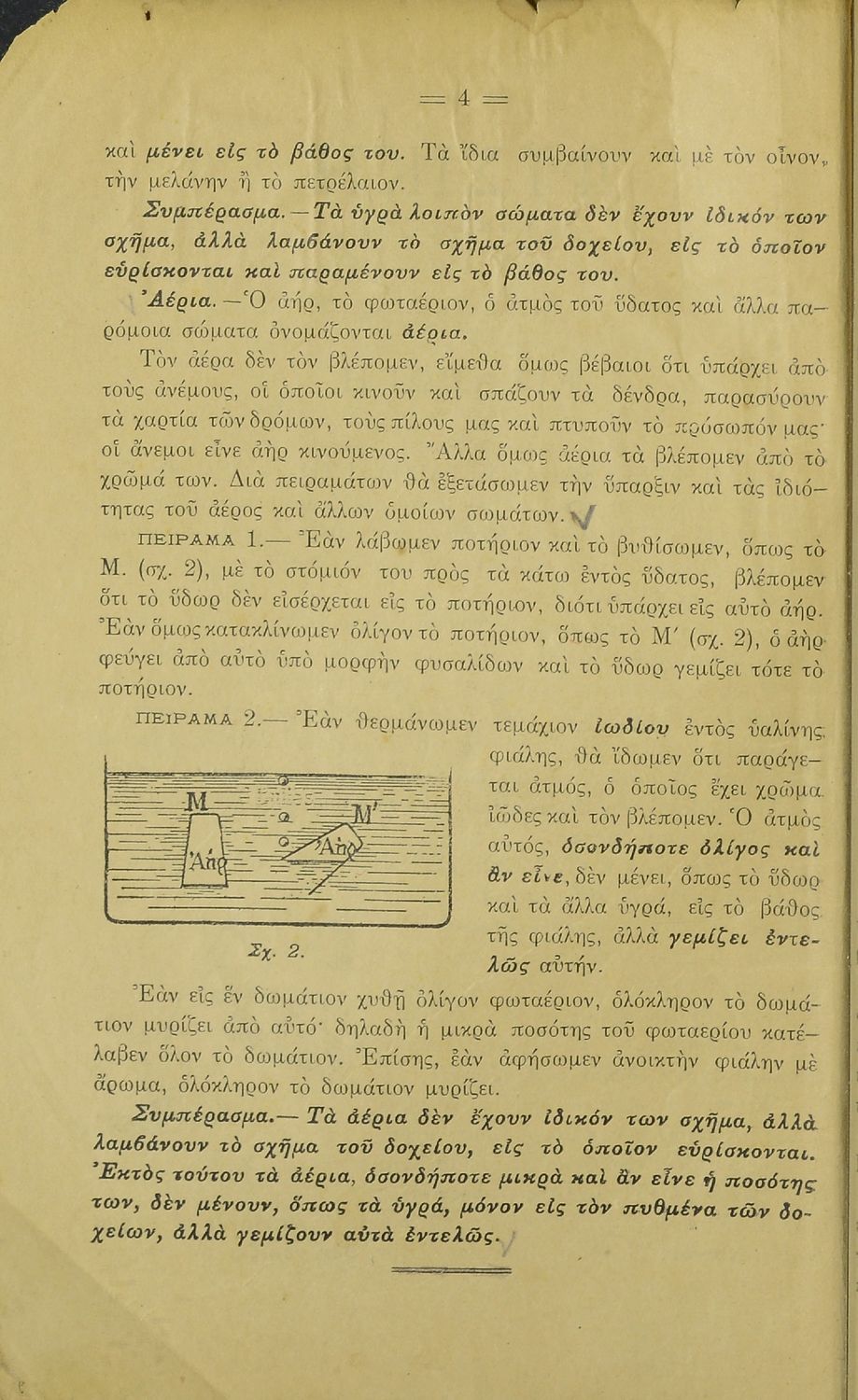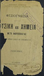 Σχολικό εγχειρίδιο Φυσικής και Χημείας για τα Ελληνικά Σχολεία και Παρθεναγωγεία που εστιάζει στα φυσικά φαινόμενα όπως ο ηλεκτρισμός και ο μαγνητισμός και τα βασικά στοιχεία της χημείας όπως τα οξέα και τα άλατα. Περιέχει και στοιχεία φυσιολογίας και ανατομίας.
