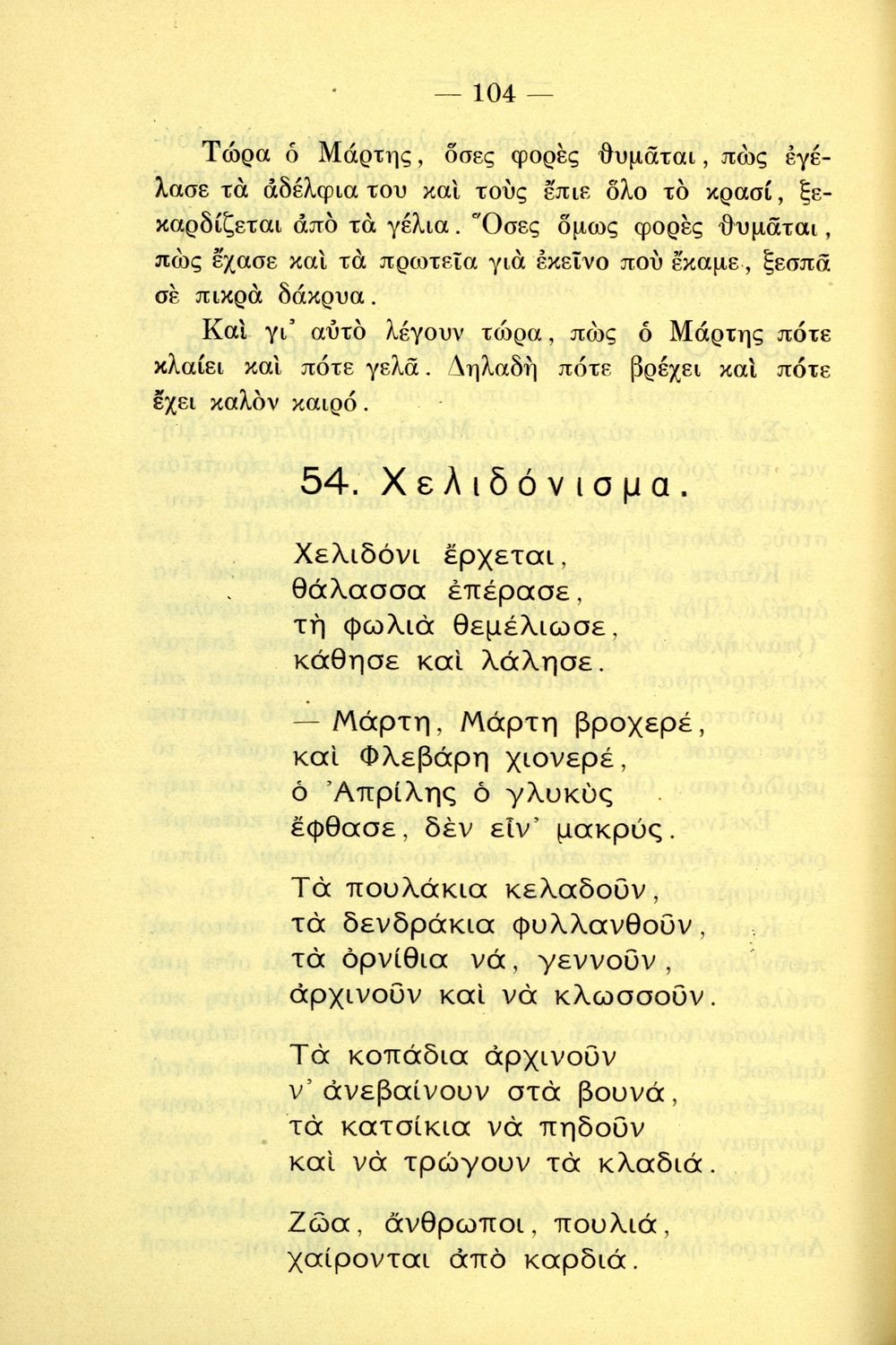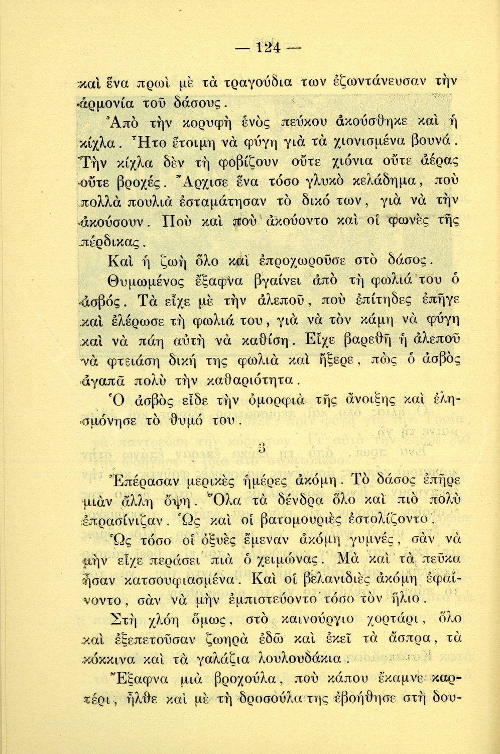 Αναγνωστικό Γ΄ Δημοτικού που περιλαμβάνει ποιήματα και πεζά εμπνευσμένα από την ελληνική φύση, τις ασχολίες των κατοίκων, την σύγχρονη ελληνική ιστορία, την ελληνική μυθολογία και τις θρησκευτικές γιορτές.