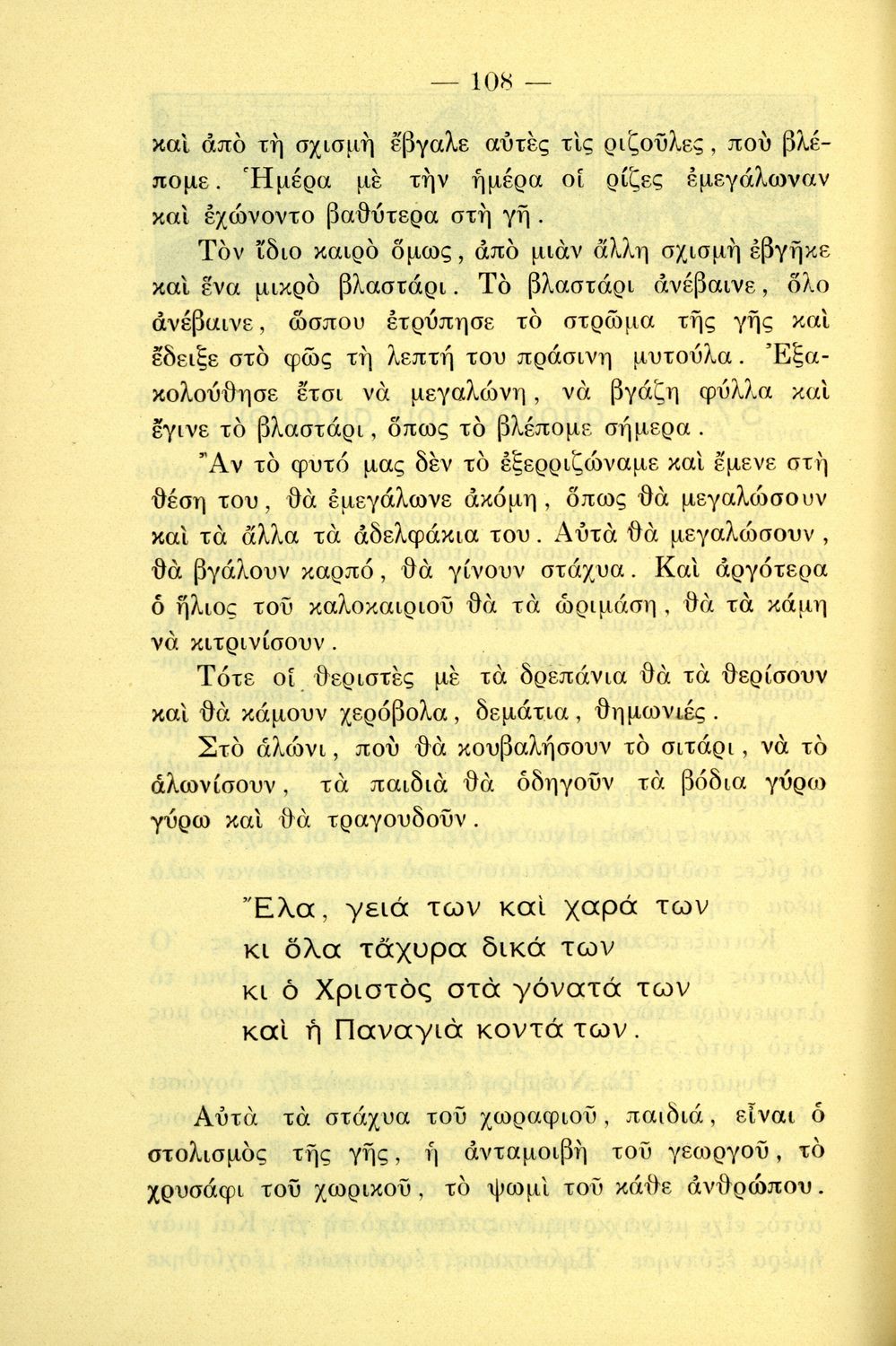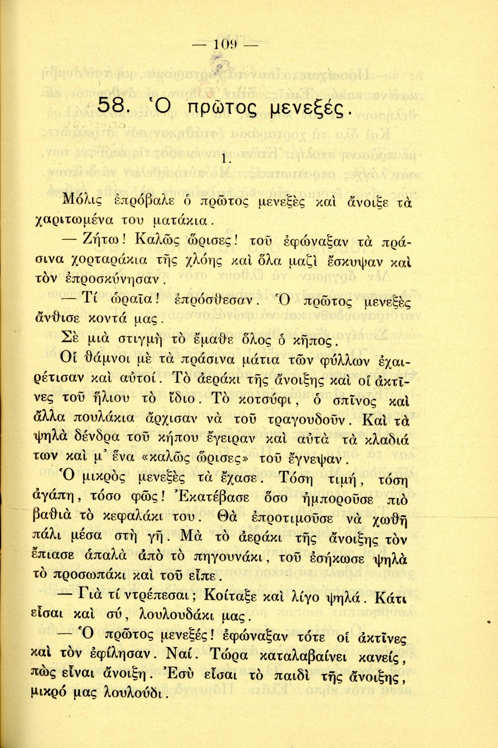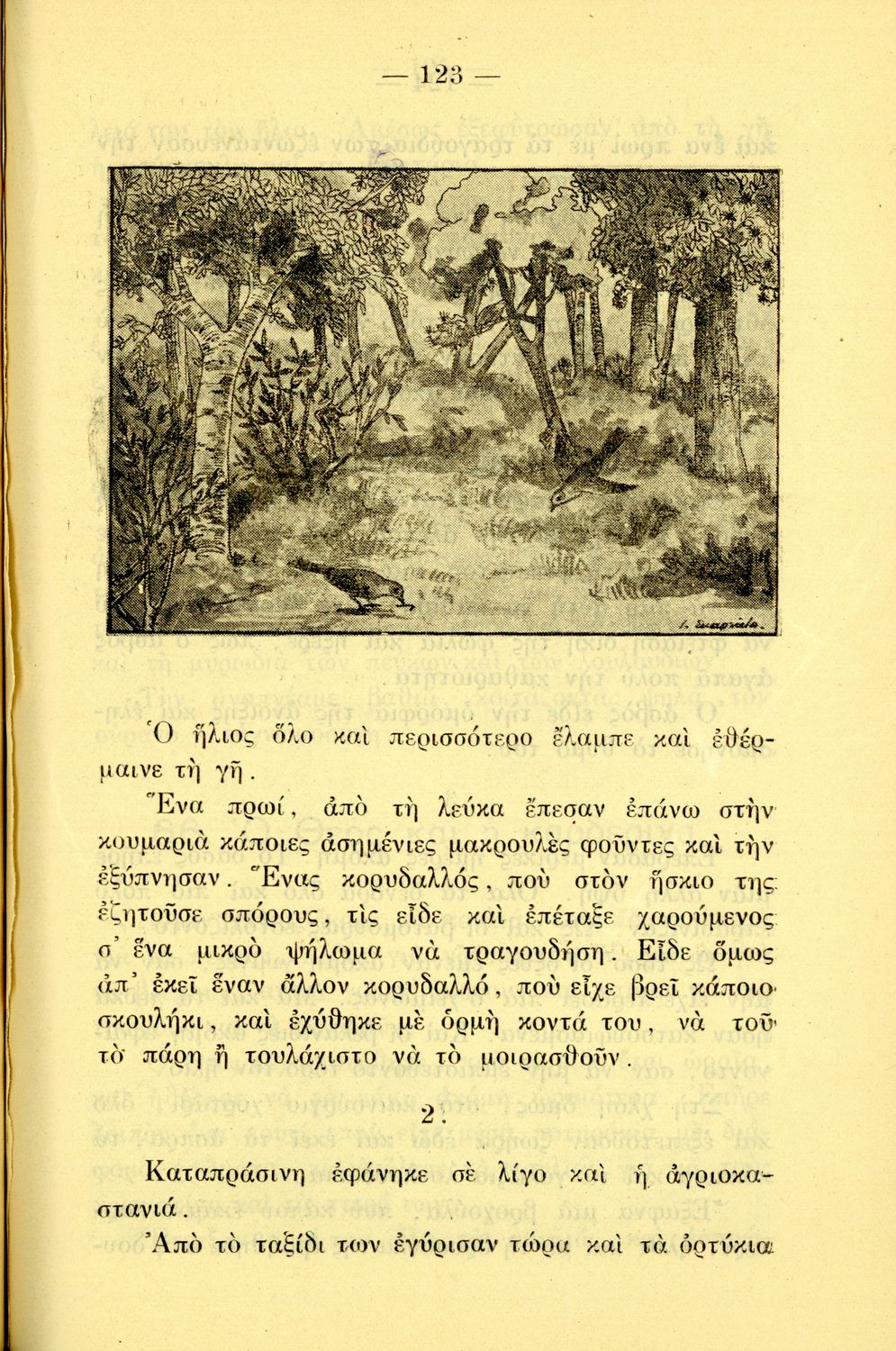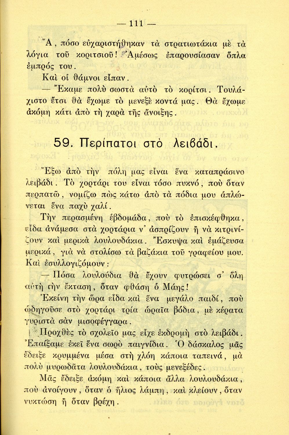 Αναγνωστικό της Γ΄ Δημοτικού που περιλαμβάνει μικρές ιστορίες εθνικιστικού περιεχομένου εμπνευσμένες από την ύπαιθρο, την οικογενειακή και κοινωνική ζωή αλλά και το εθνικό παρελθόν.