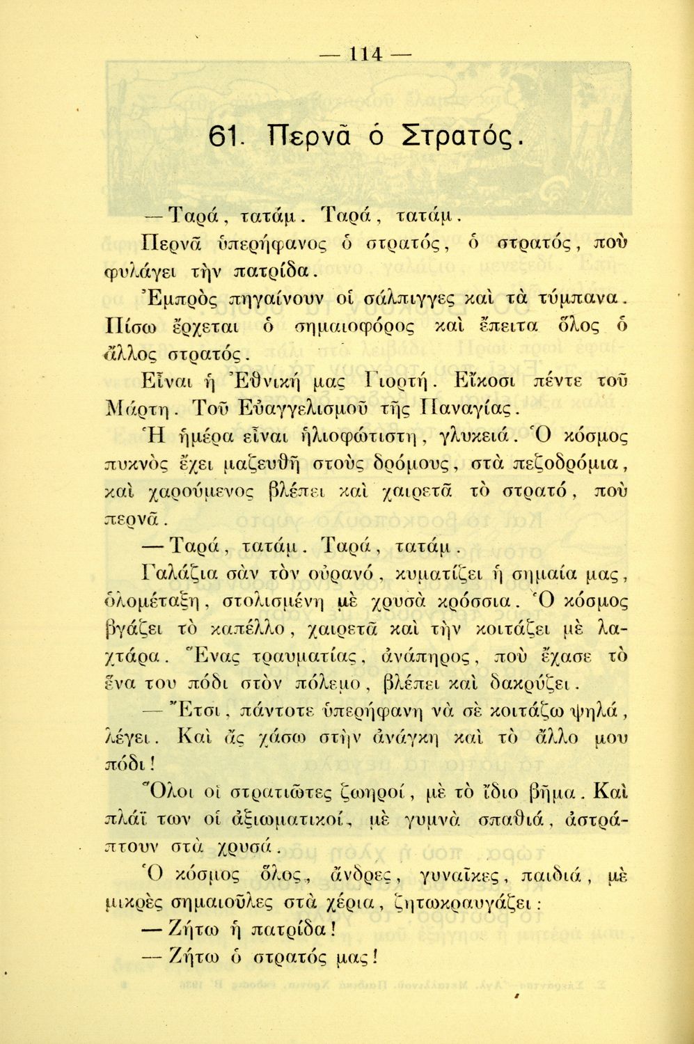 Αναγνωστικό της ΣΤ΄ Δημοτικού που κυκλοφόρησε σε 7.000 αντίτυπα 25 ημέρες πριν την 4η Αυγούστου 1936, οπότε κατά την επόμενη σχολική χρονιά διδάχτηκε ελάχιστα και η έκδοσή του με αυτή την μορφή σταμάτησε.
