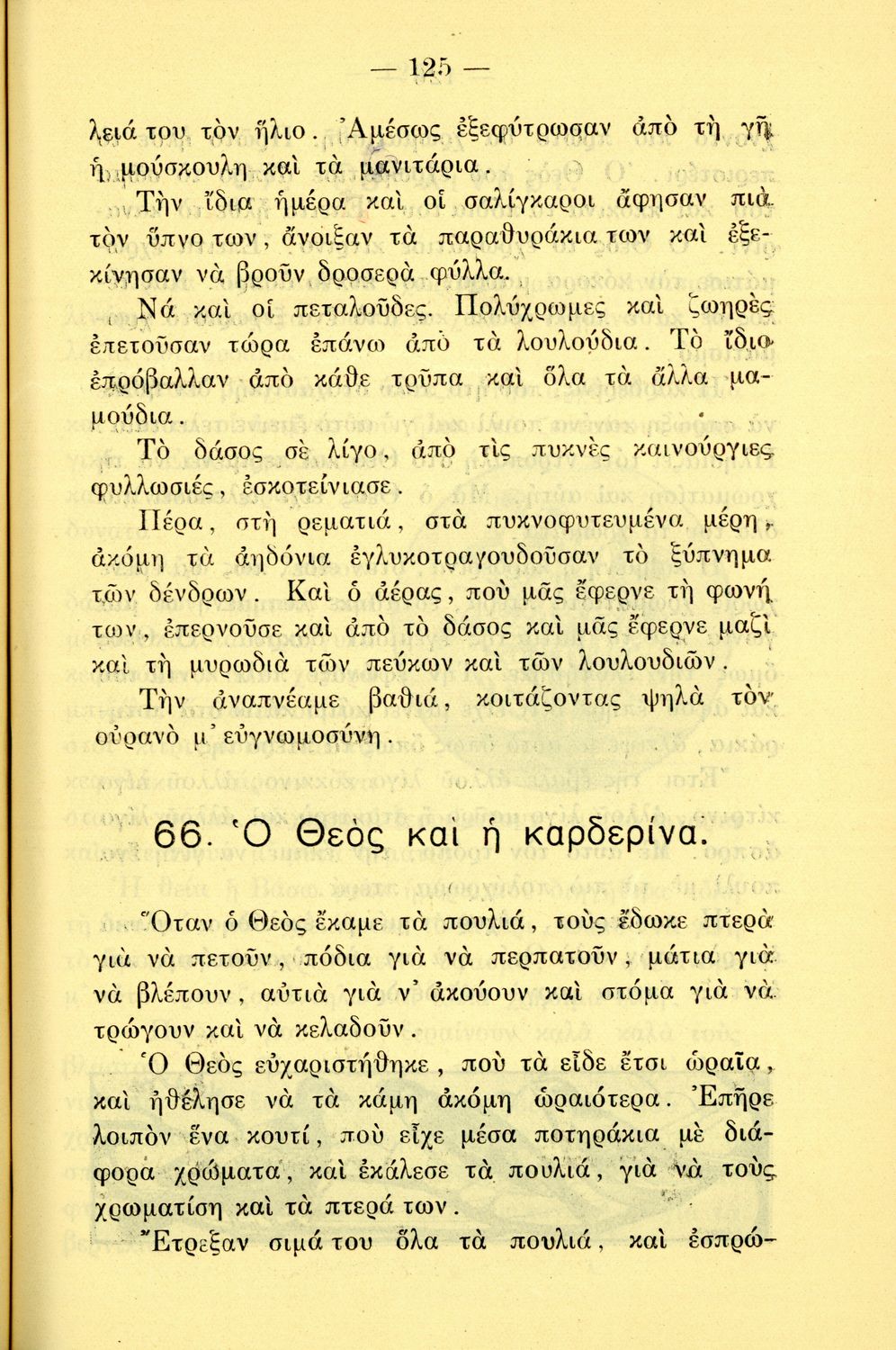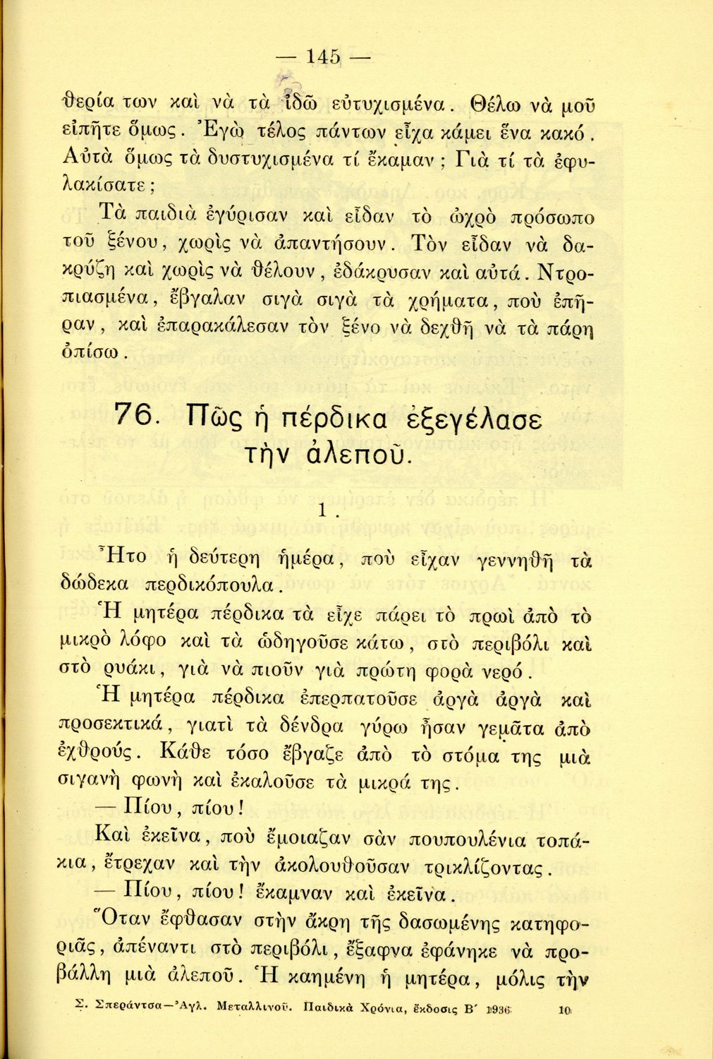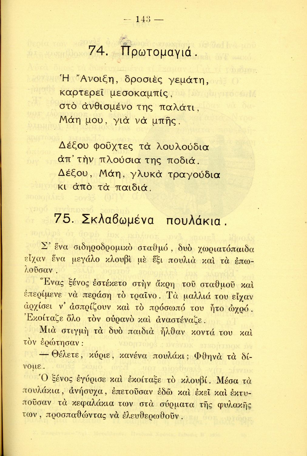 Αναγνωστικό της Γ΄ Δημοτικού που περιλαμβάνει μικρές ιστορίες εθνικιστικού περιεχομένου εμπνευσμένες από την ύπαιθρο, την οικογενειακή και κοινωνική ζωή αλλά και το εθνικό παρελθόν.