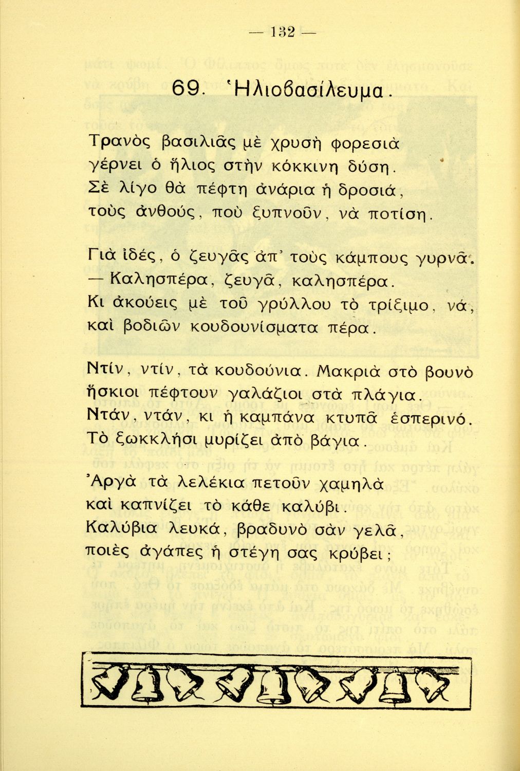 Αναγνωστικό Γ΄ Δημοτικού που περιλαμβάνει ποιήματα και πεζά εμπνευσμένα από την ελληνική φύση, τις ασχολίες των κατοίκων, την σύγχρονη ελληνική ιστορία, την ελληνική μυθολογία και τις θρησκευτικές γιορτές.