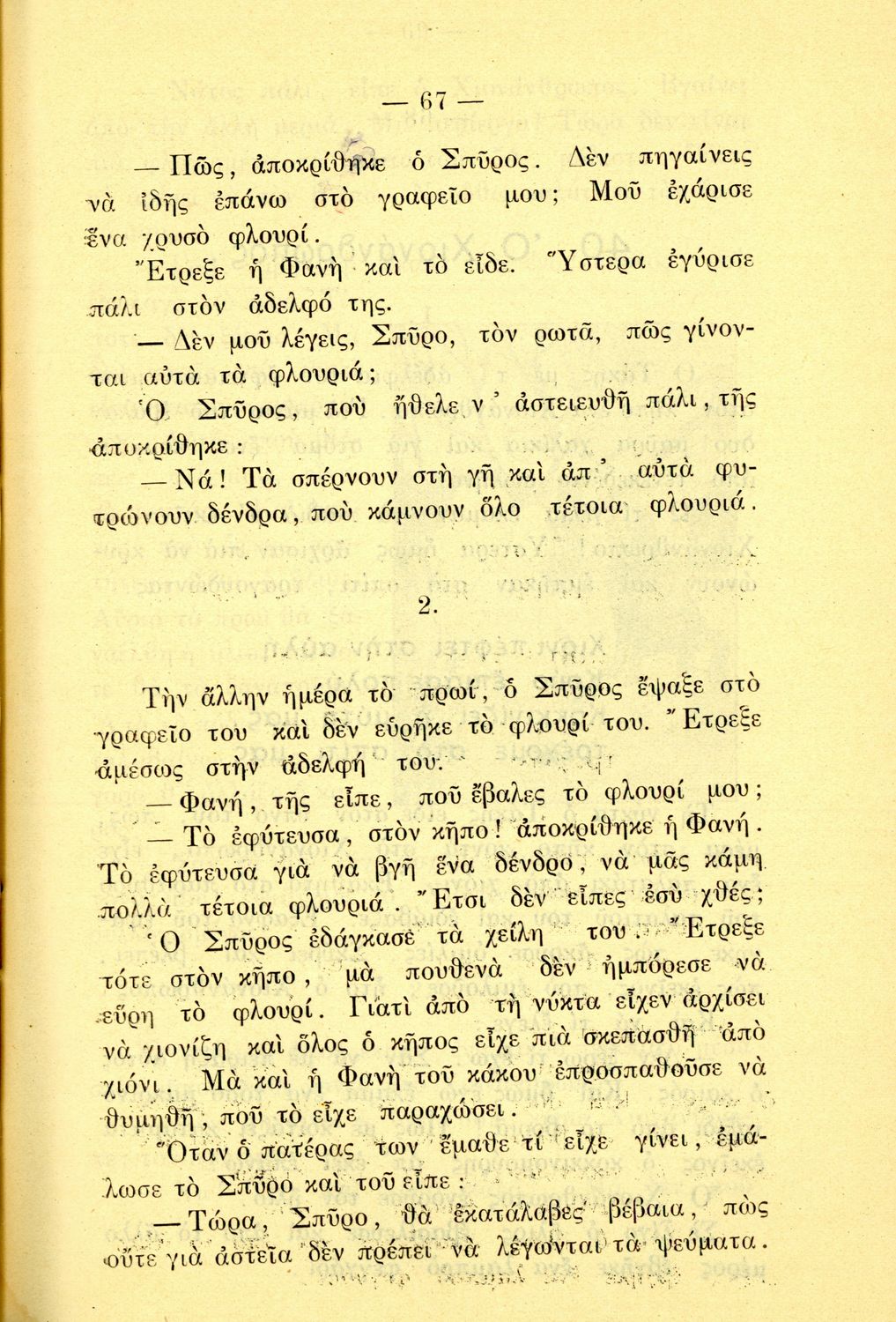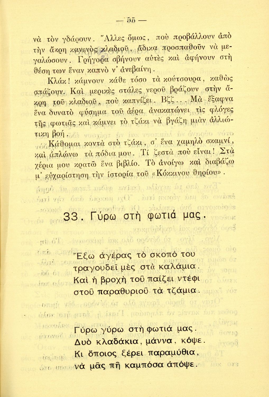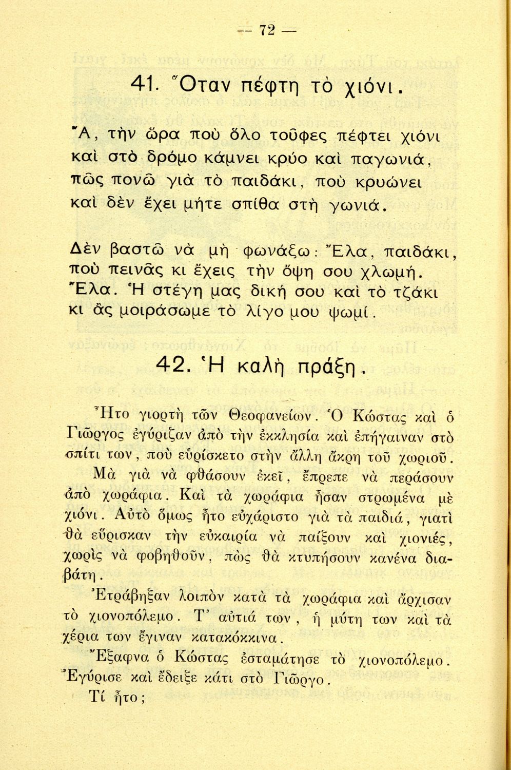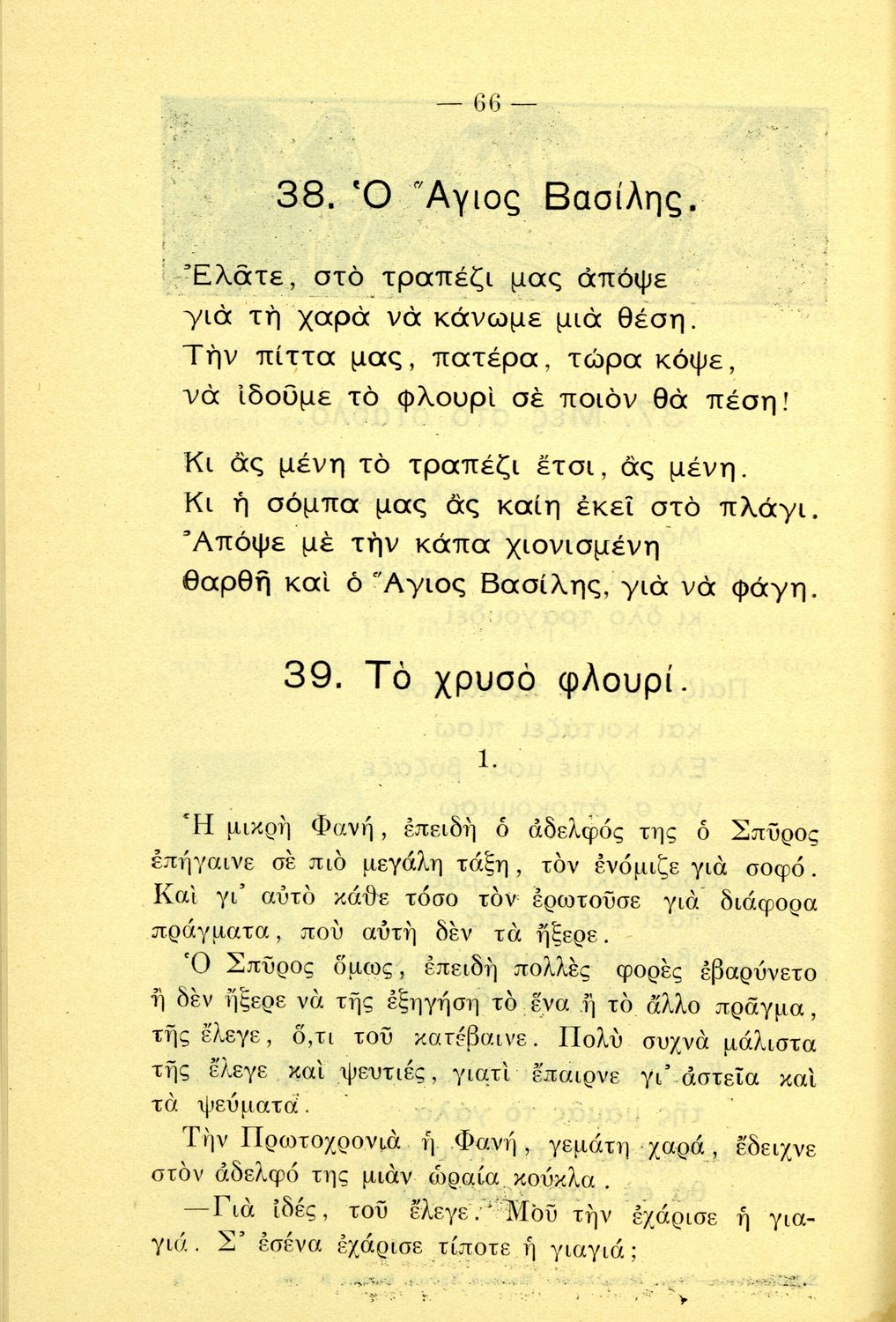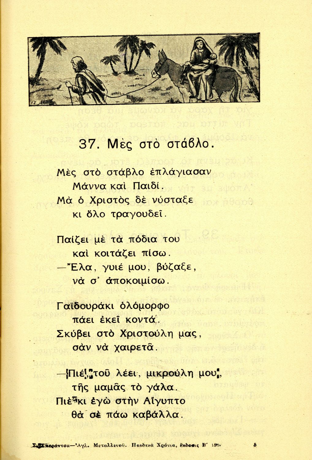 Αναγνωστικό της Γ΄ Δημοτικού που περιλαμβάνει μικρές ιστορίες εθνικιστικού περιεχομένου εμπνευσμένες από την ύπαιθρο, την οικογενειακή και κοινωνική ζωή αλλά και το εθνικό παρελθόν.