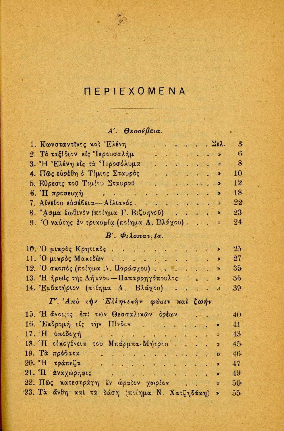 Αναγνωστικό ΣΤ΄ Δημοτικού που περιλαμβάνει ποιήματα και πεζά με θέματα από την οικογενειακή, κοινωνική και θρησκευτική ζωή των Ελλήνων και την ελληνική φύση και ιστορία.