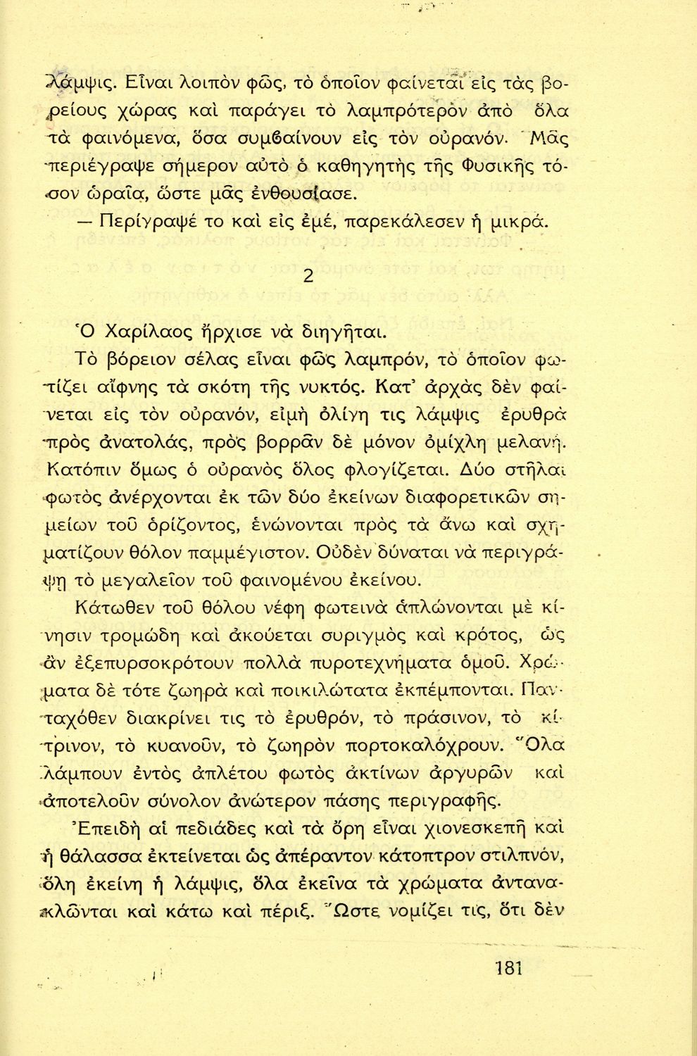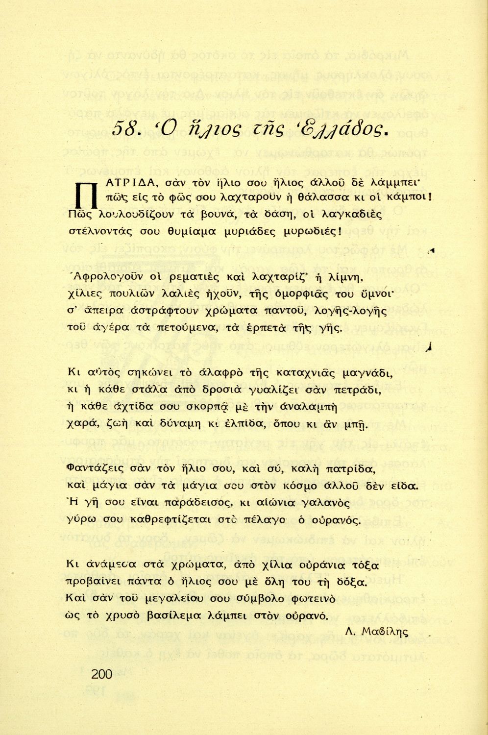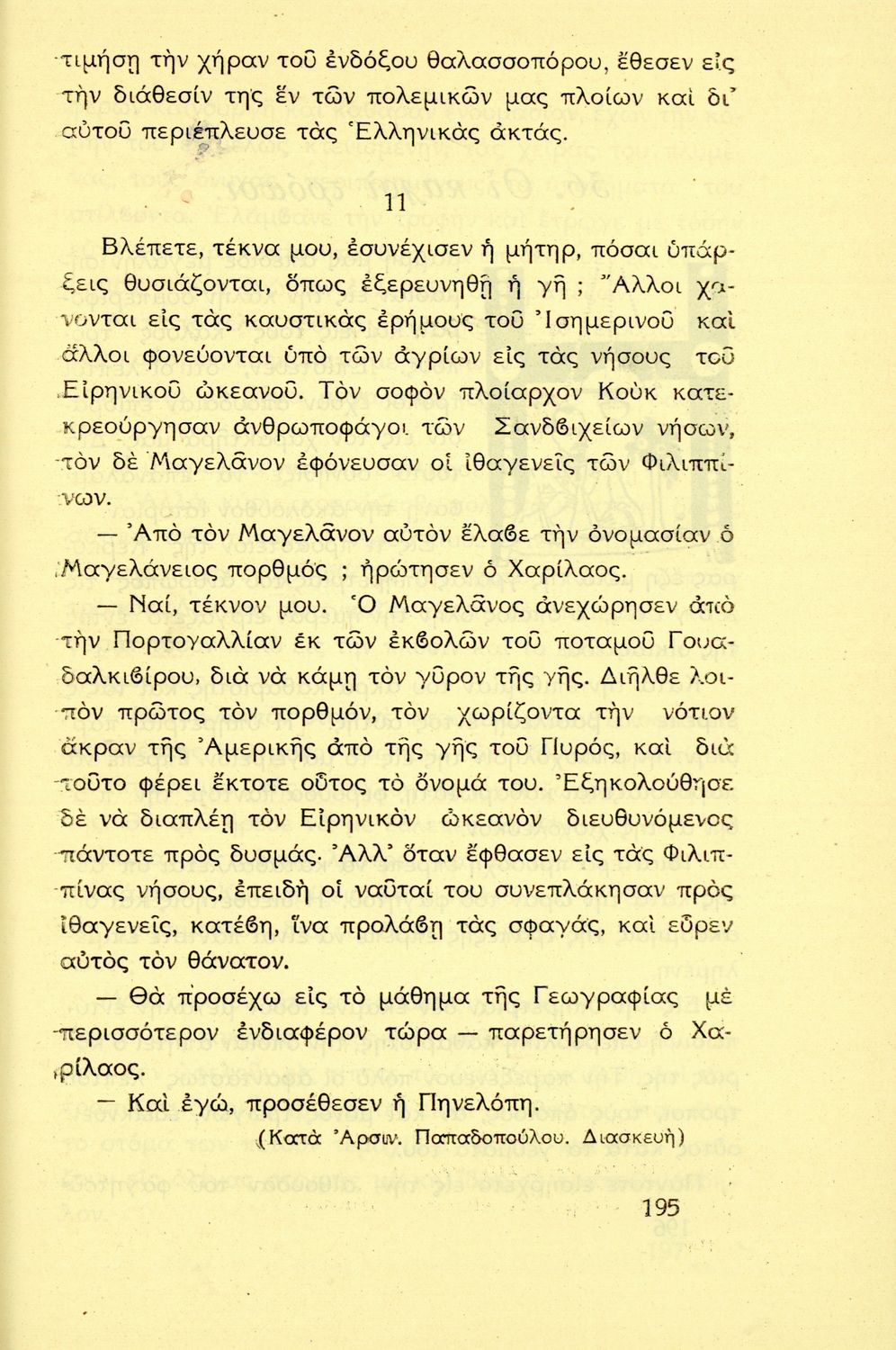 Αναγνωστικό Ε΄ Δημοτικού που περιλαμβάνει πεζογραφήματα εμπνευσμένα από την ελληνική φύση, την αγροτική ζωή και από το τρίπτυχο "Πατρίς- θρησκεία- οικογένεια".