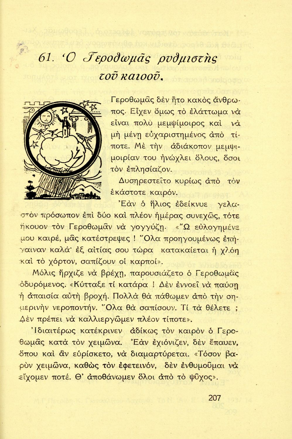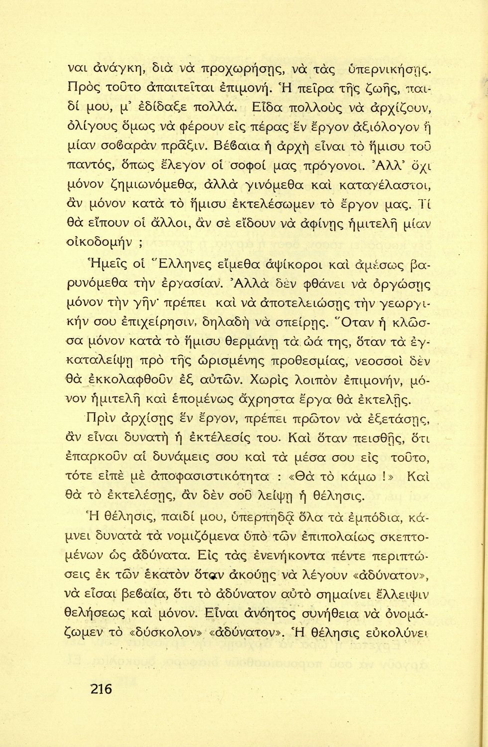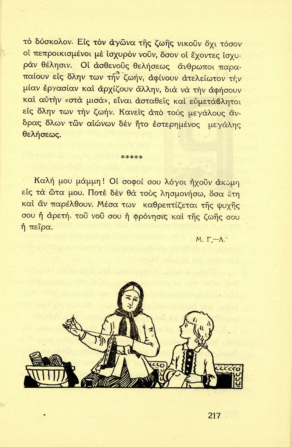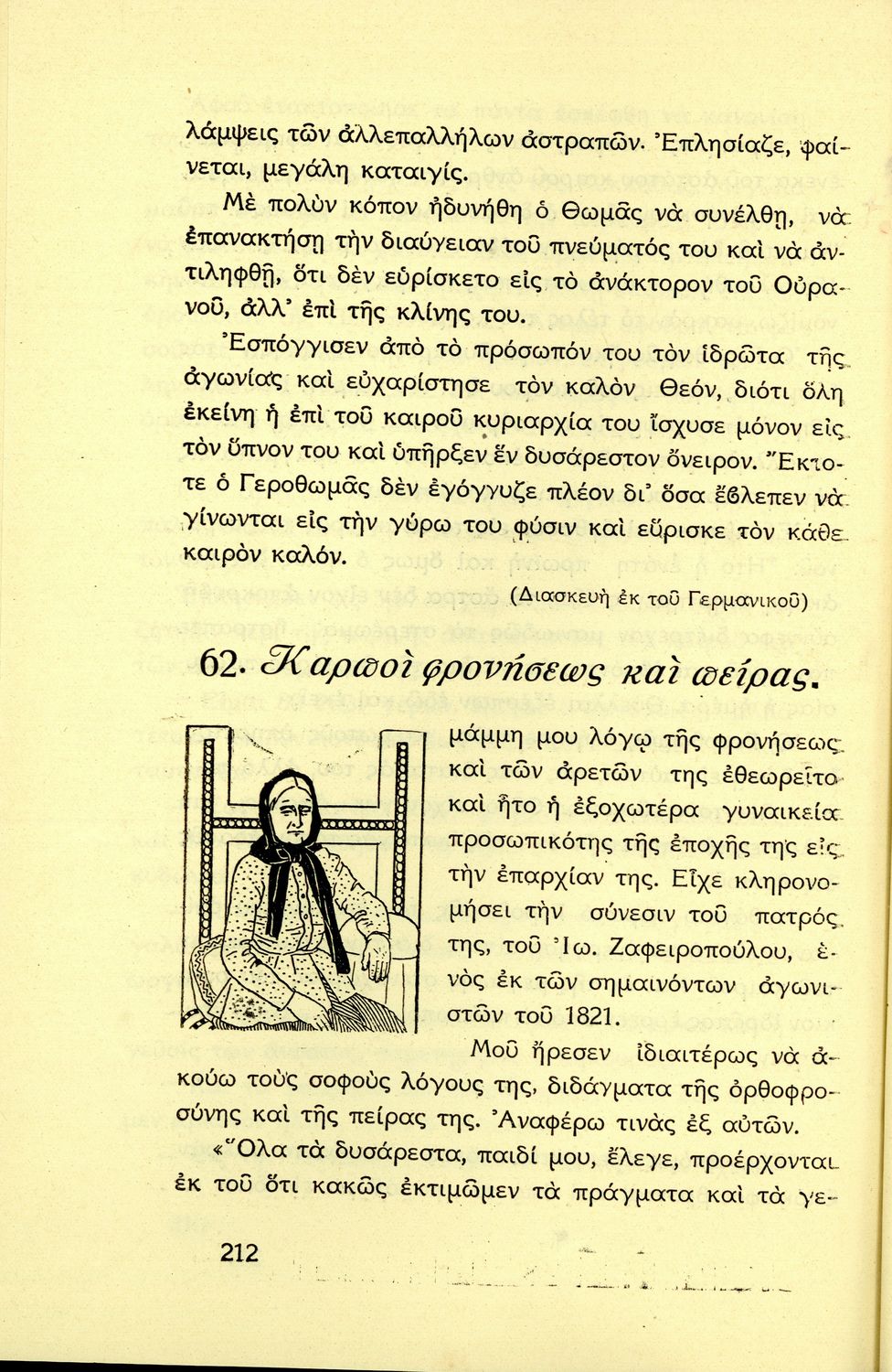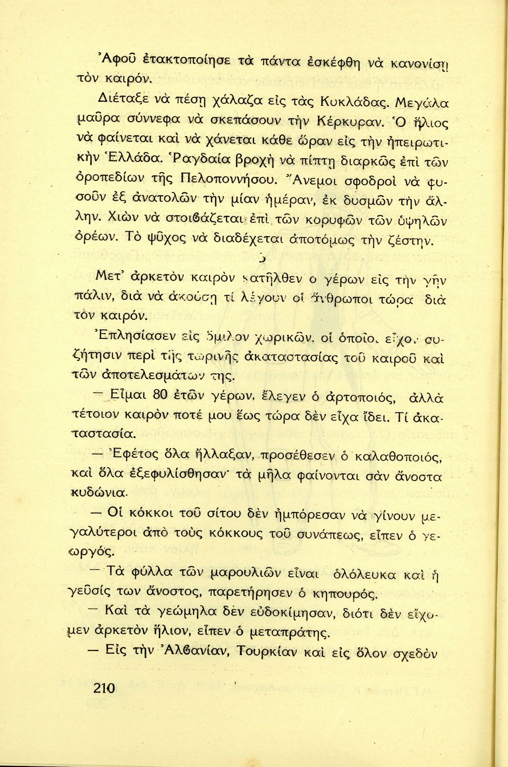 Αναγνωστικό Ε΄ Δημοτικού που περιλαμβάνει πεζογραφήματα εμπνευσμένα από την ελληνική φύση, την αγροτική ζωή και από το τρίπτυχο "Πατρίς- θρησκεία- οικογένεια".