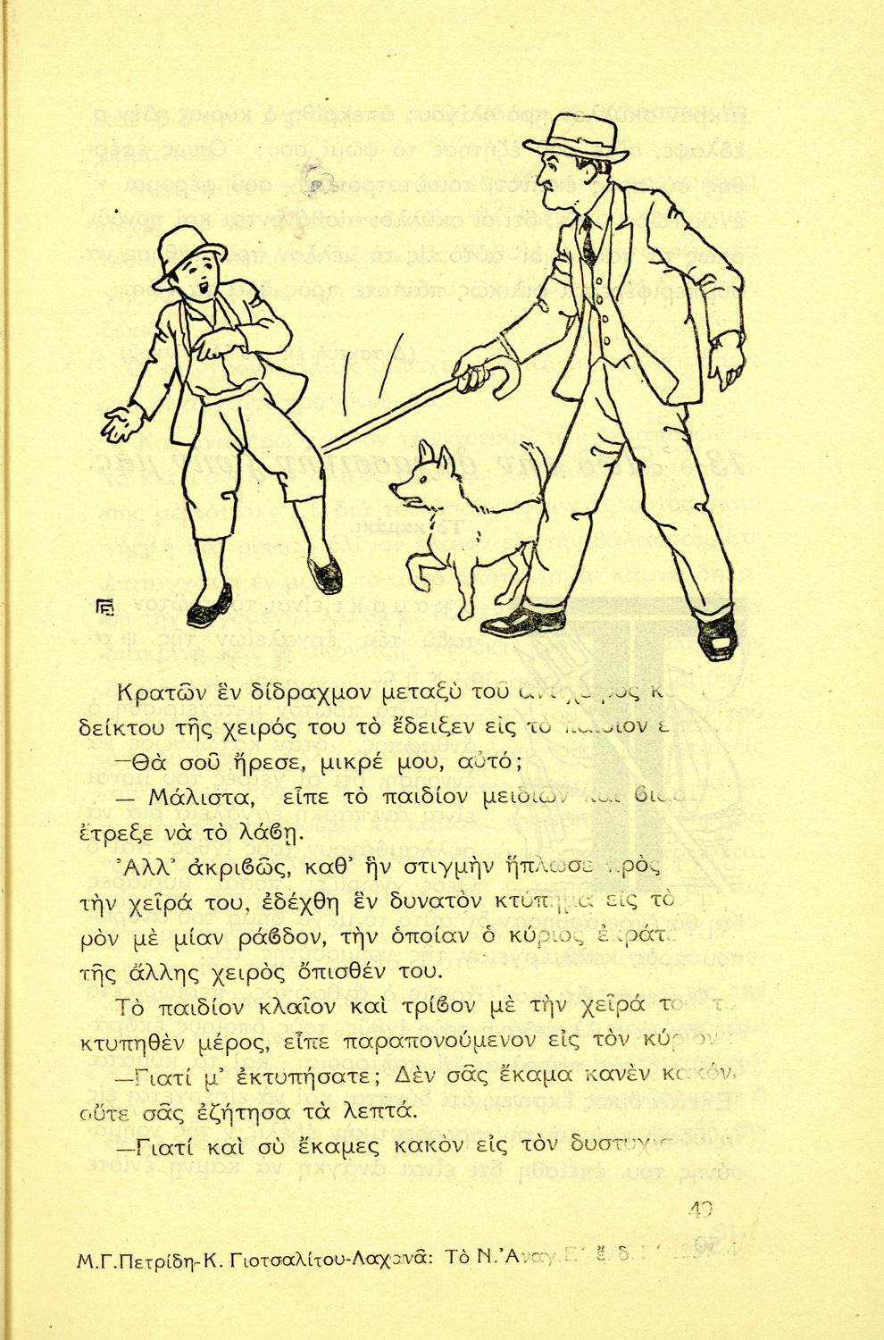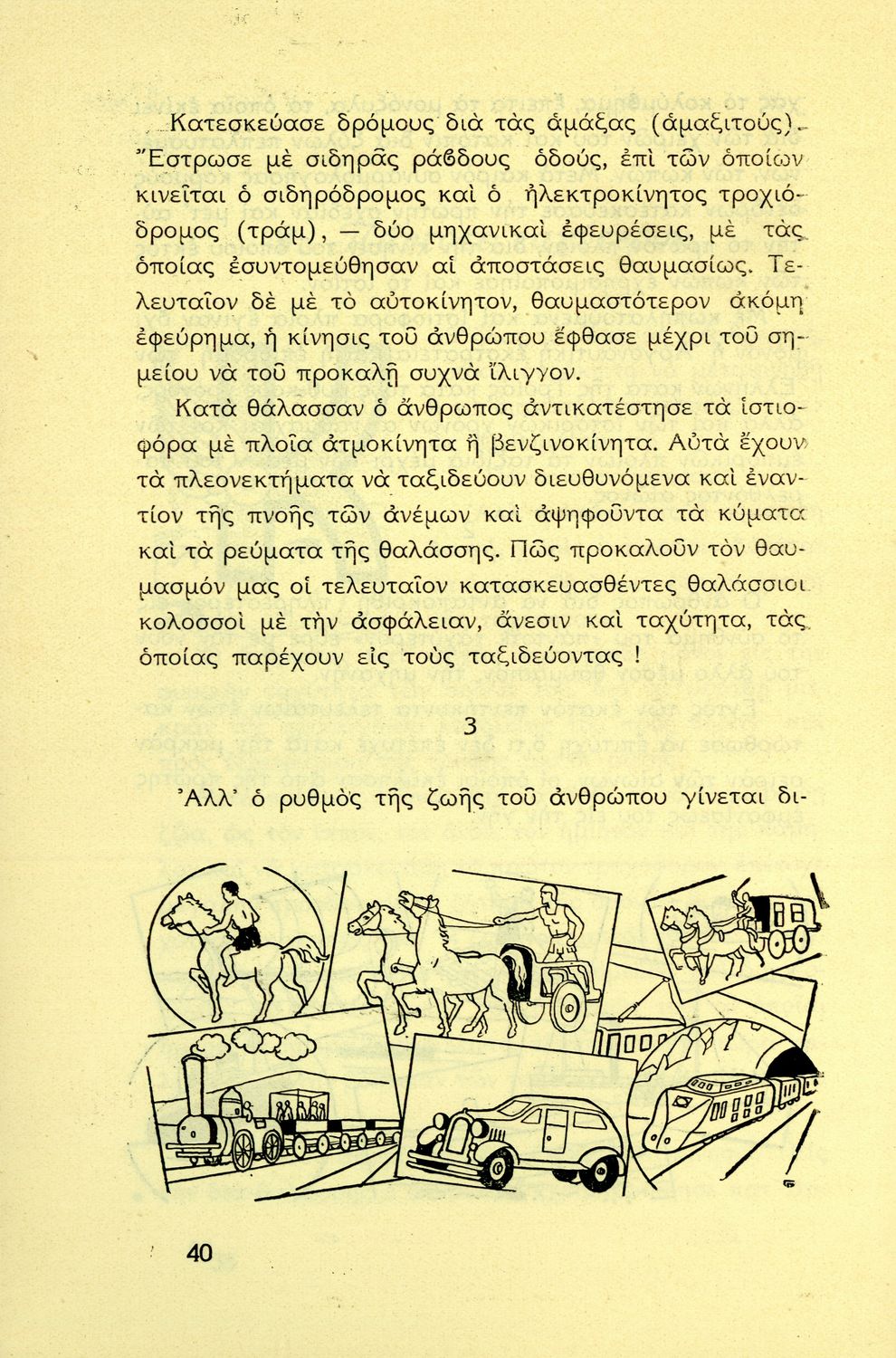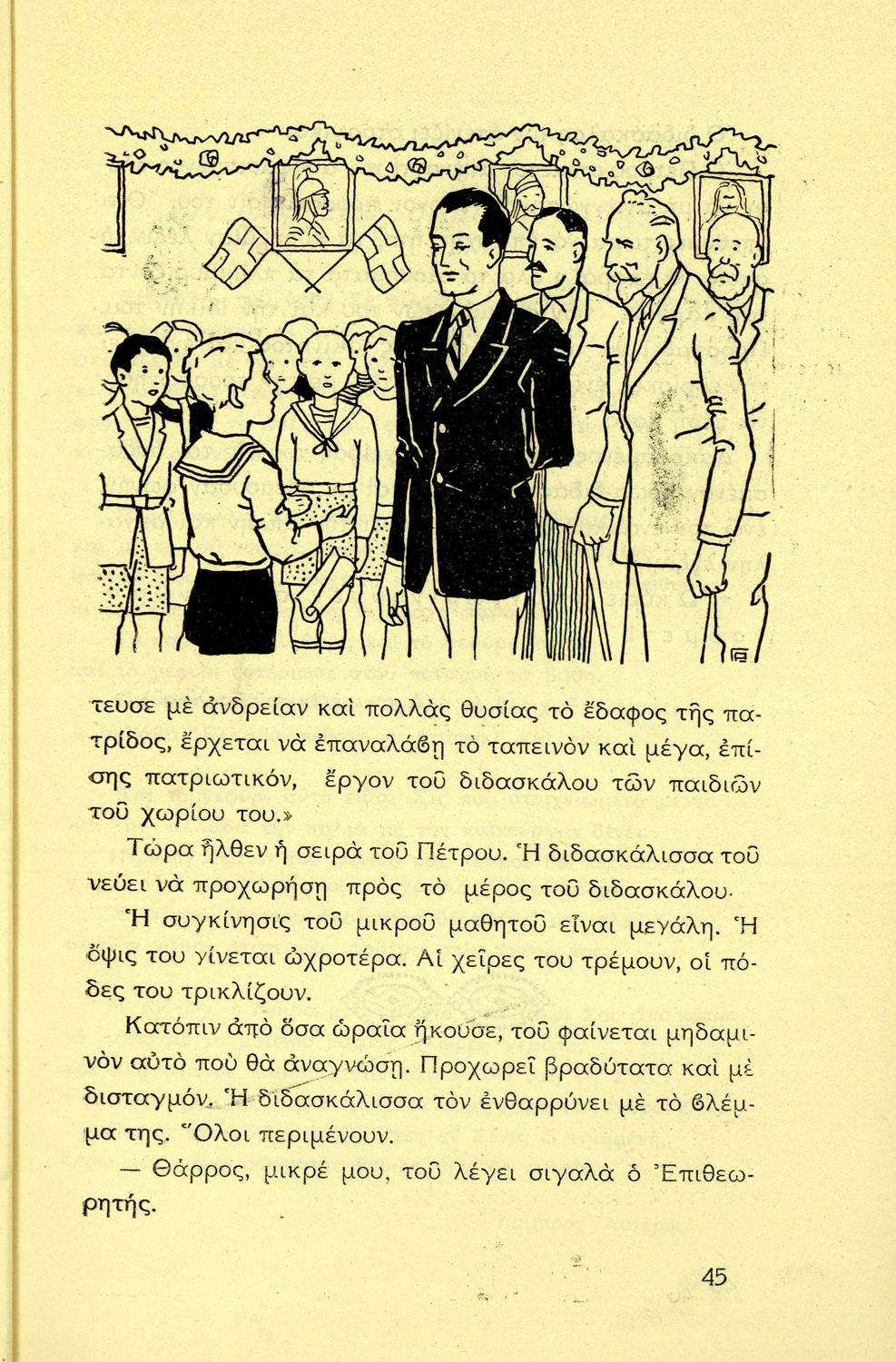 Βαθμίδα εκπαίδευσης: Πρωτοβάθμια Τάξη: Ε' Δημοτικού Μάθημα: Νέα Ελληνικά Γλώσσα: Καθαρεύουσα Παρουσίαση περιεχομένου: Αναγνωστικό Ε΄ Δημοτικού που περιλαμβάνει πεζά και ποιήματα από την καθημερινότητα των ανθρώπων στην ελληνική ύπαιθρο, από την ζωή στο χωριό, την ελληνική ιστορία, τις διαπροσωπικές σχέσεις, την αγάπη για τα ζώα και το φυσικό περιβάλλον, τα επαγγέλματα και τις ασχολίες των ανθρώπων, τη θρησκευτική παράδοση, τις ηθικές αξίες και αρετές, τα στοιχεία της φύσης και τις 4 εποχές του χρόνου, την βυζαντινή τέχνη και τον πολιτισμό, την υγιεινή των ανθρώπων και την ελληνική μυθολογία. |