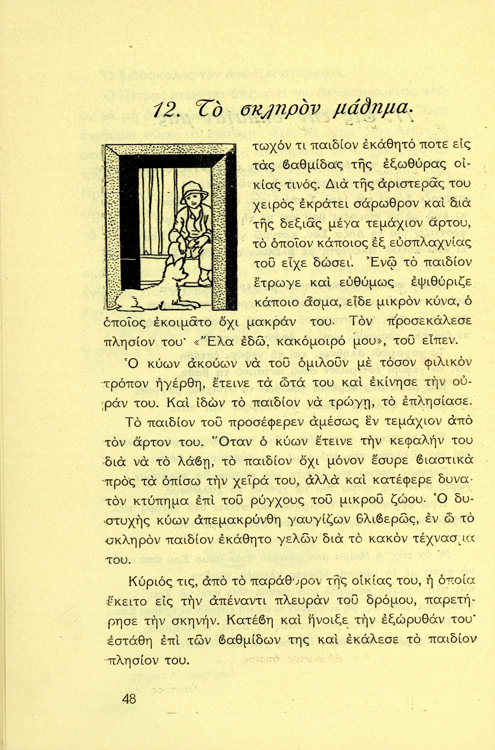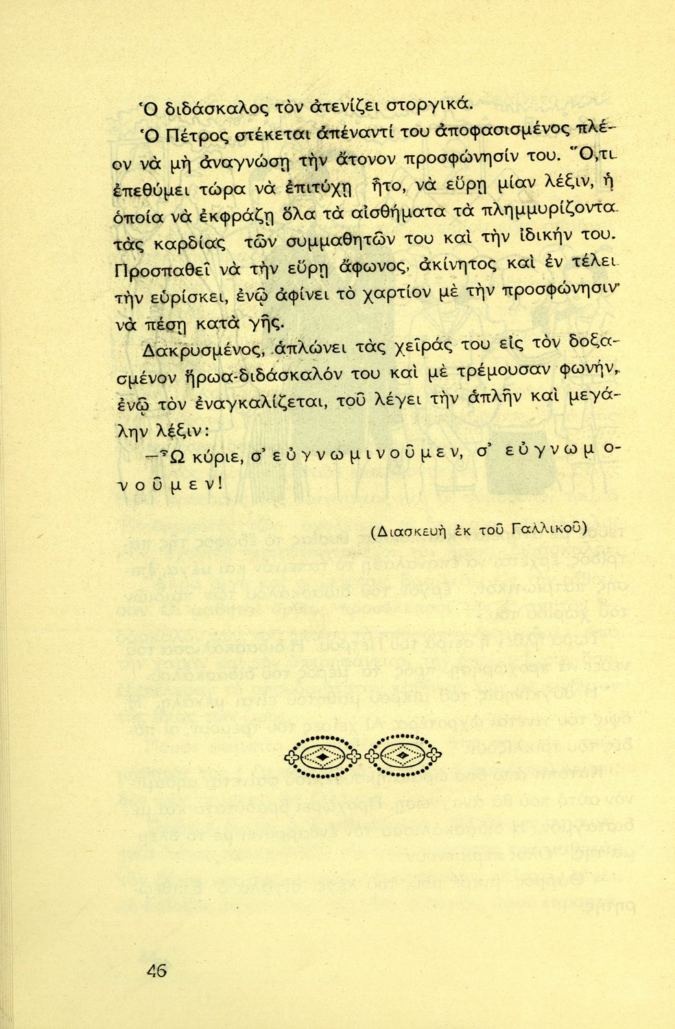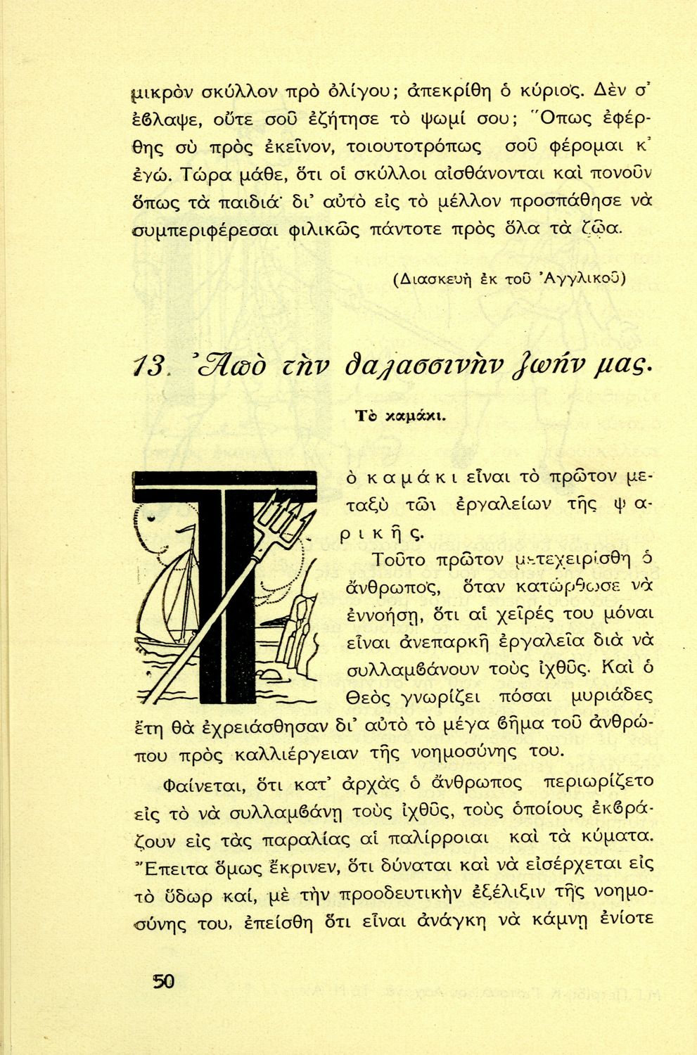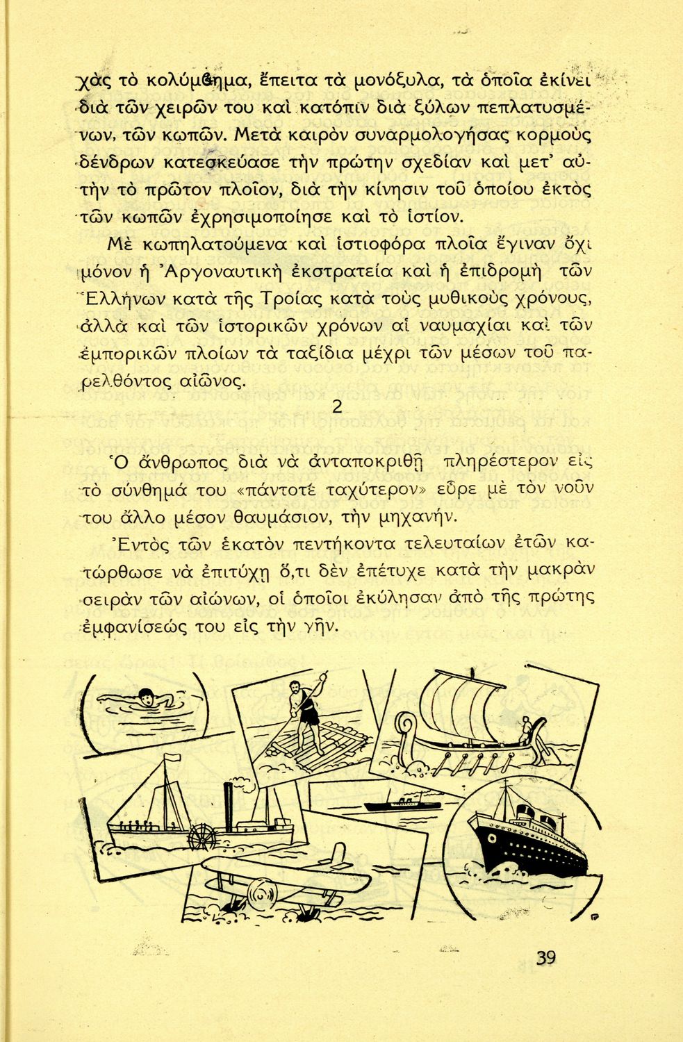 Βαθμίδα εκπαίδευσης: Πρωτοβάθμια Τάξη: Ε' Δημοτικού Μάθημα: Νέα Ελληνικά Γλώσσα: Καθαρεύουσα Παρουσίαση περιεχομένου: Αναγνωστικό Ε΄ Δημοτικού που περιλαμβάνει πεζά και ποιήματα από την καθημερινότητα των ανθρώπων στην ελληνική ύπαιθρο, από την ζωή στο χωριό, την ελληνική ιστορία, τις διαπροσωπικές σχέσεις, την αγάπη για τα ζώα και το φυσικό περιβάλλον, τα επαγγέλματα και τις ασχολίες των ανθρώπων, τη θρησκευτική παράδοση, τις ηθικές αξίες και αρετές, τα στοιχεία της φύσης και τις 4 εποχές του χρόνου, την βυζαντινή τέχνη και τον πολιτισμό, την υγιεινή των ανθρώπων και την ελληνική μυθολογία. |
