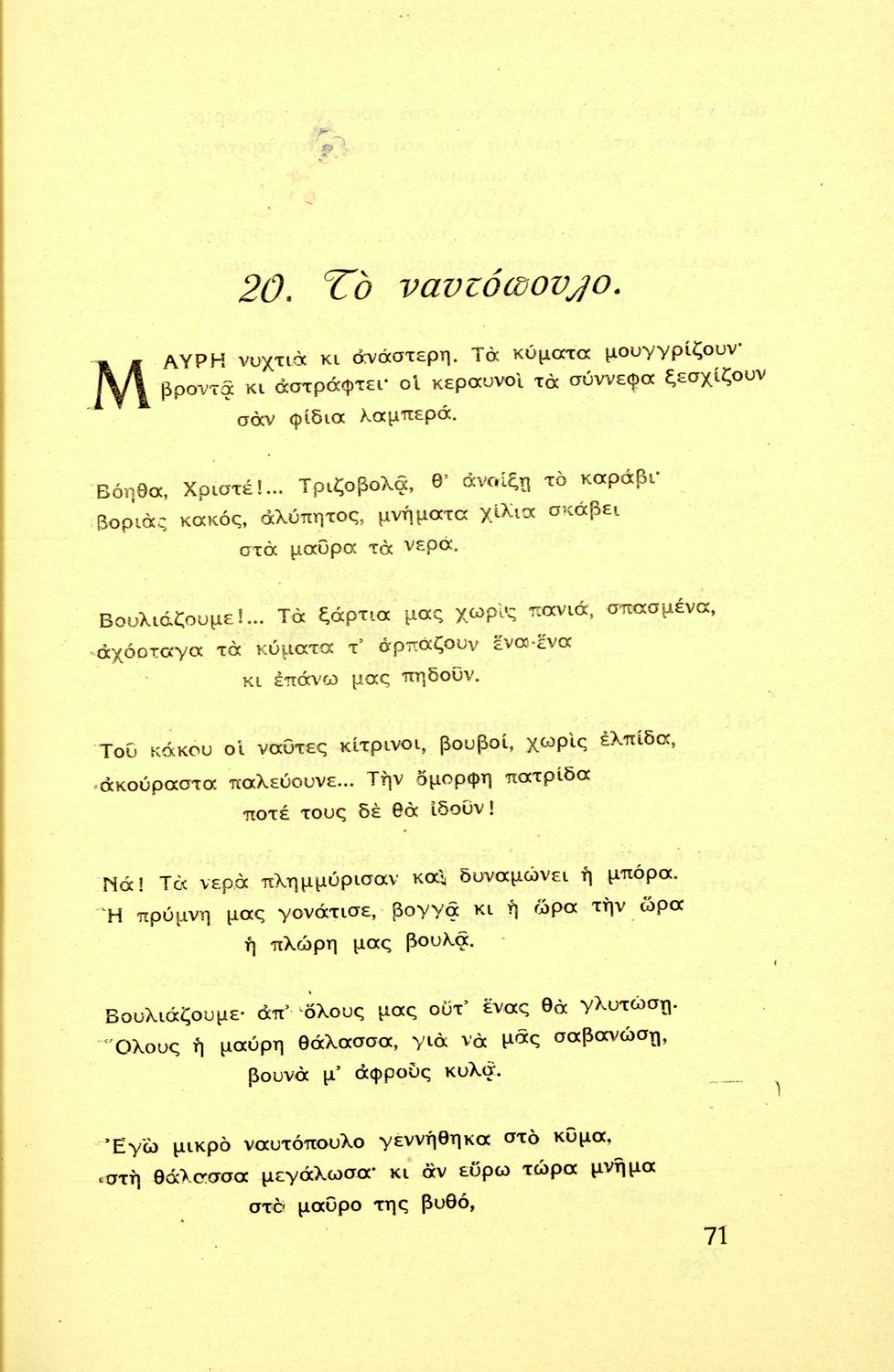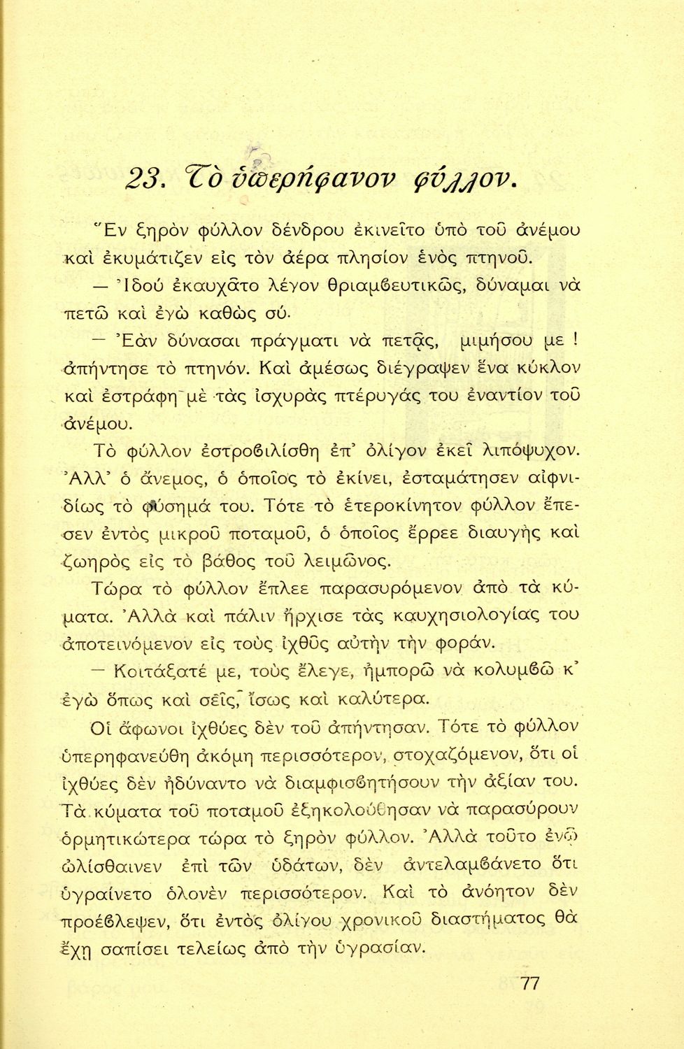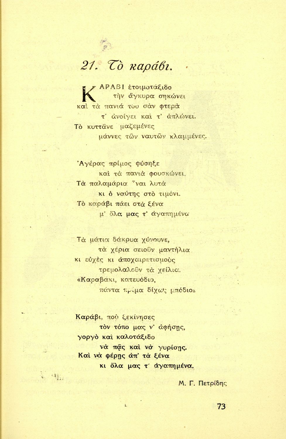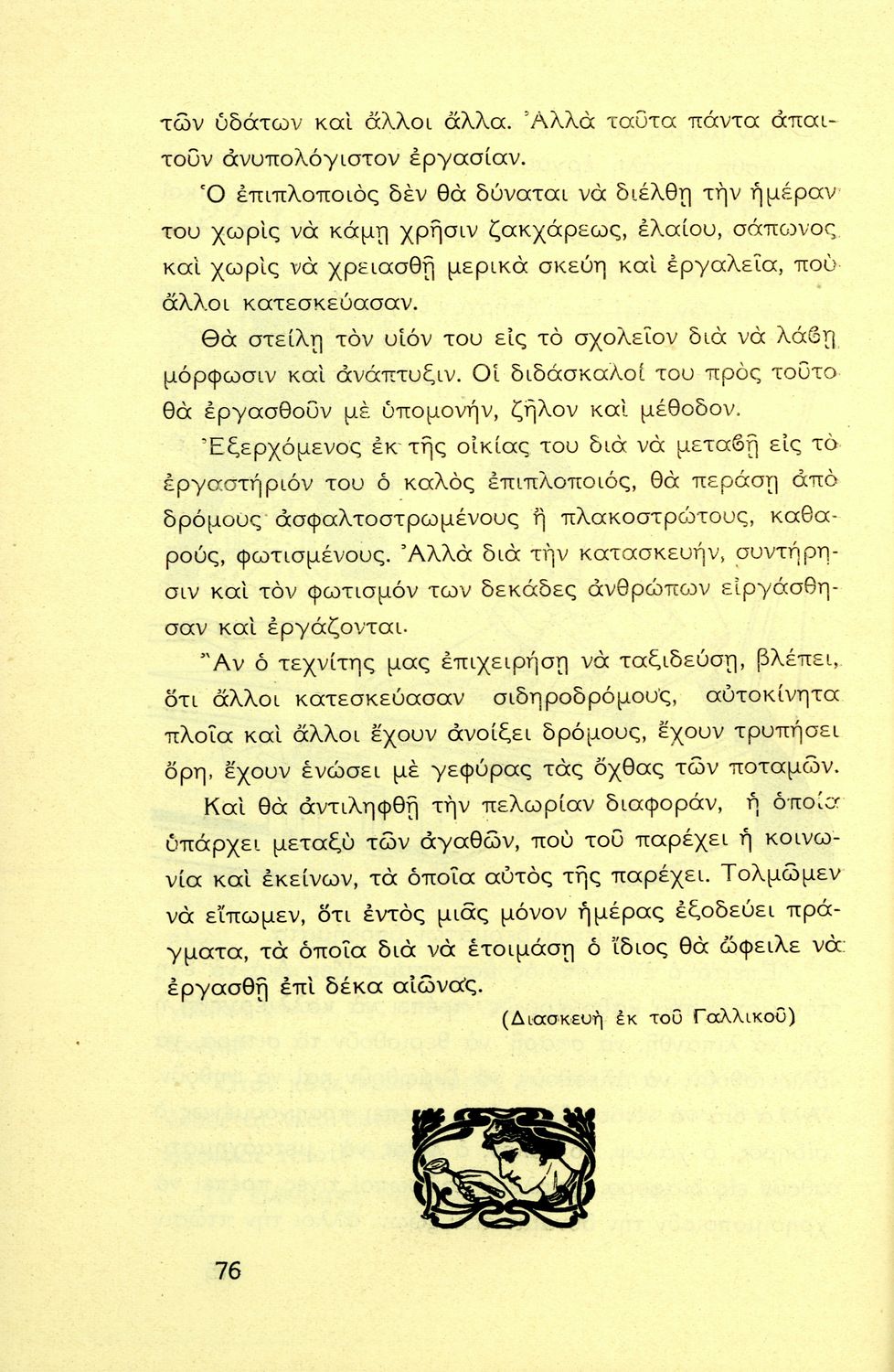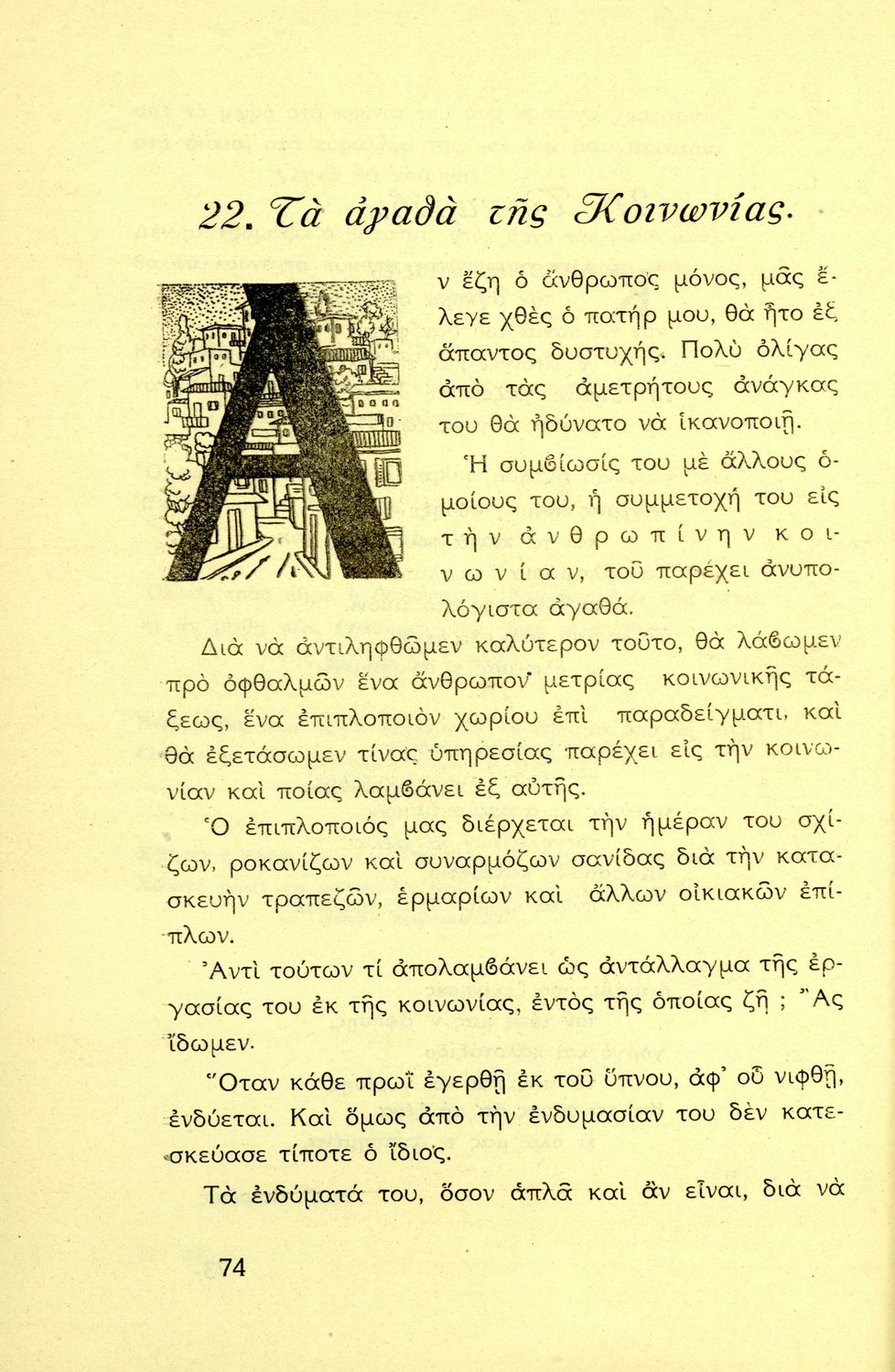 Αναγνωστικό Ε΄ Δημοτικού που περιλαμβάνει πεζογραφήματα εμπνευσμένα από την ελληνική φύση, την αγροτική ζωή και από το τρίπτυχο "Πατρίς- θρησκεία- οικογένεια".