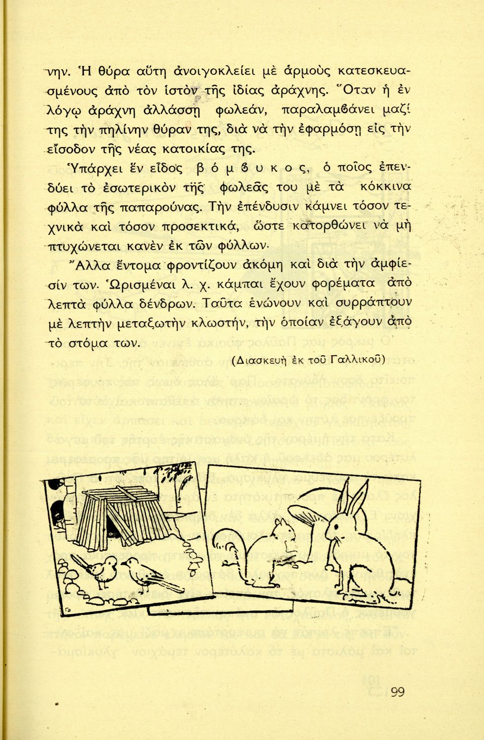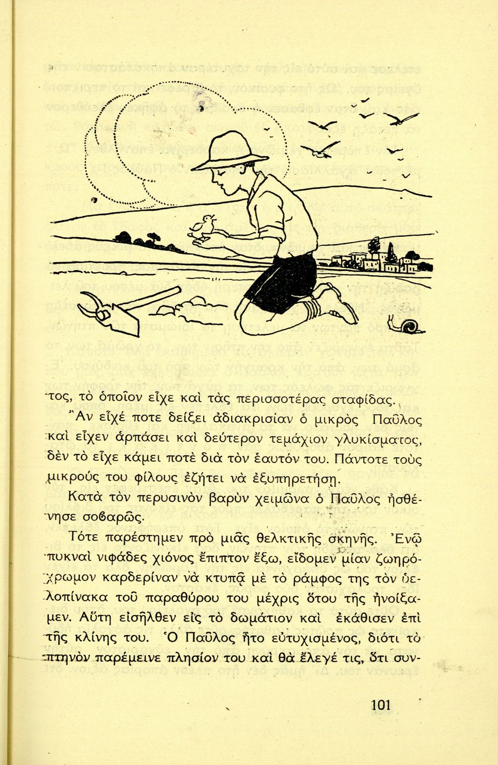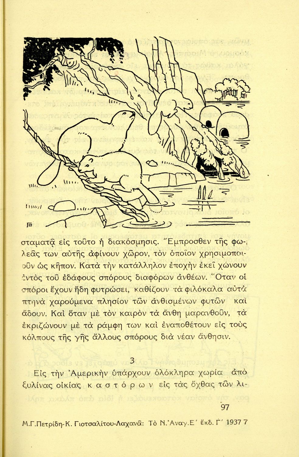 Αναγνωστικό Ε΄ Δημοτικού που περιλαμβάνει πεζογραφήματα εμπνευσμένα από την ελληνική φύση, την αγροτική ζωή και από το τρίπτυχο "Πατρίς- θρησκεία- οικογένεια".