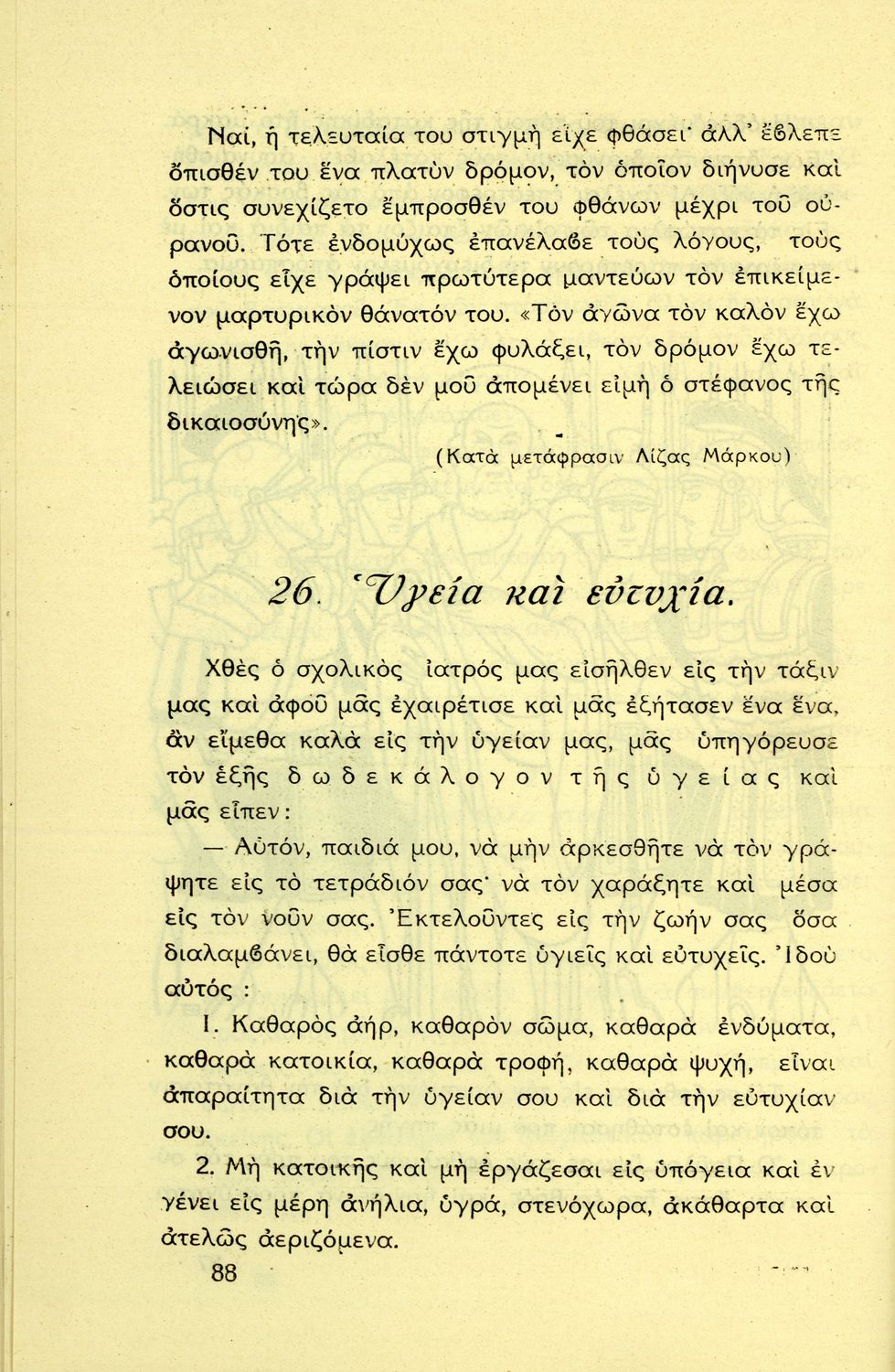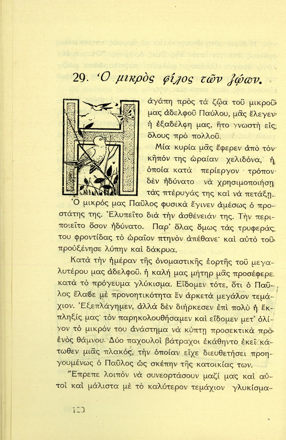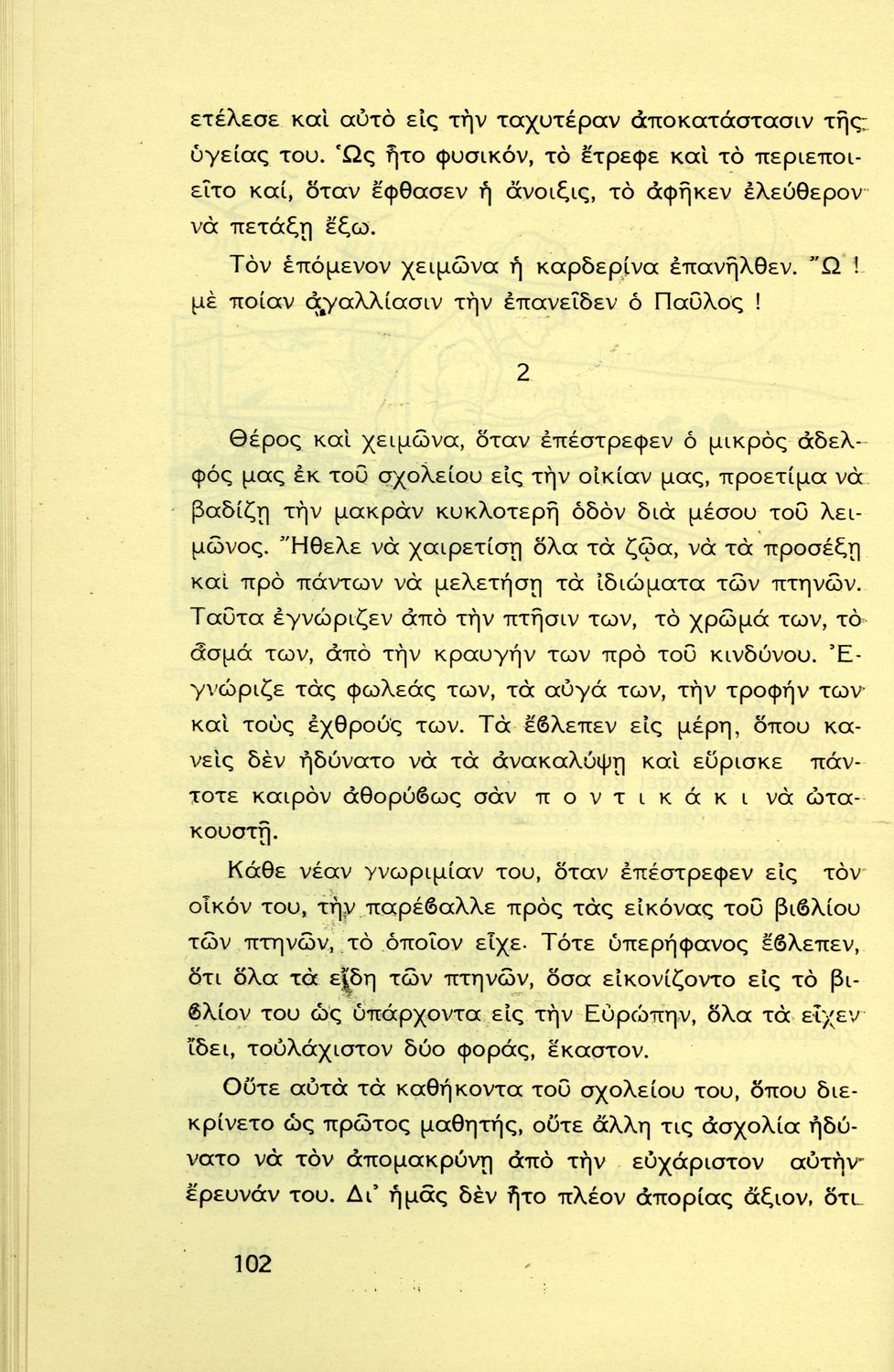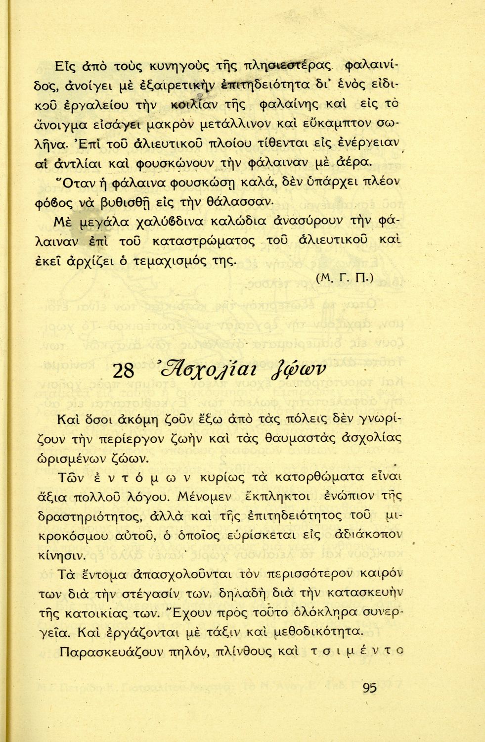 Αναγνωστικό Ε΄ Δημοτικού που περιλαμβάνει πεζογραφήματα εμπνευσμένα από την ελληνική φύση, την αγροτική ζωή και από το τρίπτυχο "Πατρίς- θρησκεία- οικογένεια".