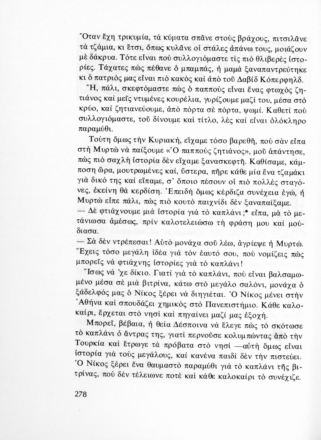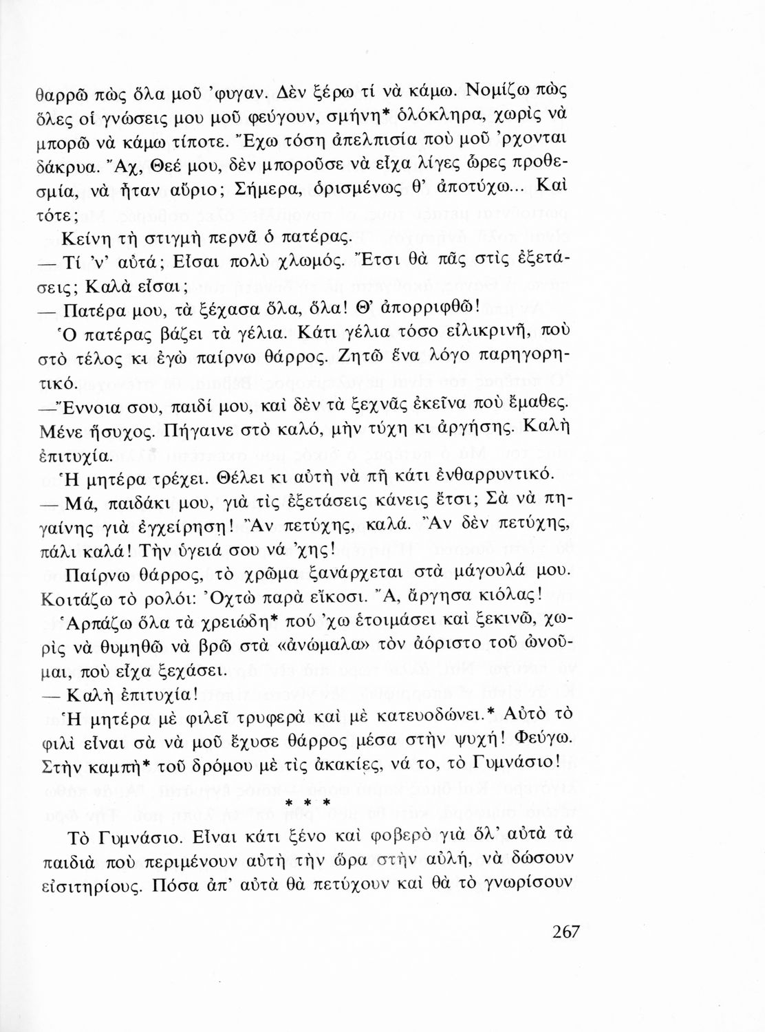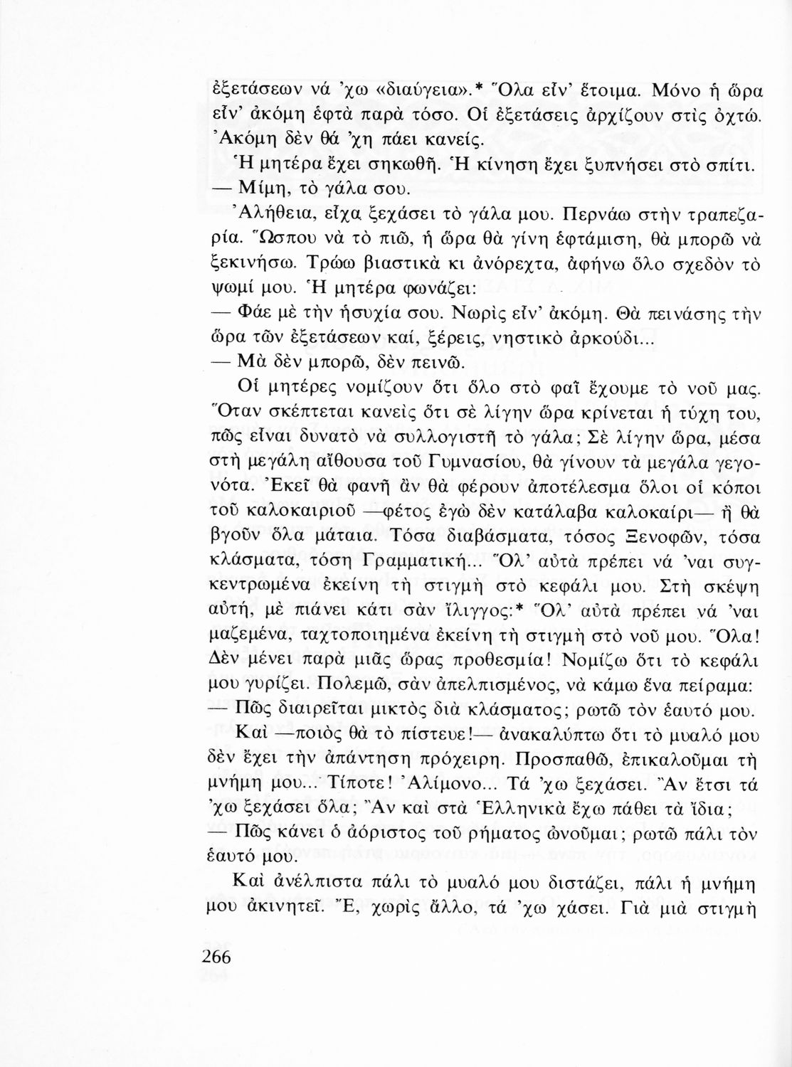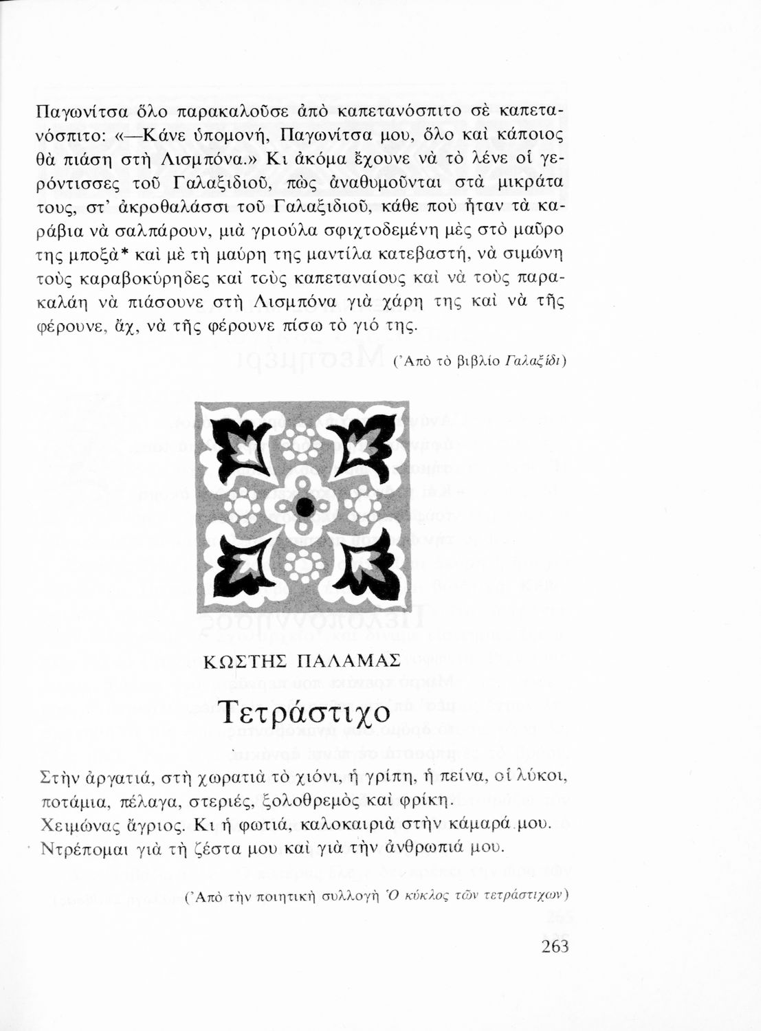 Αναγνωστικό για τις Ε' και ΣΤ΄ Δημοτικού που περιλαμβάνει πεζά και ποιήματα της Νέας Ελληνικής Λογοτεχνίας εμπνευσμένα από την καθημερινότητα των παιδιών και των οικογενειών τους, την ελληνική ιστορία, τις οικογενειακές στιγμές και εορτές, το παιχνίδι και την εθνική παράδοση, και τα δημοτικά και ακριτικά τραγούδια. Περιέχει και 5 κείμενα γραμμένα στην καθαρεύουσα με θέματα από τον κοινωνικό και εθνικό βίο, και ερμηνευτικό λεξιλόγιο.. Το βιβλίο είναι αφιερωμένο στη μνήμη της Πηνελόπης Δέλτα.