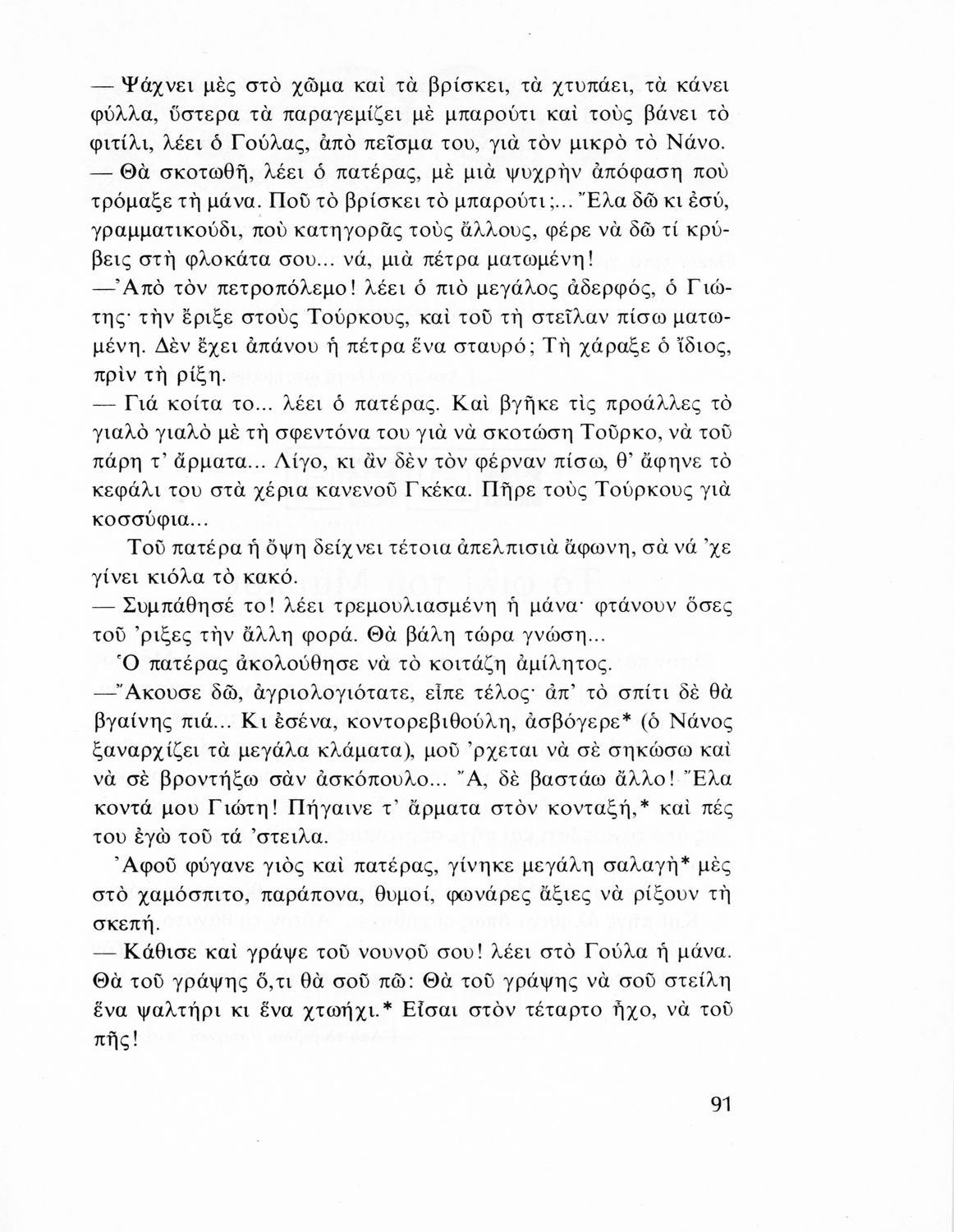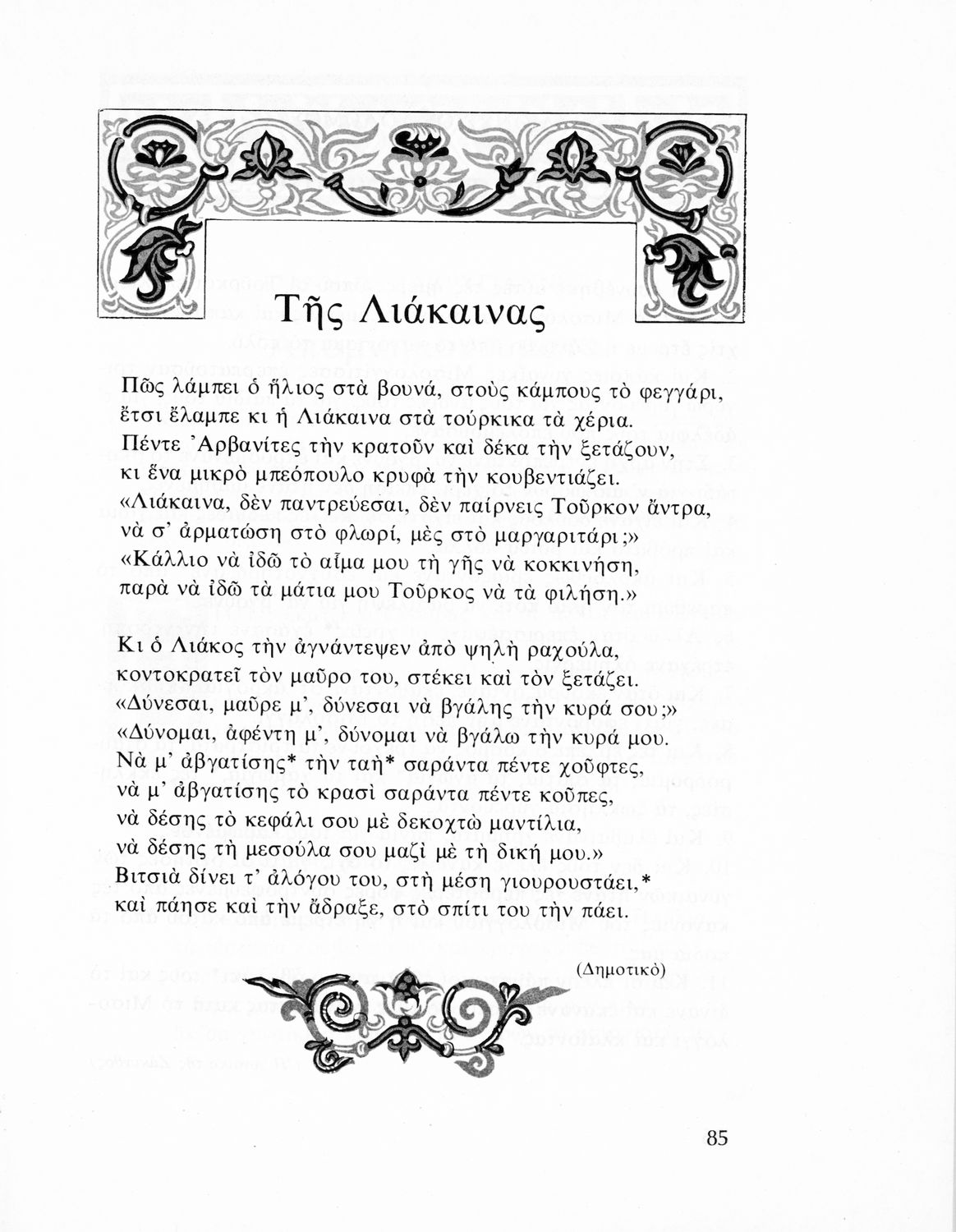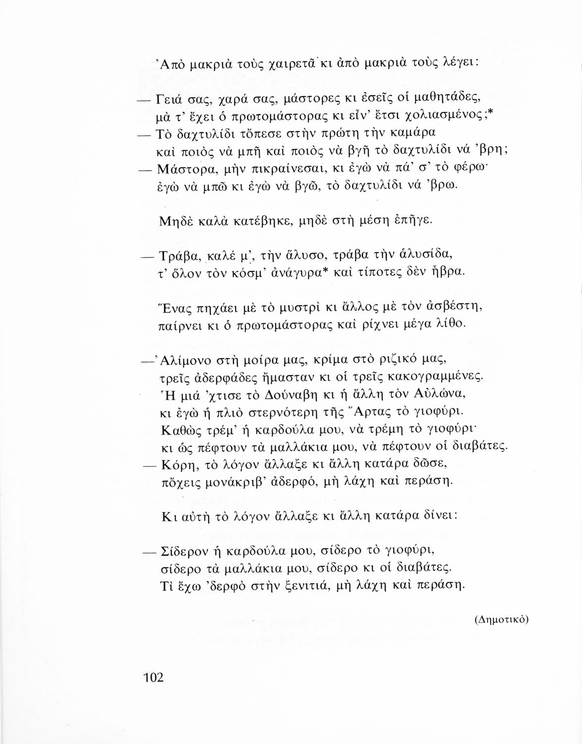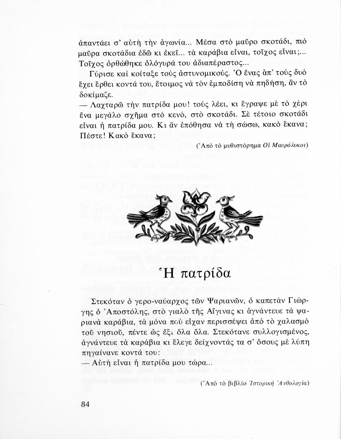 Αναγνωστικό για τις Ε' και ΣΤ΄ Δημοτικού που περιλαμβάνει πεζά και ποιήματα της Νέας Ελληνικής Λογοτεχνίας εμπνευσμένα από την καθημερινότητα των παιδιών και των οικογενειών τους, την ελληνική ιστορία, τις οικογενειακές στιγμές και εορτές, το παιχνίδι και την εθνική παράδοση, και τα δημοτικά και ακριτικά τραγούδια. Περιέχει και 5 κείμενα γραμμένα στην καθαρεύουσα με θέματα από τον κοινωνικό και εθνικό βίο, και ερμηνευτικό λεξιλόγιο.. Το βιβλίο είναι αφιερωμένο στη μνήμη της Πηνελόπης Δέλτα.