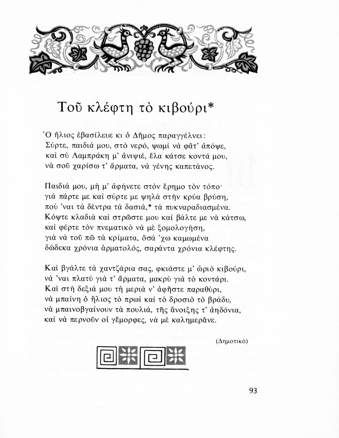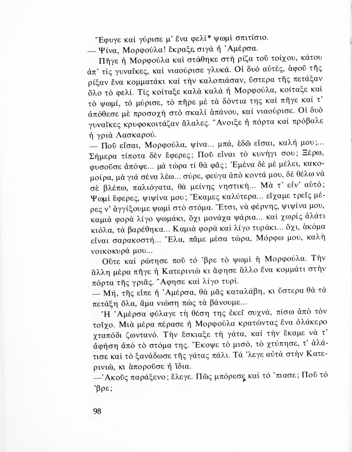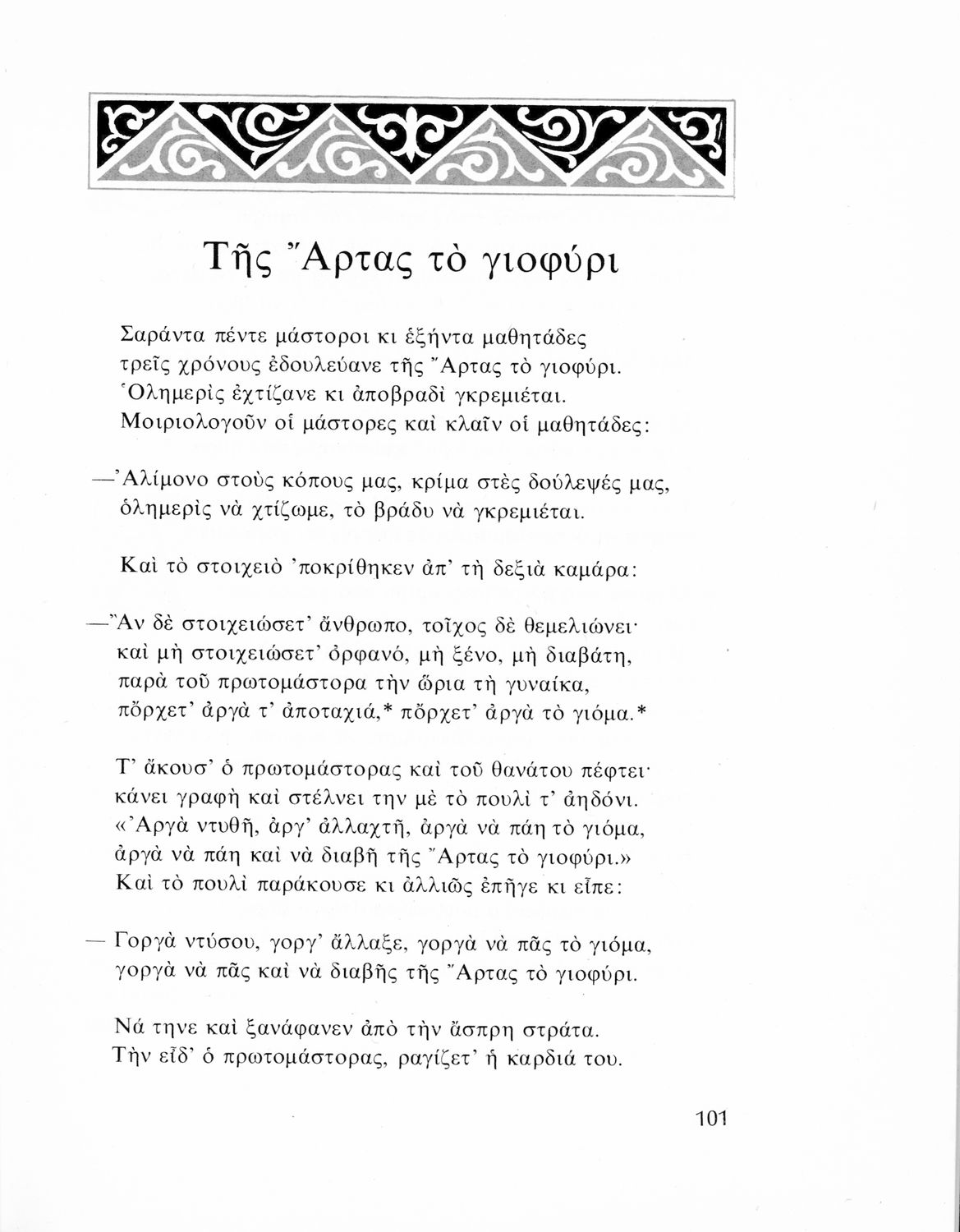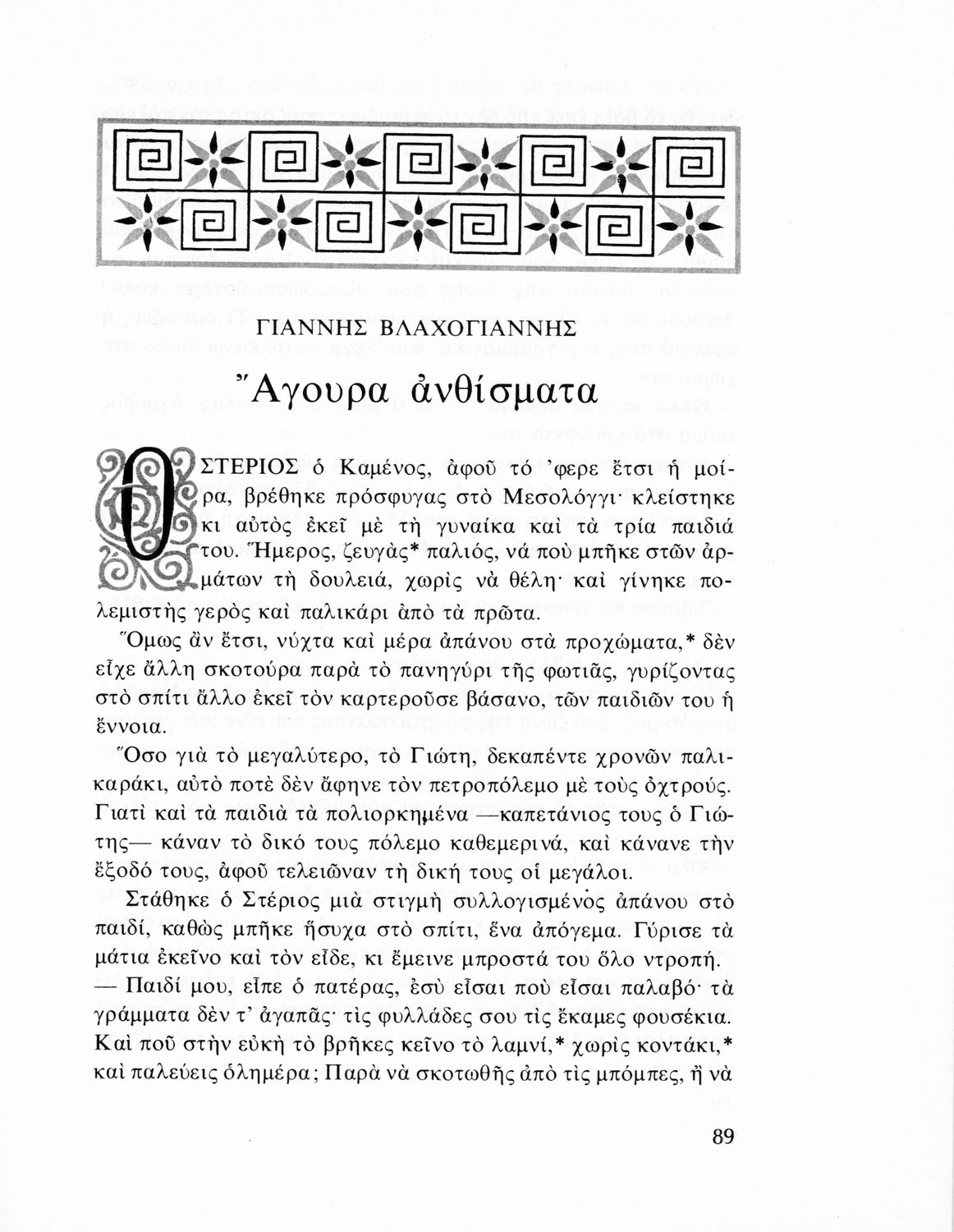 Αναγνωστικό για τις Ε' και ΣΤ΄ Δημοτικού που περιλαμβάνει πεζά και ποιήματα της Νέας Ελληνικής Λογοτεχνίας εμπνευσμένα από την καθημερινότητα των παιδιών και των οικογενειών τους, την ελληνική ιστορία, τις οικογενειακές στιγμές και εορτές, το παιχνίδι και την εθνική παράδοση, και τα δημοτικά και ακριτικά τραγούδια. Περιέχει και 5 κείμενα γραμμένα στην καθαρεύουσα με θέματα από τον κοινωνικό και εθνικό βίο, και ερμηνευτικό λεξιλόγιο.. Το βιβλίο είναι αφιερωμένο στη μνήμη της Πηνελόπης Δέλτα.
