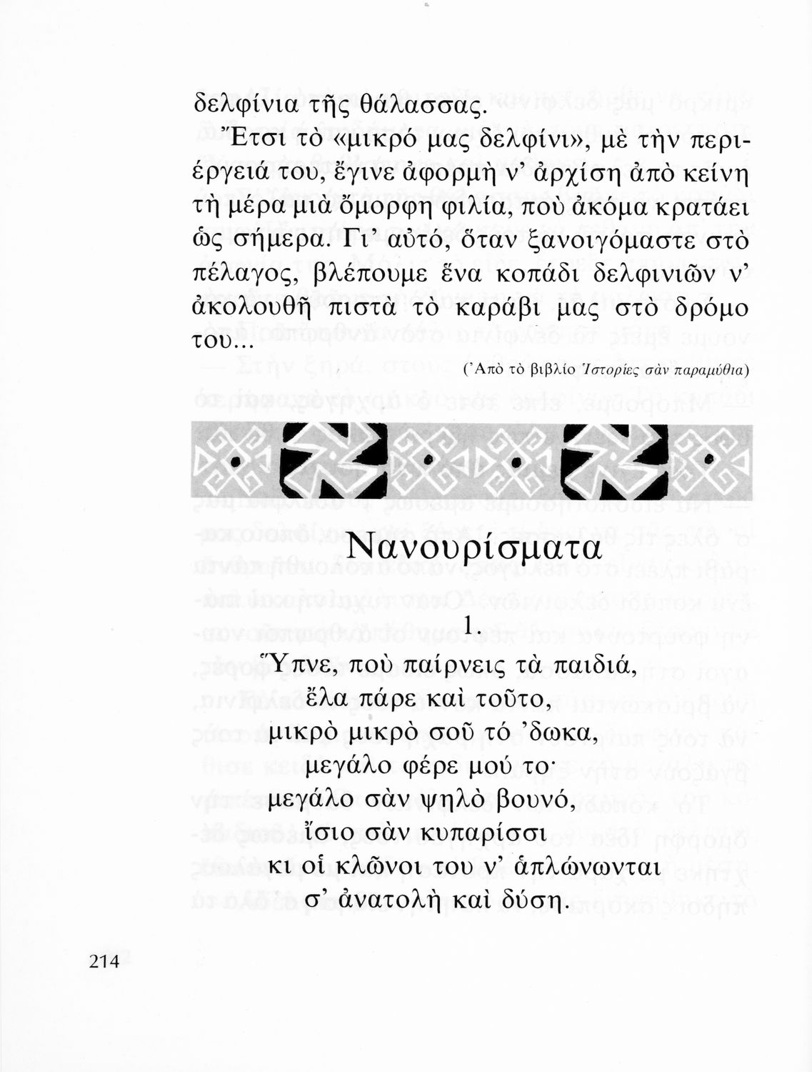 Αναγνωστικό που περιλαμβάνει πεζά και ποιήματα της νέας ελληνικής λογοτεχνίας για τους μαθητές του Δημοτικού. Το βιβλίο είναι αφιερωμένο στη μνήμη του Ζαχαρία Παπαντωνίου και αναδημοσιεύει αρκετά κείμενα από τα αναγνωστικά των εκπαιδευτικών μεταρρυθμίσεων του Ελευθερίου Βενιζέλου.