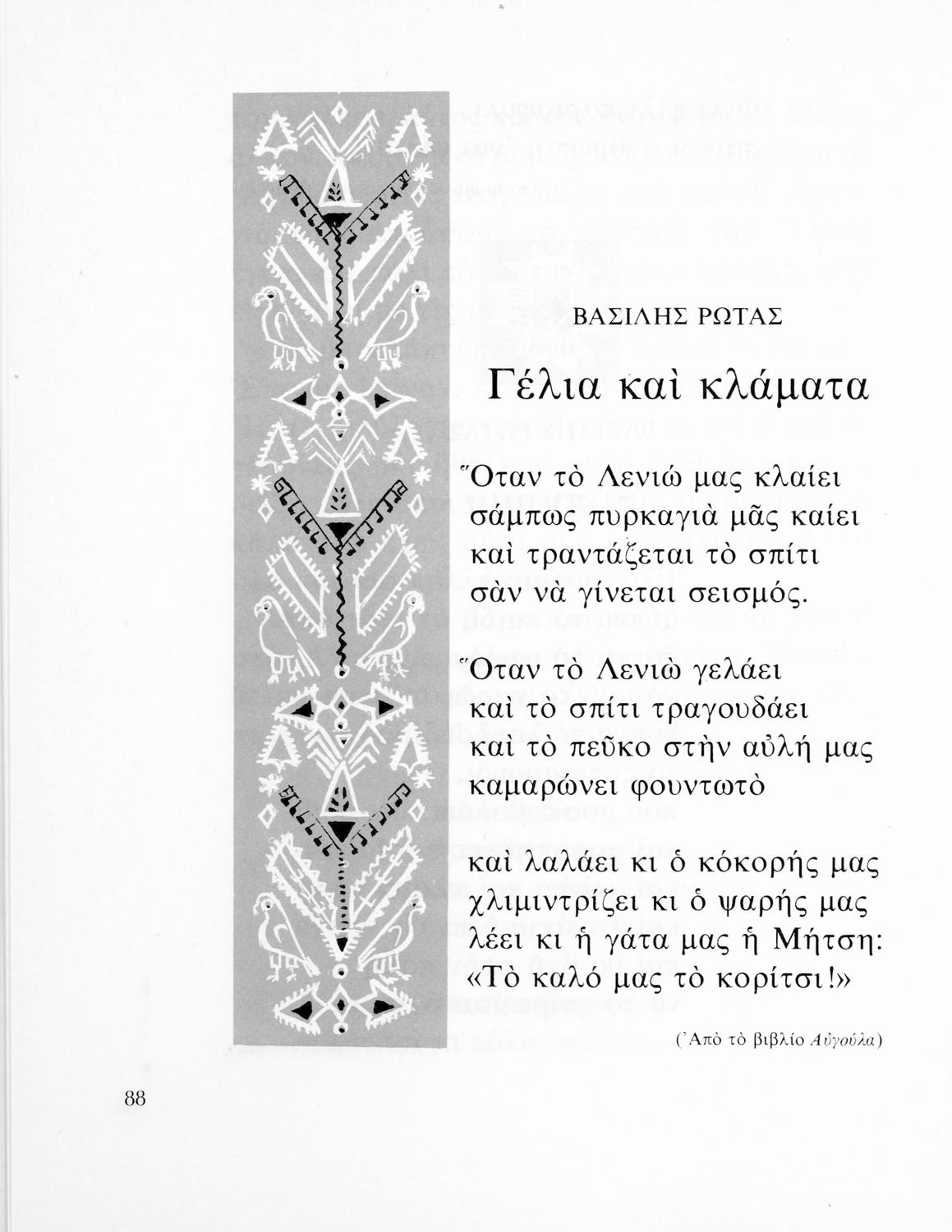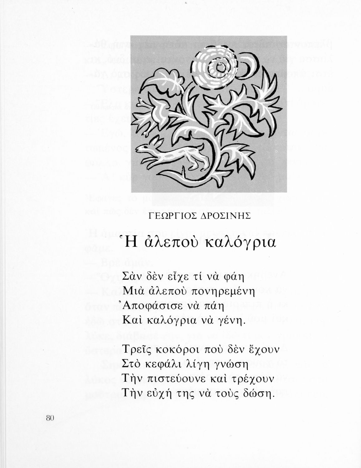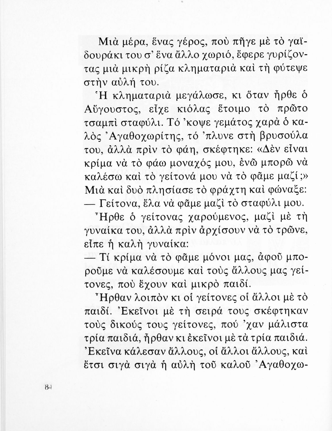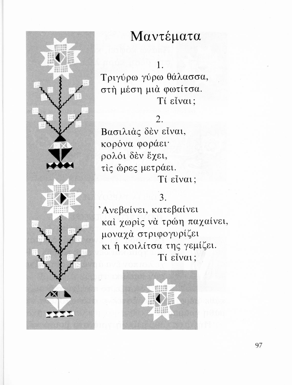 Αναγνωστικό που περιλαμβάνει πεζά και ποιήματα της νέας ελληνικής λογοτεχνίας για τους μαθητές του Δημοτικού. Το βιβλίο είναι αφιερωμένο στη μνήμη του Ζαχαρία Παπαντωνίου και αναδημοσιεύει αρκετά κείμενα από τα αναγνωστικά των εκπαιδευτικών μεταρρυθμίσεων του Ελευθερίου Βενιζέλου.