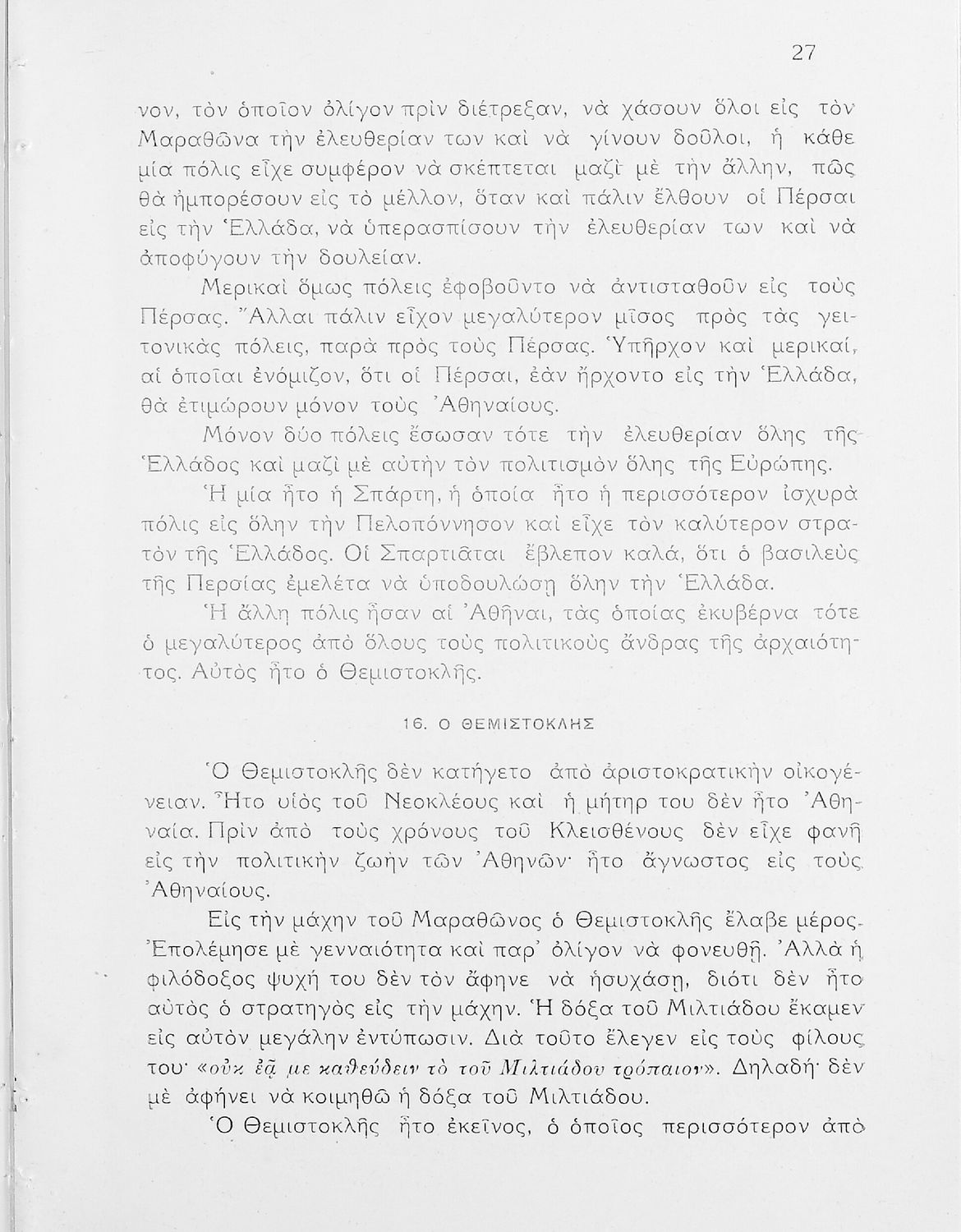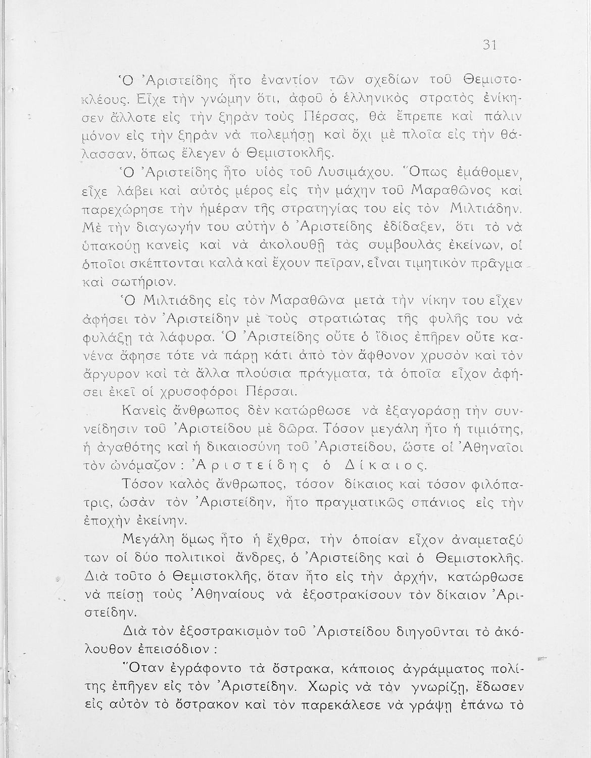 Βαθμίδα εκπαίδευσης: Δευτεροβάθμια Τάξη: Β' Γυμνασίου Μάθημα: Ιστορία Γλώσσα: Καθαρεύουσα Παρουσίαση περιεχομένου: Σχολικό εγχειρίδιο Ιστορίας Β΄ Γυμνασίου που καλύπτει την περίοδο από τους Περσικούς Πολέμους ως τη μάχη της Χαιρώνειας. |