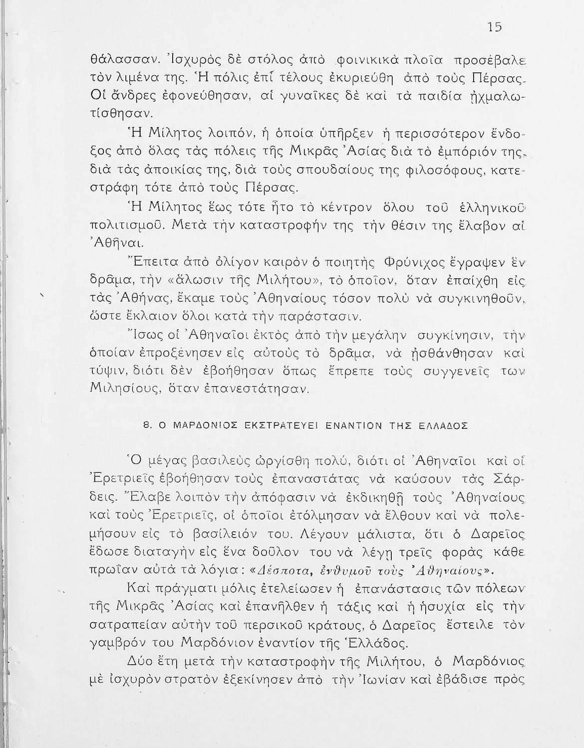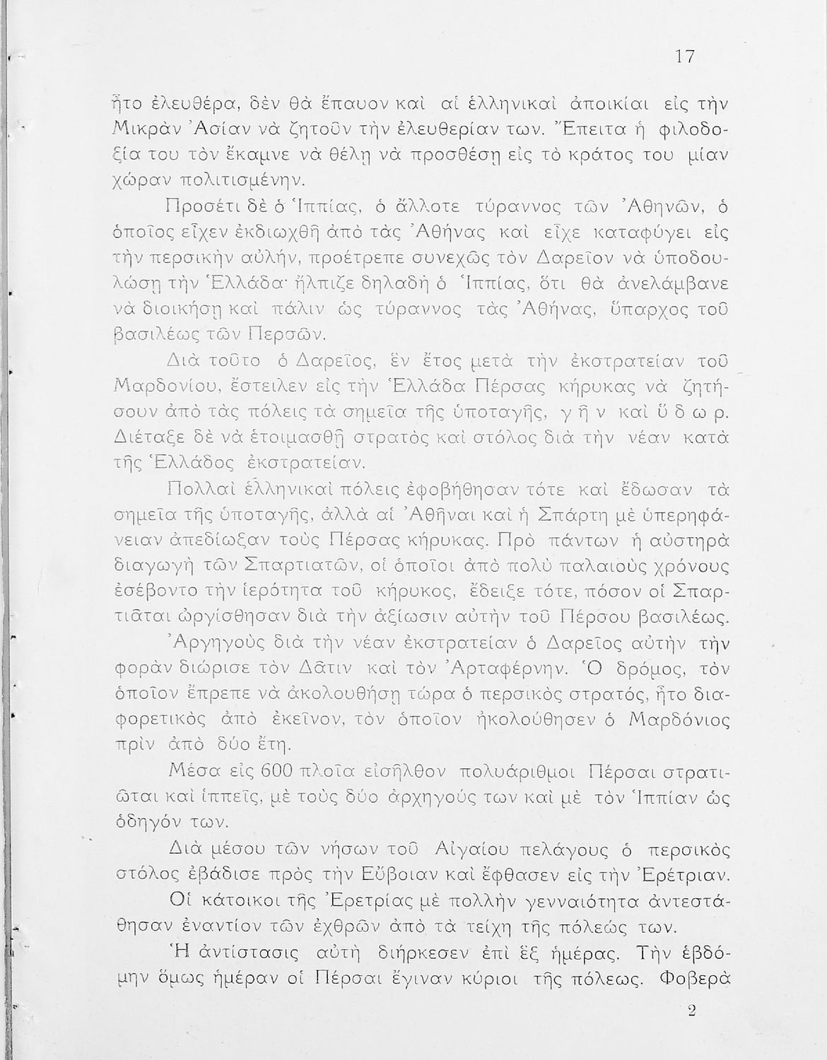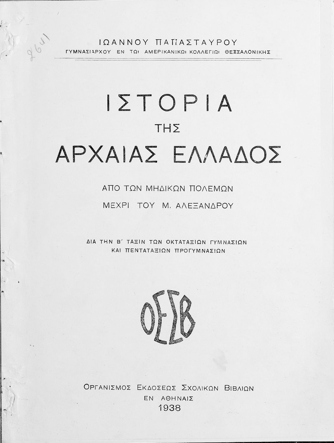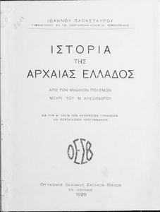 Βαθμίδα εκπαίδευσης: Δευτεροβάθμια Τάξη: Β' Γυμνασίου Μάθημα: Ιστορία Γλώσσα: Καθαρεύουσα Παρουσίαση περιεχομένου: Σχολικό εγχειρίδιο Ιστορίας Β΄ Γυμνασίου που καλύπτει την περίοδο από τους Περσικούς Πολέμους ως τη μάχη της Χαιρώνειας. |