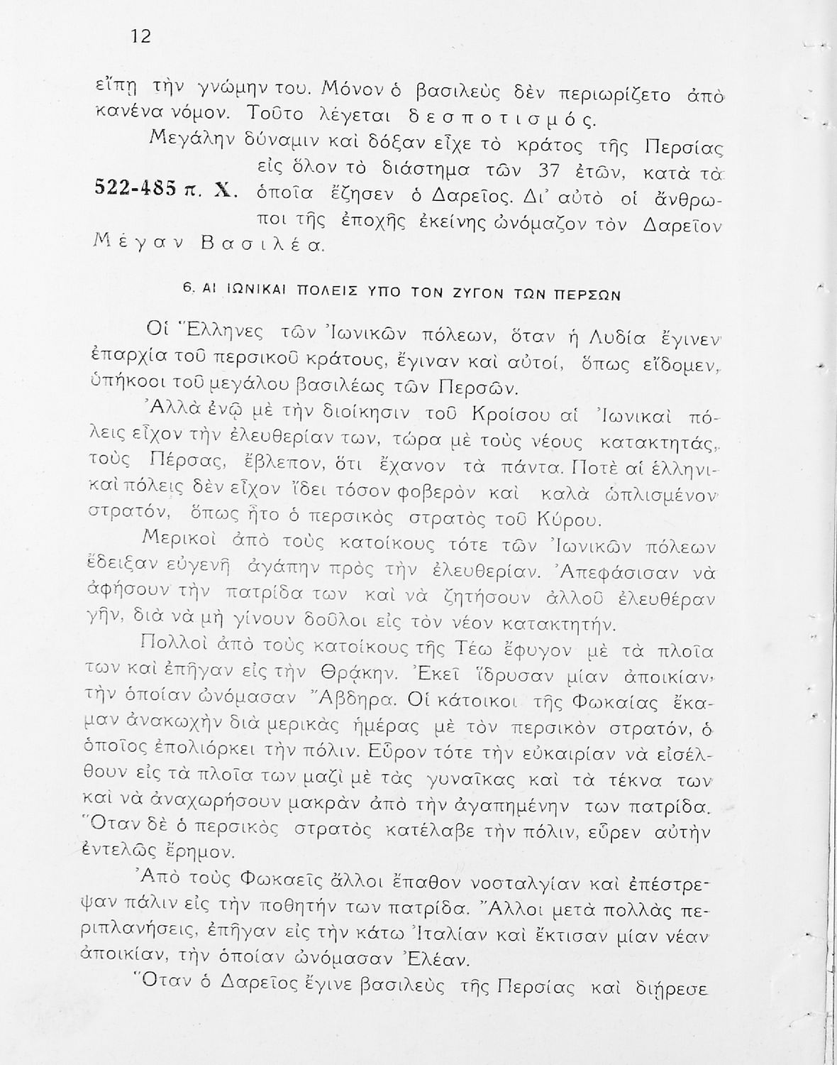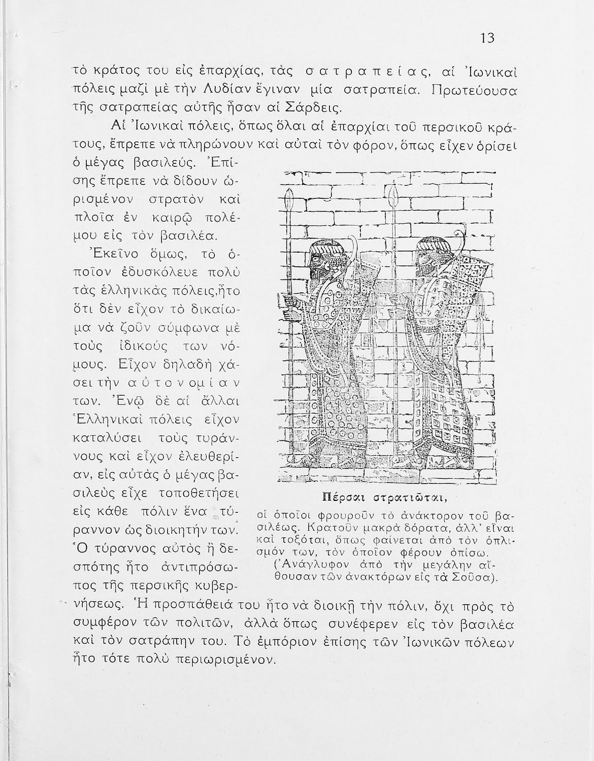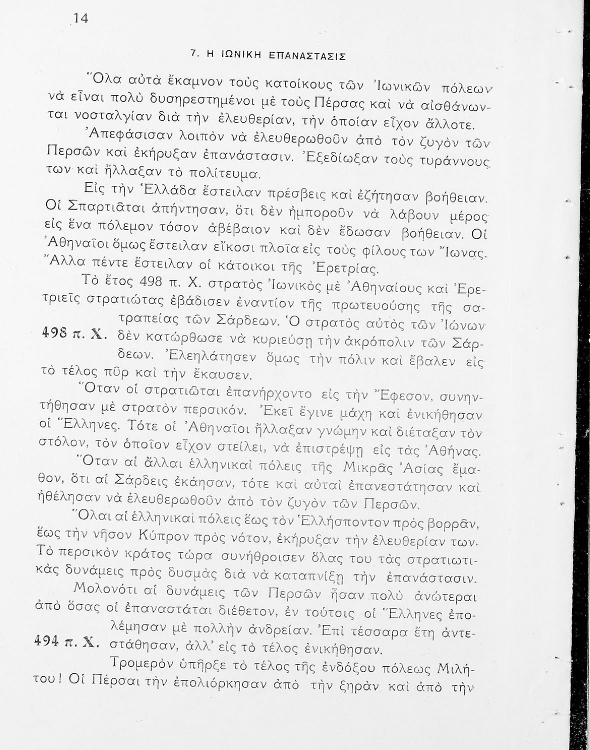 Βαθμίδα εκπαίδευσης: Δευτεροβάθμια Τάξη: Β' Γυμνασίου Μάθημα: Ιστορία Γλώσσα: Καθαρεύουσα Παρουσίαση περιεχομένου: Σχολικό εγχειρίδιο Ιστορίας Β΄ Γυμνασίου που καλύπτει την περίοδο από τους Περσικούς Πολέμους ως τη μάχη της Χαιρώνειας. |