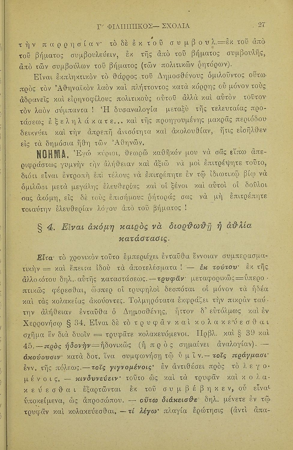 520 ## _aΜαθητικό βοήθημα Αρχαίων Ελληνικών Γ΄ Γυμνασίου που περιλαμβάνει το Λόγο του Δημοσθένη Κατά Φιλίππου Γ΄, εισαγωγή στην υπόθεση και πλοκή του έργου και ερμηνευτικά, πραγματολογικά και γραμματικά σχόλια.