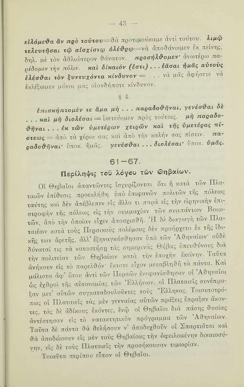 Τίτλος: Θουκυδίδου Ξυγγραφής - Πολιορκία και άλωσις των Πλαταιών και Αποστασία της Λέσβου προς χρήσιν των μαθητών της Δ΄ και της Ε΄ τάξεως των Γυμνασίων