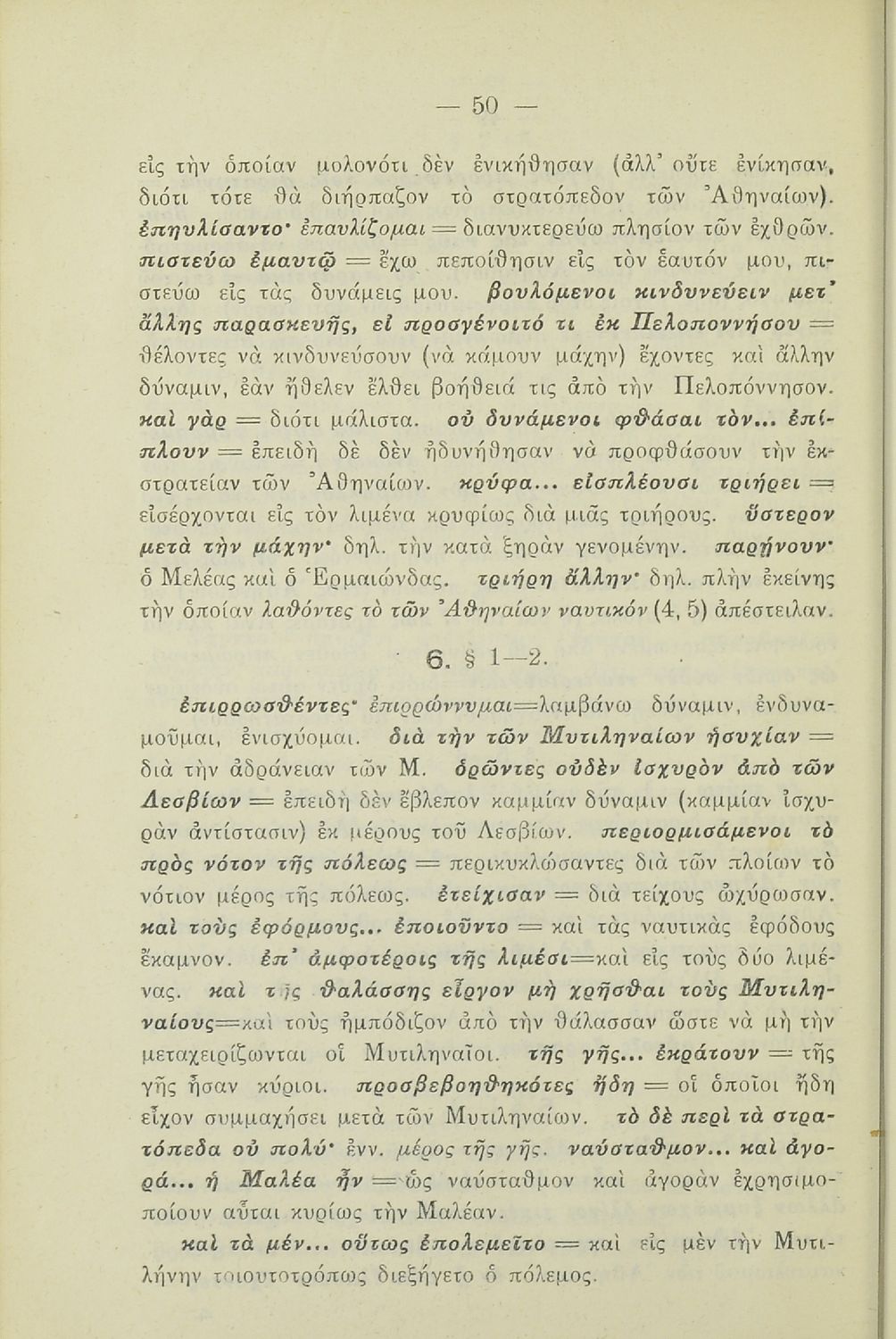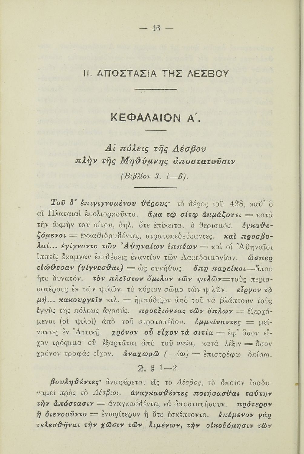 Σχολικό εγχειρίδιο Αρχαίων Ελληνικών για τις Δ΄ και Ε΄ Γυμνασίου που περιλαμβάνει εισαγωγή στη ζωή και το έργο του Θουκυδίδη αποσπάσματα από την Πολιορκία και άλωσις των Πλαταιών και την Αποστασία της Λέσβου, και ερμηνευτικά, πραγματολογικά, γραμματικά και λεξιλογικά σχόλια.