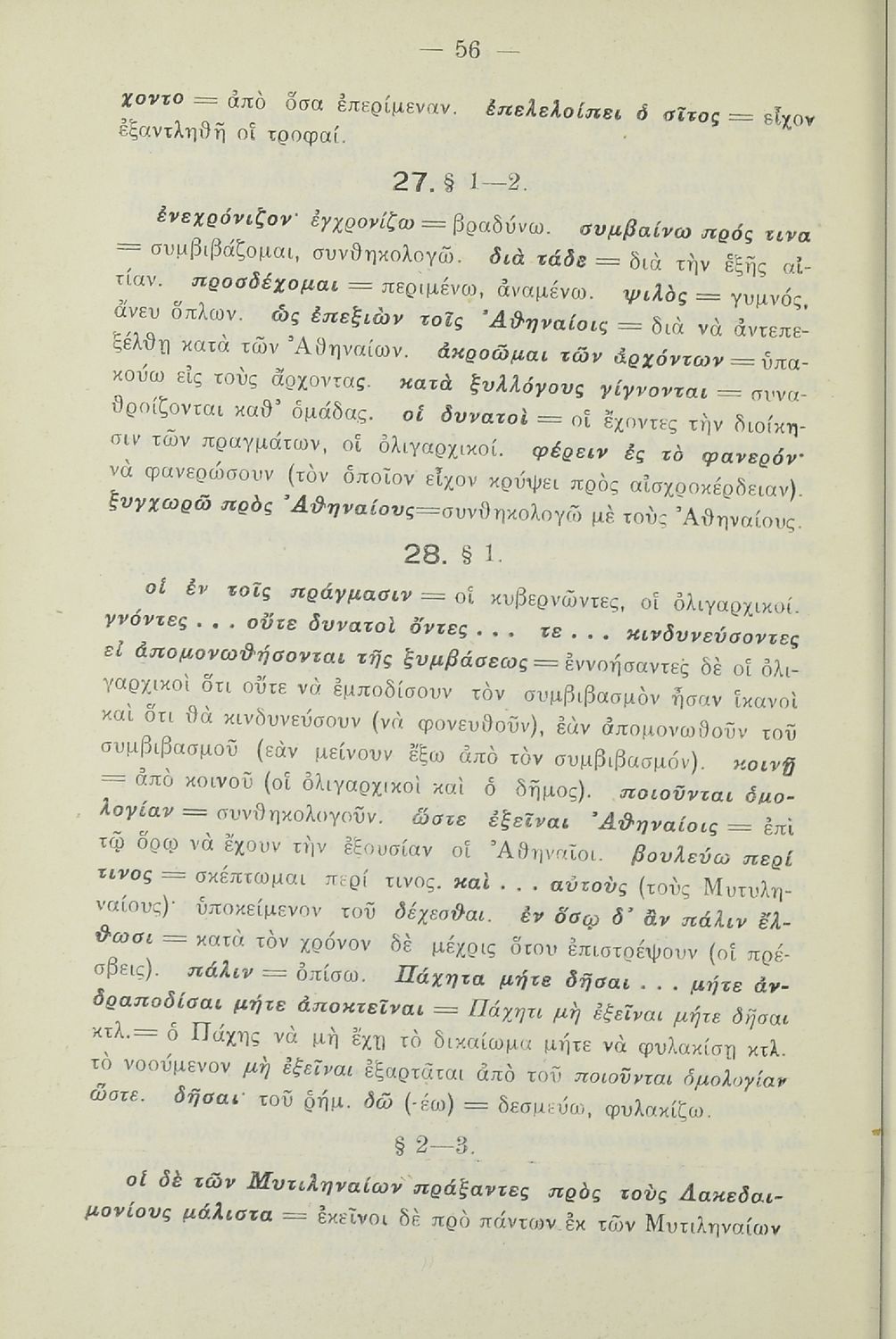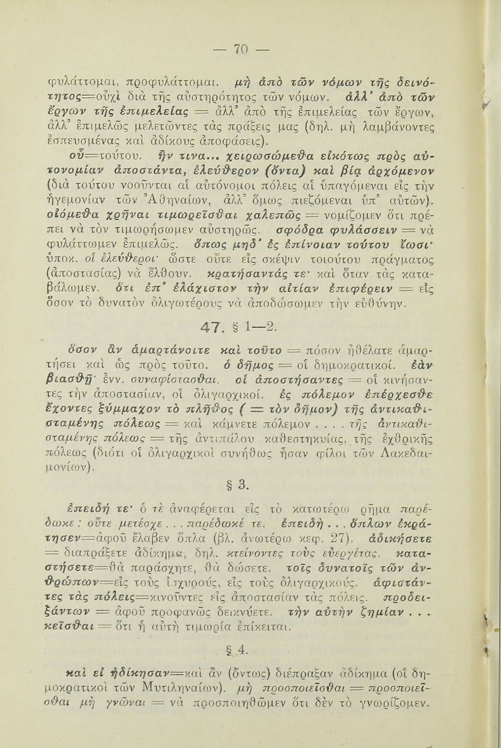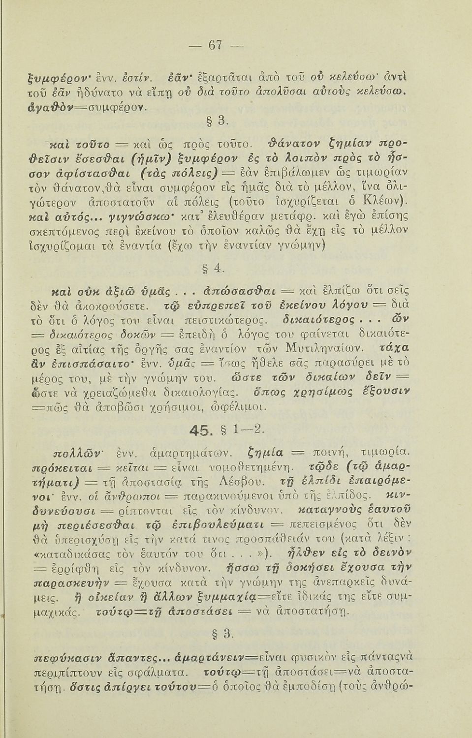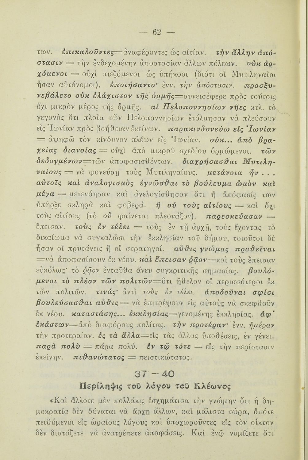 Σχολικό εγχειρίδιο Αρχαίων Ελληνικών για τις Δ΄ και Ε΄ Γυμνασίου που περιλαμβάνει εισαγωγή στη ζωή και το έργο του Θουκυδίδη αποσπάσματα από την Πολιορκία και άλωσις των Πλαταιών και την Αποστασία της Λέσβου, και ερμηνευτικά, πραγματολογικά, γραμματικά και λεξιλογικά σχόλια.