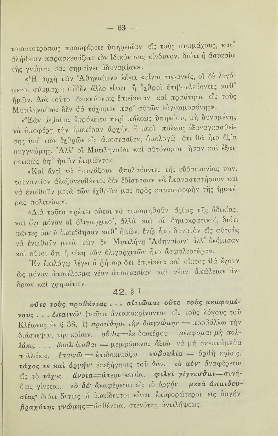 Μαθητικό βοήθημα Αρχαίων Ελληνικών που περιλαμβάνει σχολική μετάφραση του πρώτου βιβλίου της Ιστορίας του Θουκυδίδη.