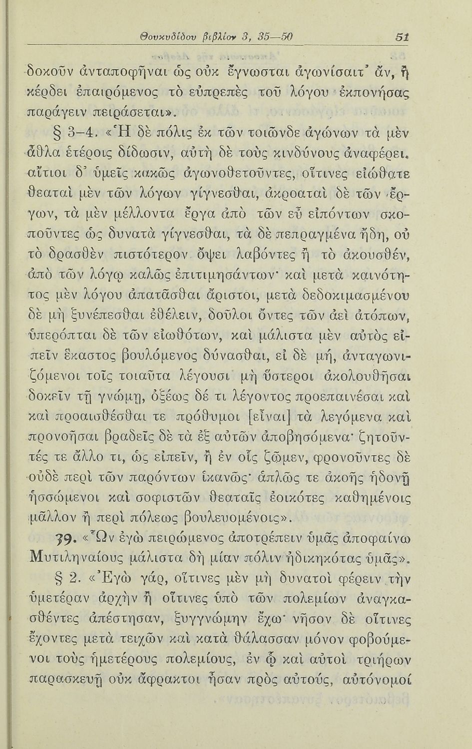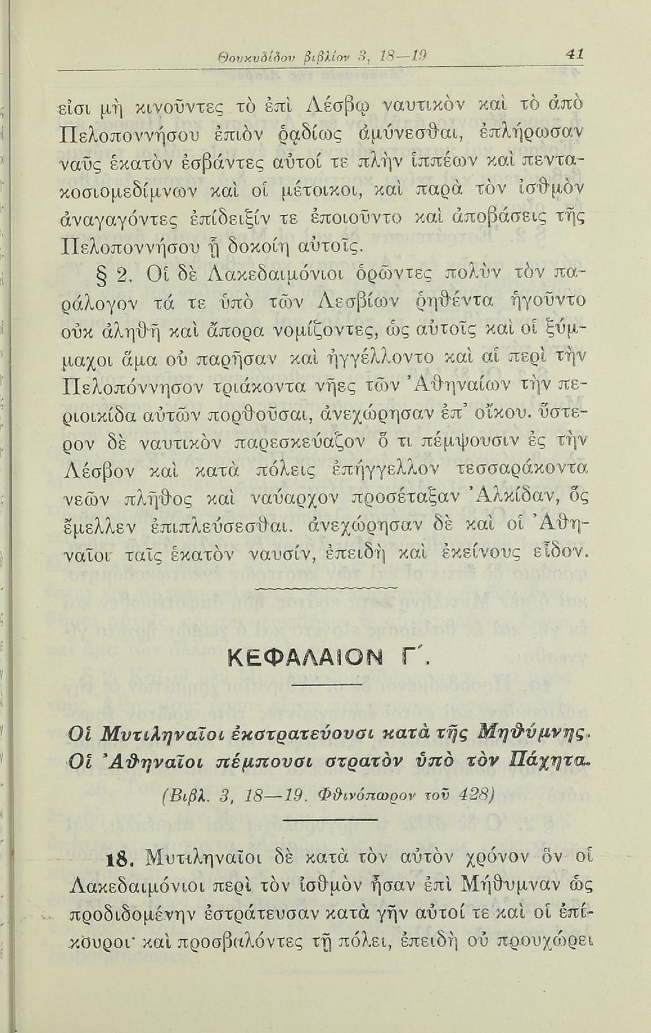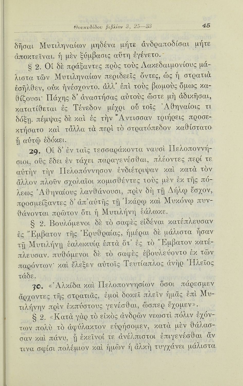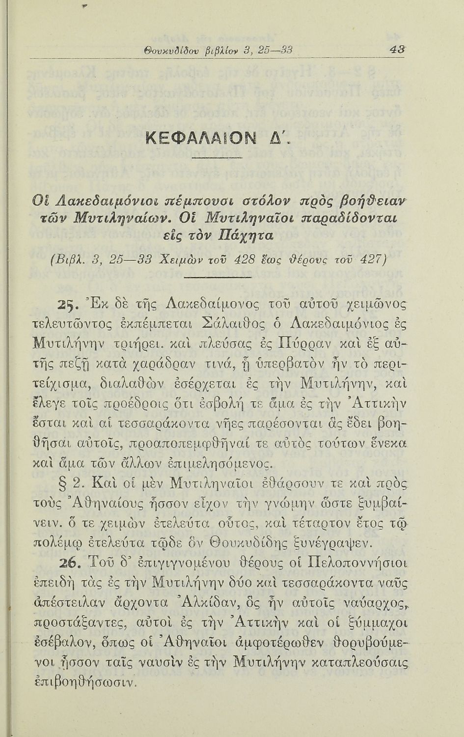 Σχολικό εγχειρίδιο Αρχαίων Ελληνικών για τις Δ΄ και Ε΄ Γυμνασίου που περιλαμβάνει εισαγωγή στη ζωή και το έργο του Θουκυδίδη αποσπάσματα από την Πολιορκία και άλωσις των Πλαταιών και την Αποστασία της Λέσβου, και ερμηνευτικά, πραγματολογικά, γραμματικά και λεξιλογικά σχόλια.