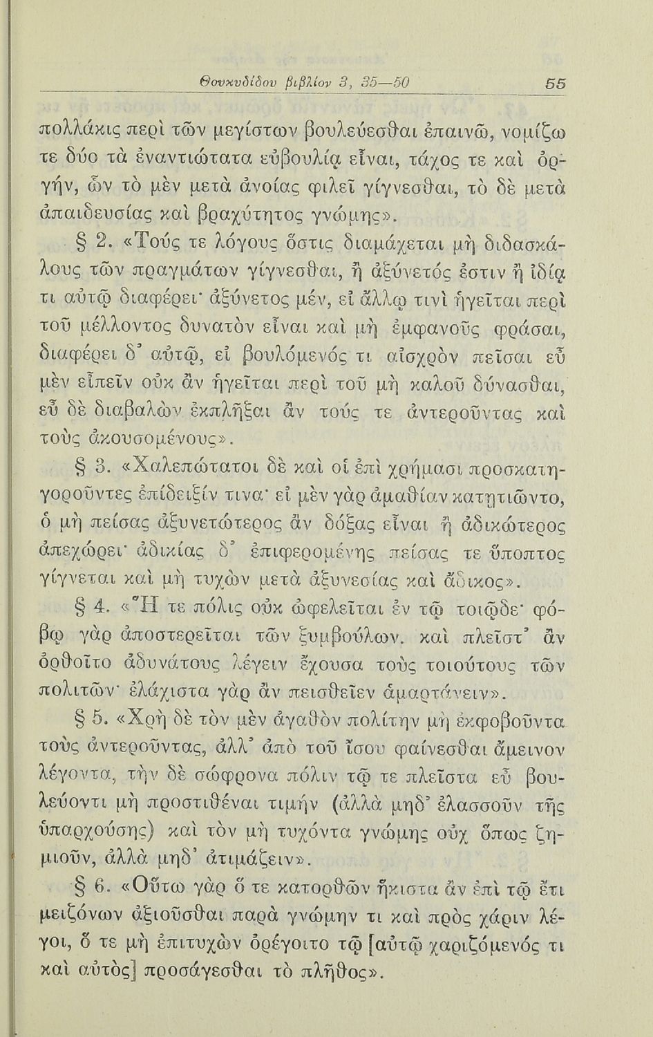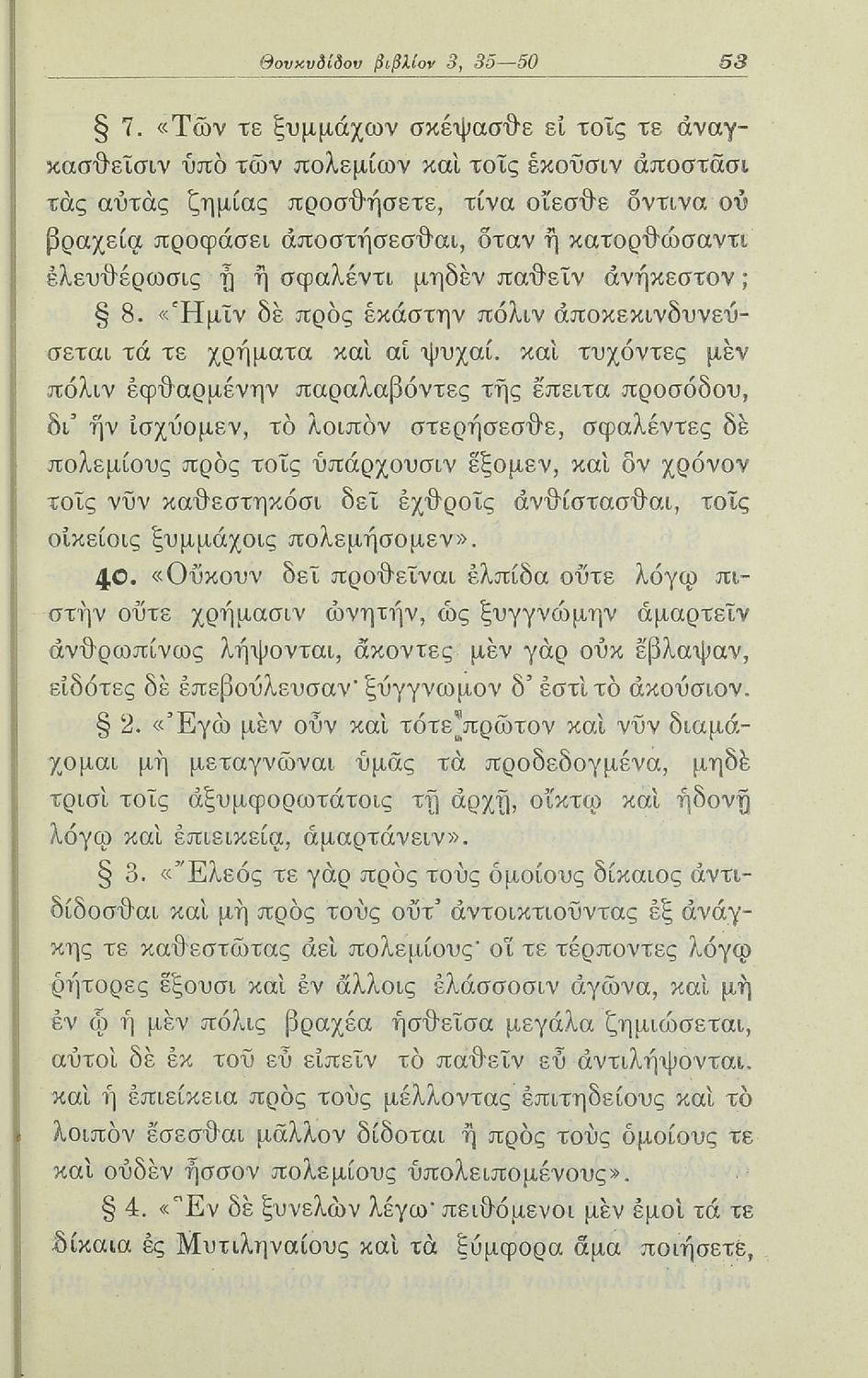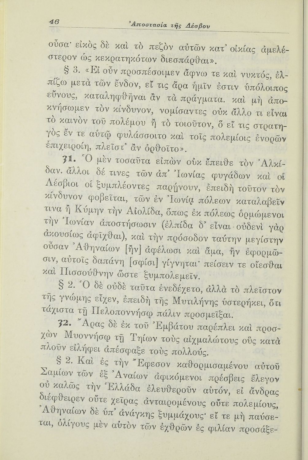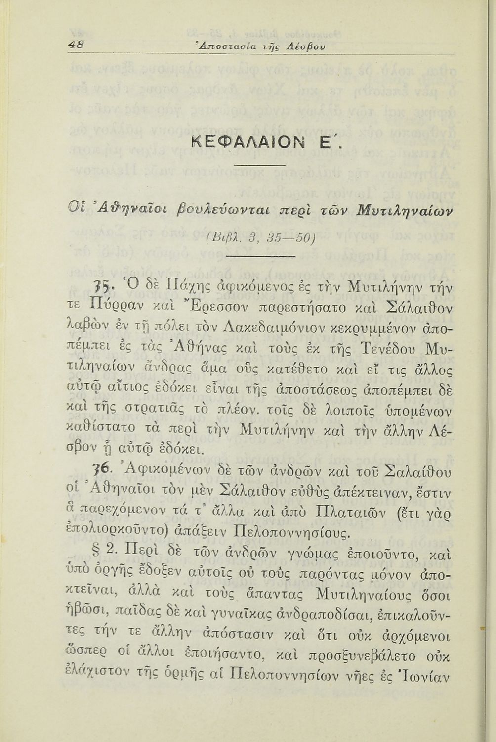 Σχολικό εγχειρίδιο Αρχαίων Ελληνικών για τις Δ΄ και Ε΄ Γυμνασίου που περιλαμβάνει εισαγωγή στη ζωή και το έργο του Θουκυδίδη αποσπάσματα από την Πολιορκία και άλωσις των Πλαταιών και την Αποστασία της Λέσβου, και ερμηνευτικά, πραγματολογικά, γραμματικά και λεξιλογικά σχόλια.