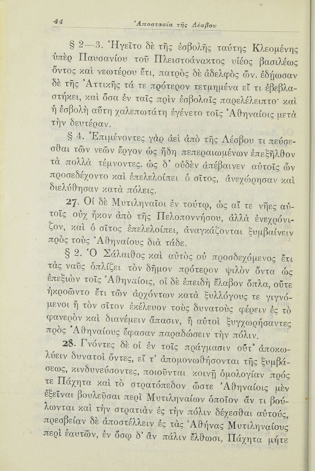 Τίτλος: Θουκυδίδου Ξυγγραφής - Πολιορκία και άλωσις των Πλαταιών και Αποστασία της Λέσβου προς χρήσιν των μαθητών της Δ΄ και της Ε΄ τάξεως των Γυμνασίων