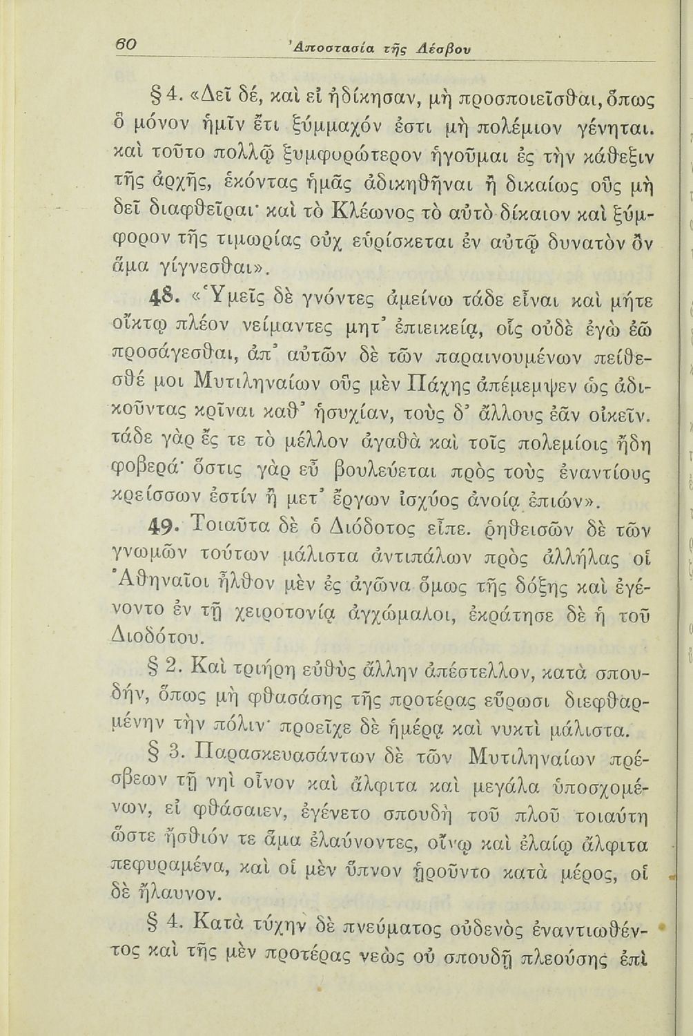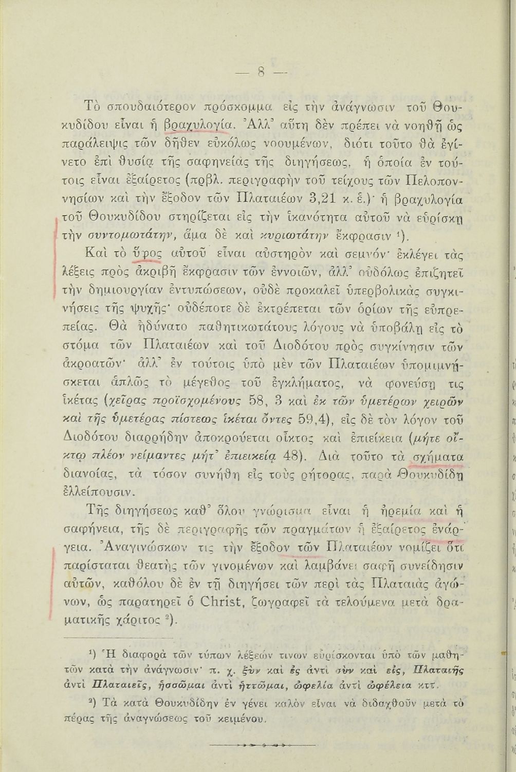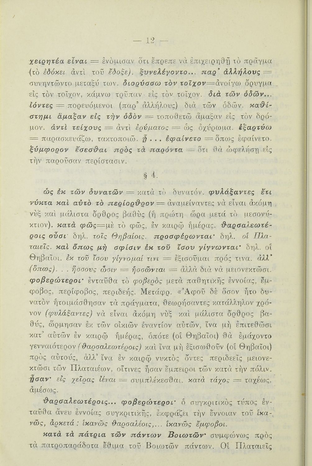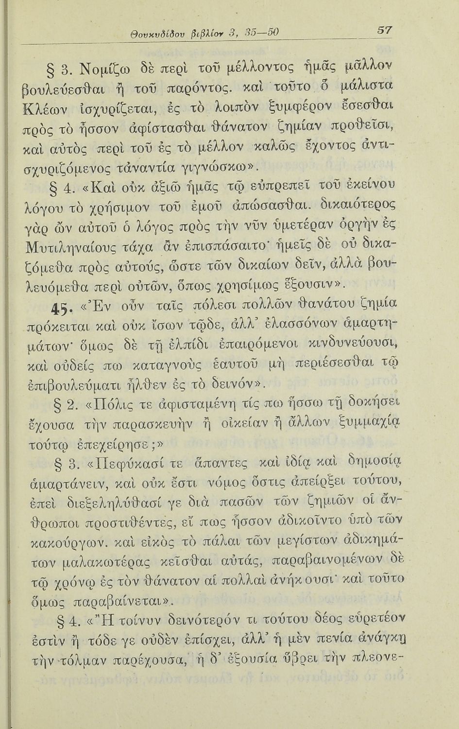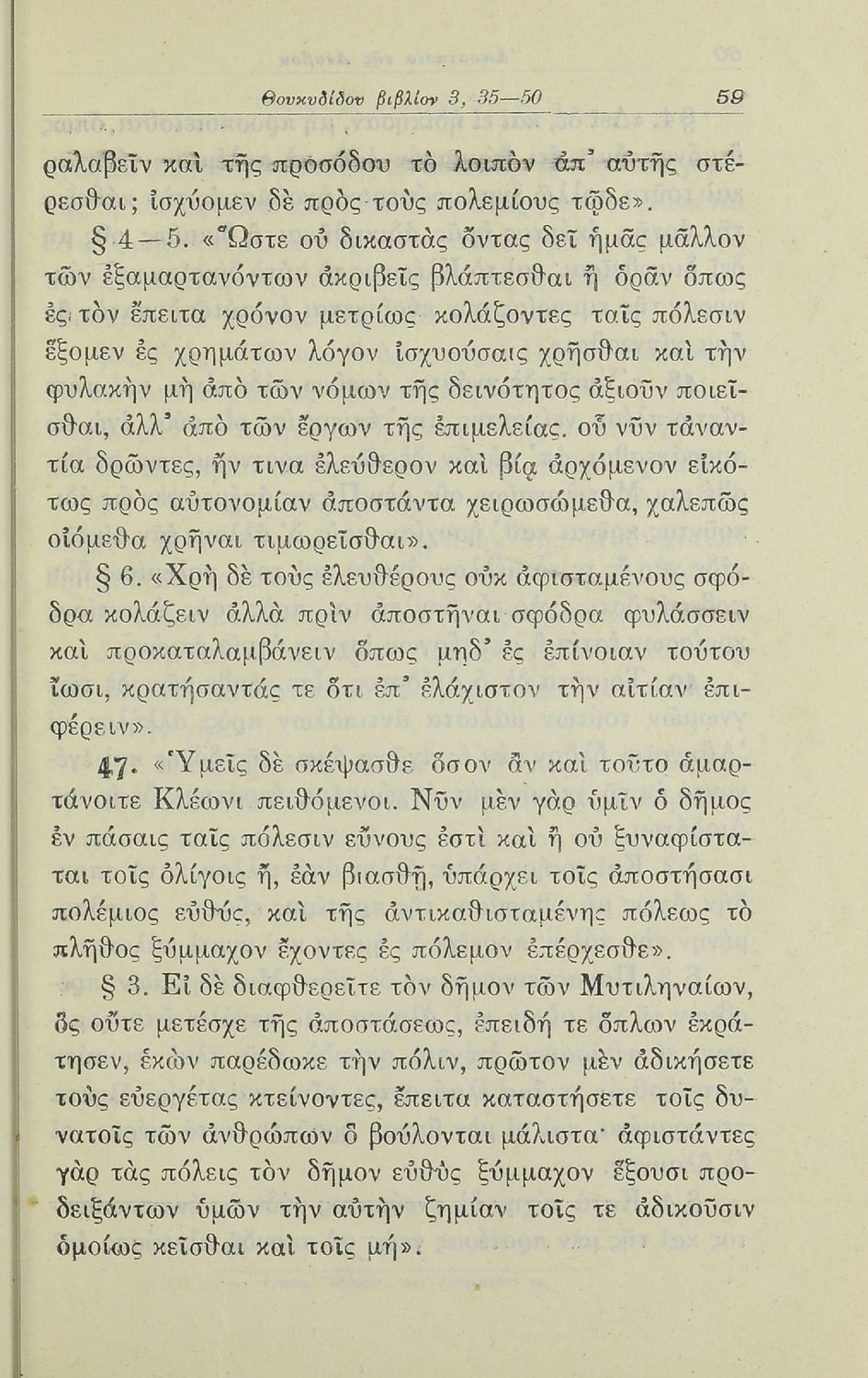 Σχολικό εγχειρίδιο Αρχαίων Ελληνικών για τις Δ΄ και Ε΄ Γυμνασίου που περιλαμβάνει εισαγωγή στη ζωή και το έργο του Θουκυδίδη αποσπάσματα από την Πολιορκία και άλωσις των Πλαταιών και την Αποστασία της Λέσβου, και ερμηνευτικά, πραγματολογικά, γραμματικά και λεξιλογικά σχόλια.