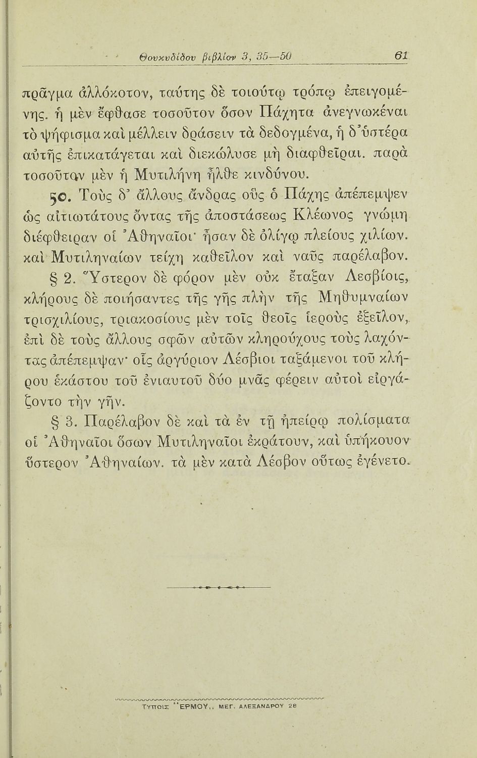 Τίτλος: Θουκυδίδου Ξυγγραφής - Πολιορκία και άλωσις των Πλαταιών και Αποστασία της Λέσβου προς χρήσιν των μαθητών της Δ΄ και της Ε΄ τάξεως των Γυμνασίων
