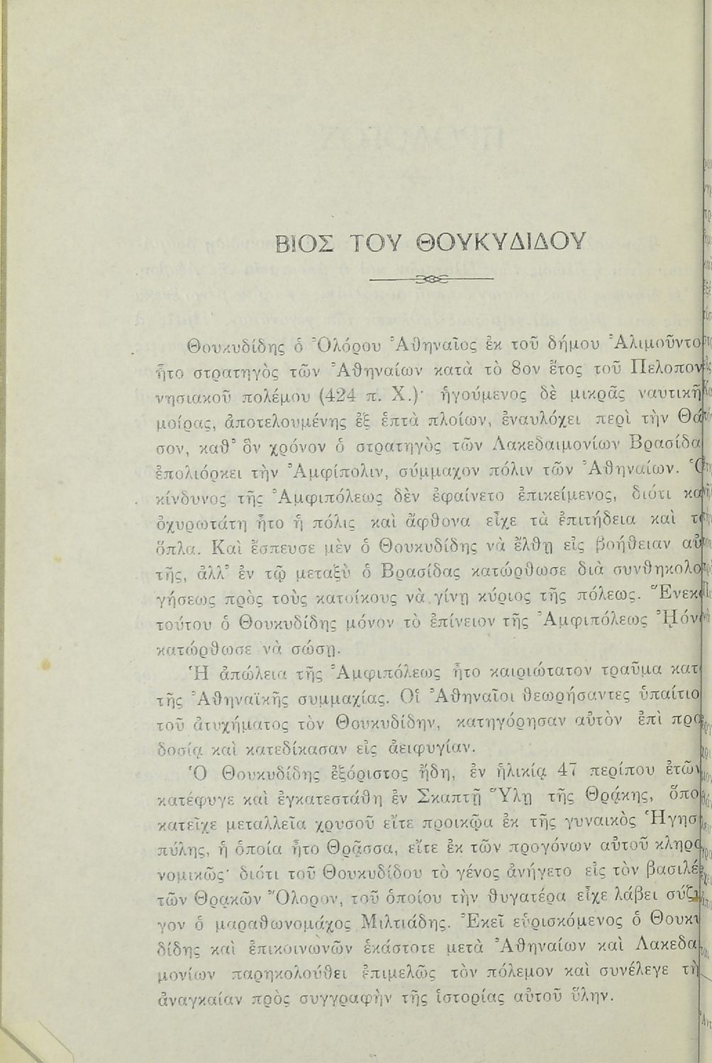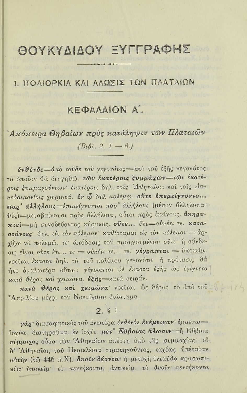Μαθητικό βοήθημα Αρχαίων Ελληνικών που περιλαμβάνει σχολική μετάφραση του πρώτου βιβλίου της Ιστορίας του Θουκυδίδη.