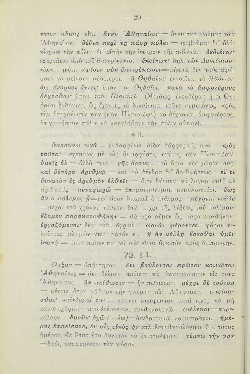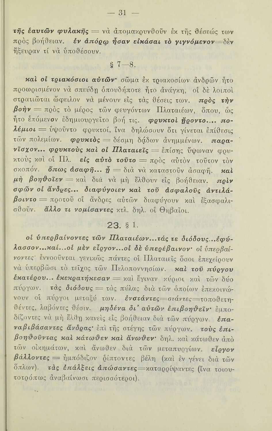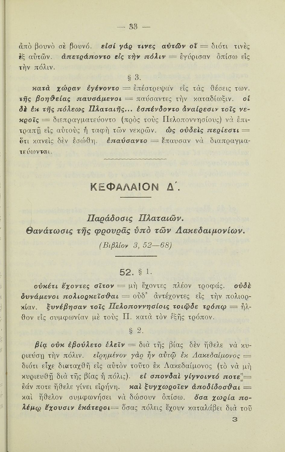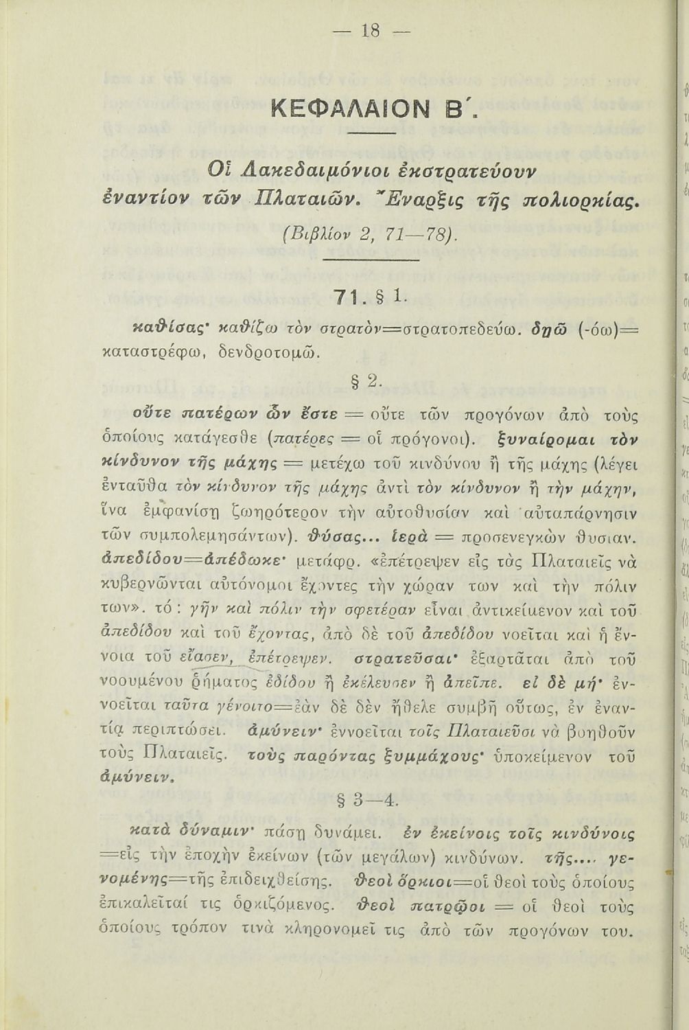 Σχολικό εγχειρίδιο Αρχαίων Ελληνικών για τις Δ΄ και Ε΄ Γυμνασίου που περιλαμβάνει εισαγωγή στη ζωή και το έργο του Θουκυδίδη αποσπάσματα από την Πολιορκία και άλωσις των Πλαταιών και την Αποστασία της Λέσβου, και ερμηνευτικά, πραγματολογικά, γραμματικά και λεξιλογικά σχόλια.