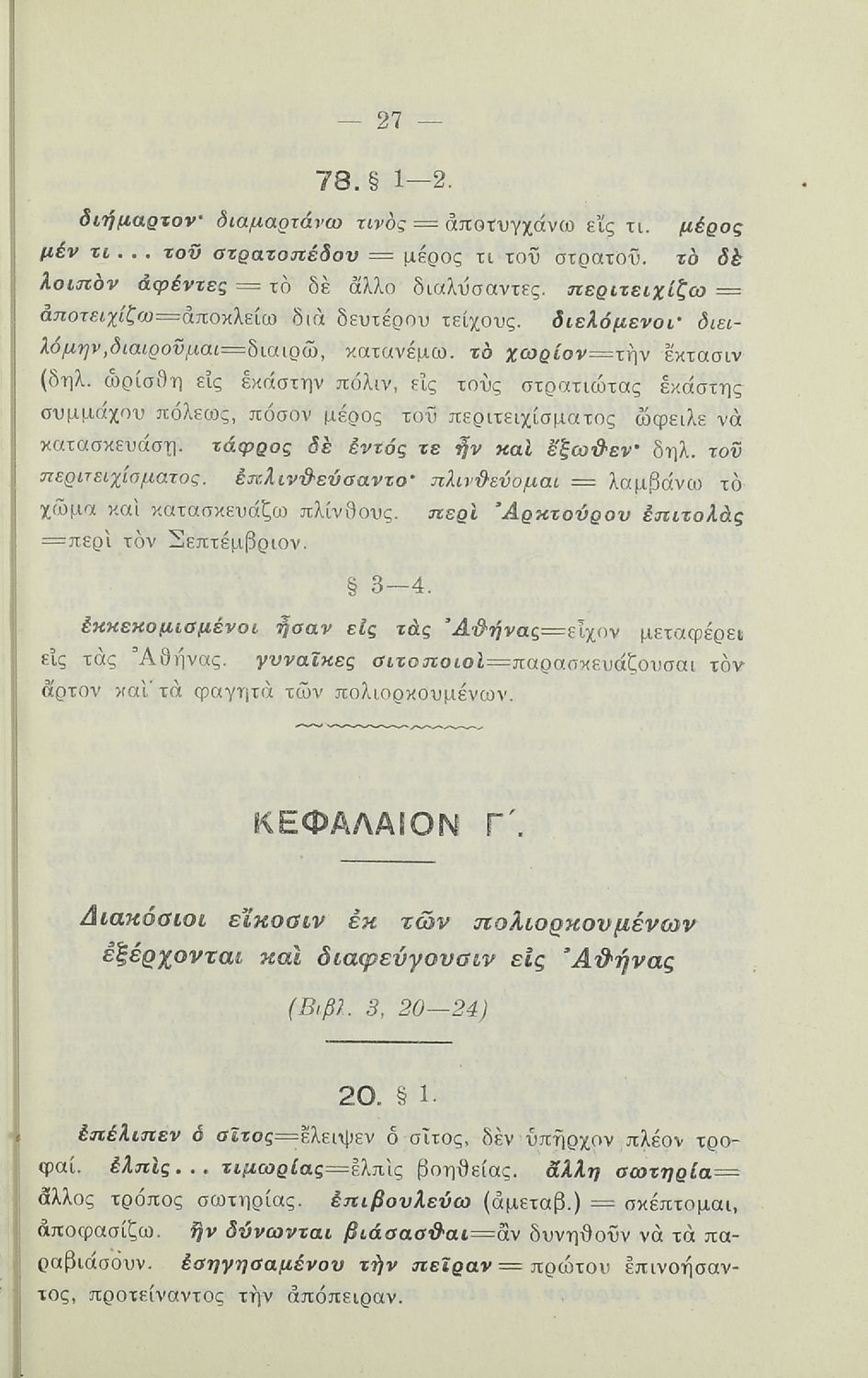 Βαθμίδα εκπαίδευσης: Δευτεροβάθμια Τάξη: Δ' Γυμνασίου / Ε' Γυμνασίου Μάθημα: Αρχαία Ελληνικά Γλώσσα: Καθαρεύουσα Παρουσίαση περιεχομένου: Σχολικό εγχειρίδιο Αρχαίων Ελληνικών για τις Δ΄ και Ε΄ Γυμνασίου που περιλαμβάνει εισαγωγή στη ζωή και το έργο του Θουκυδίδη αποσπάσματα από την Πολιορκία και άλωσις των Πλαταιών και την Αποστασία της Λέσβου, και ερμηνευτικά, πραγματολογικά, γραμματικά και λεξιλογικά σχόλια. |