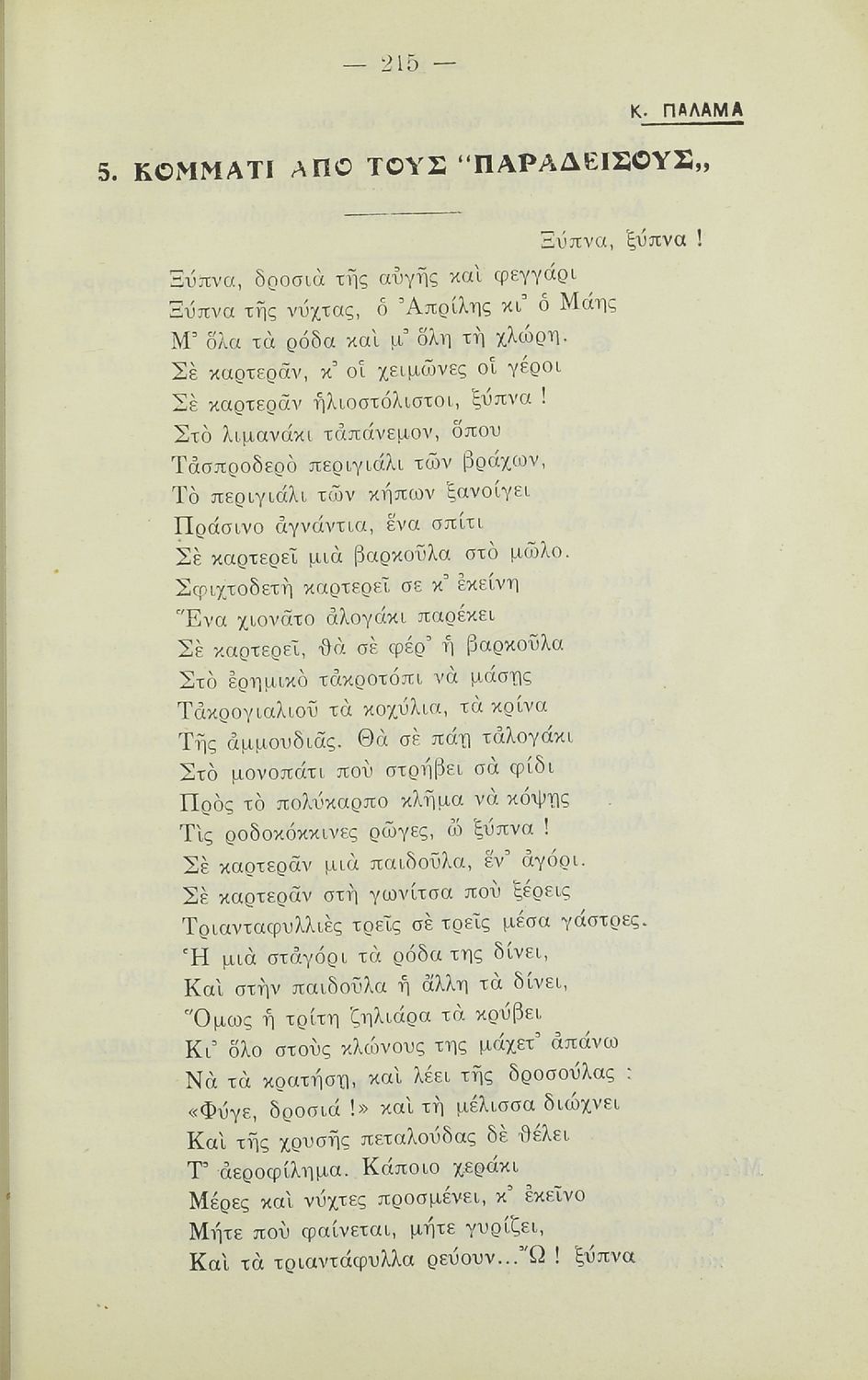 Σχετιζόμενοι όροι:  Λάμπρος, Σολωμός, Κάλβος, Κοραής, Παλαμάς