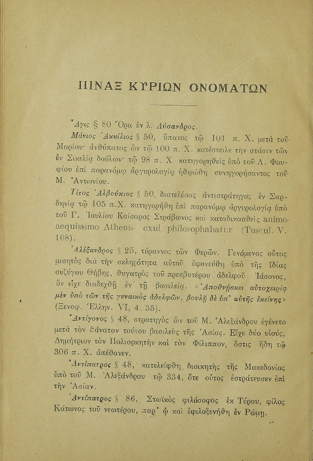 Σχολικό εγχειρίδιο Λατινικών για τη ΣΤ΄ Γυμνασίου που περιέχει κείμενο, εισαγωγή, ερμηνευτικό υπόμνημα και πίνακα με τα κύρια ονόματα.