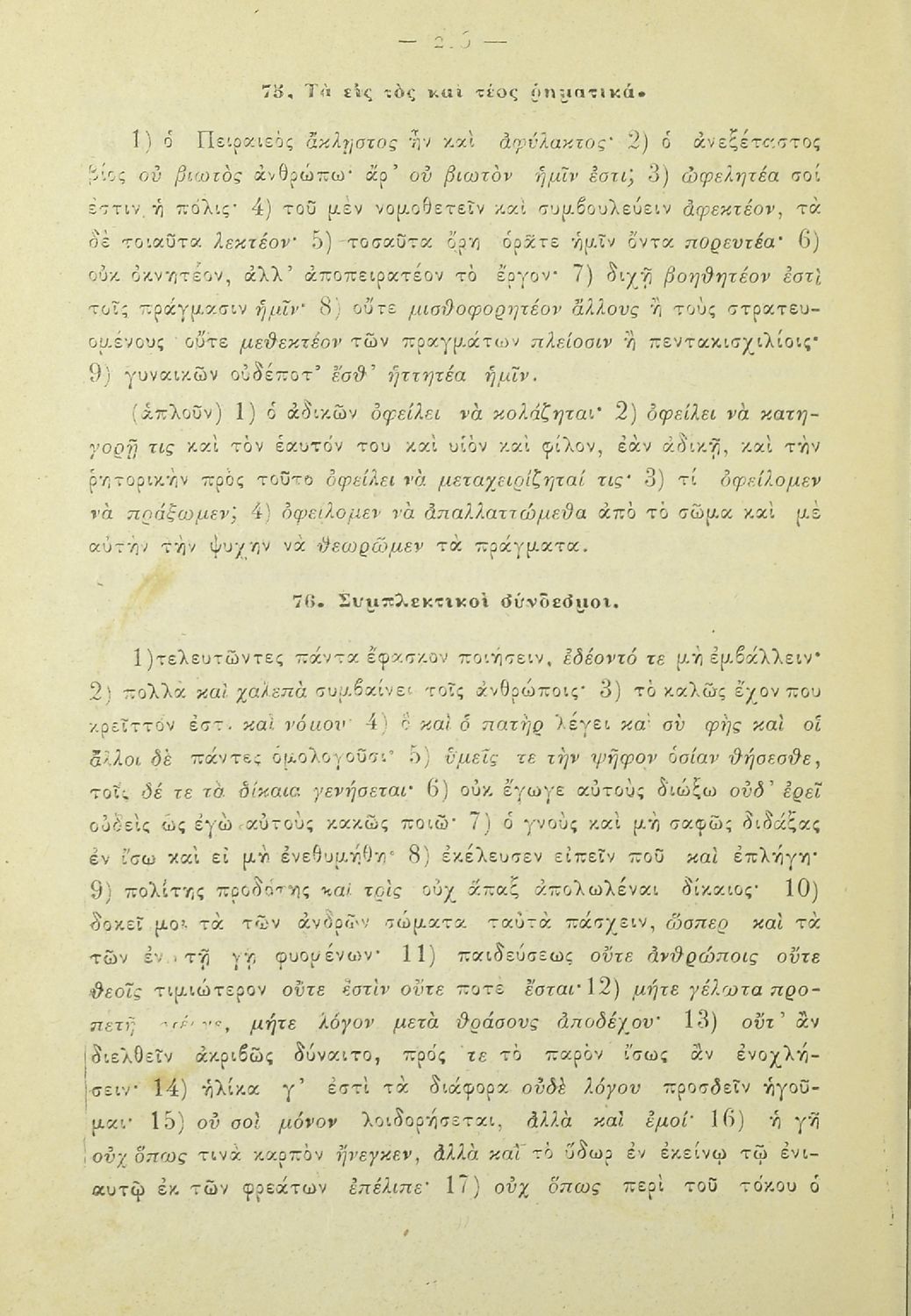 LDR 01028 2200193 4500 035 ## _a20-02754 040 ## _aΚΕΝΕΚ - Εταιρεία Σπουδών Νεοελληνικού Πολιτισμού και Παιδείας 041 ## _ael 100 ## _aΚωνσταντίνος Σ. Κατεβαίνης 110 ## _a2754 245 0# _aΣυντακτικόν της ελληνικής γλώσσης προς χρήσιν των Γυμνασίων 260 ## _aΑθήνα _bΙωάννης Δ. Κολλάρος, Βιβλιοπωλείο της "Εστίας" _c1914 300 ## _a238 _c19 520 ## _aΣχολικό εγχειρίδιο Αρχαίων Ελληνικών Γυμνασίου που εξετάζει τα μέρη του λόγου και την σύνταξή τους. 521 ## _aΓυμνάσιο 522 ## _aΕλλάδα 546 ## _aΚαθαρεύουσα 563 ## _aΜαλακό Εξώφυλλο 650 #4 _aΑντικείμενο _aΠροθέσεις _aΠροσδιορισμοί _aΡήματα _aΥποκείμενο