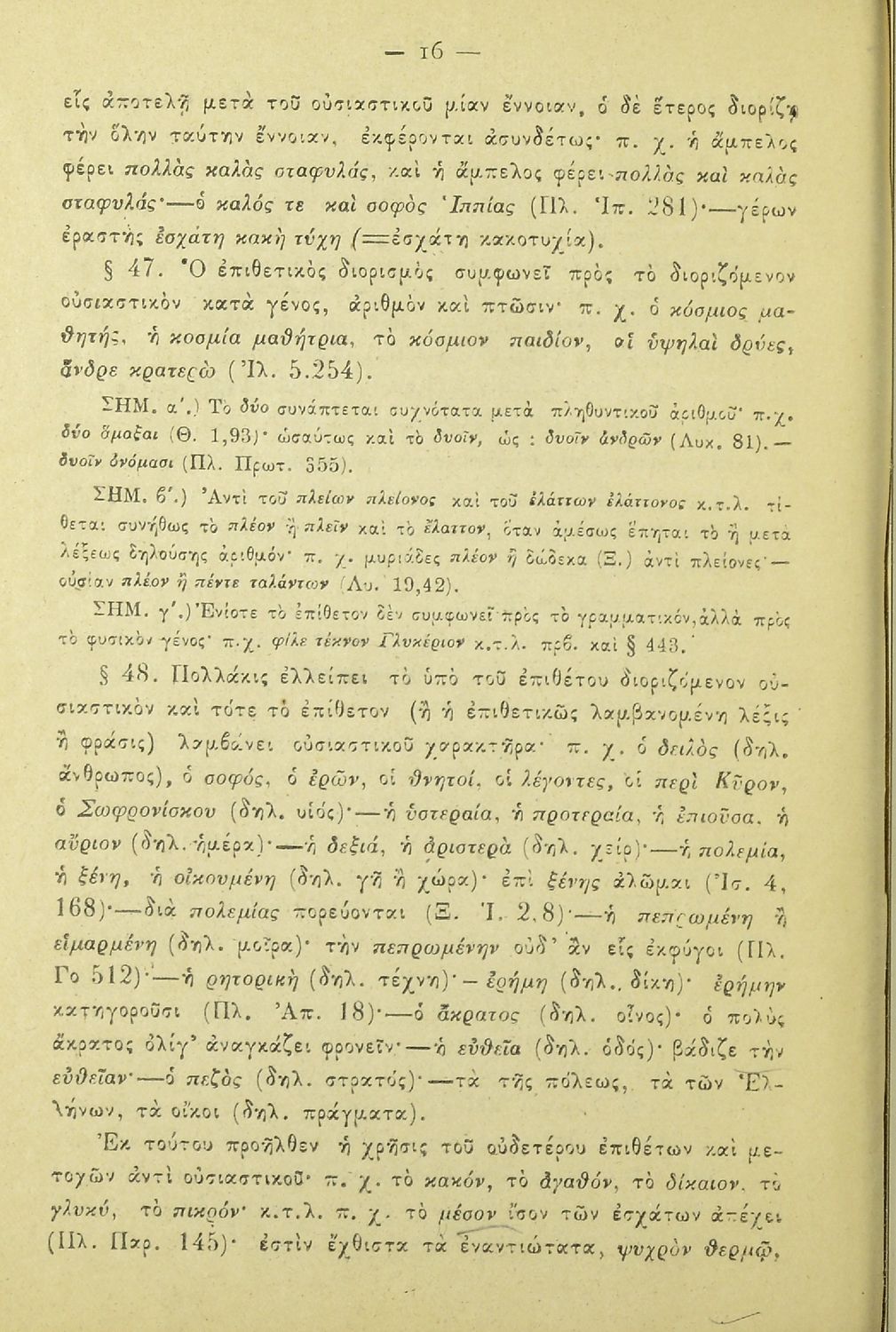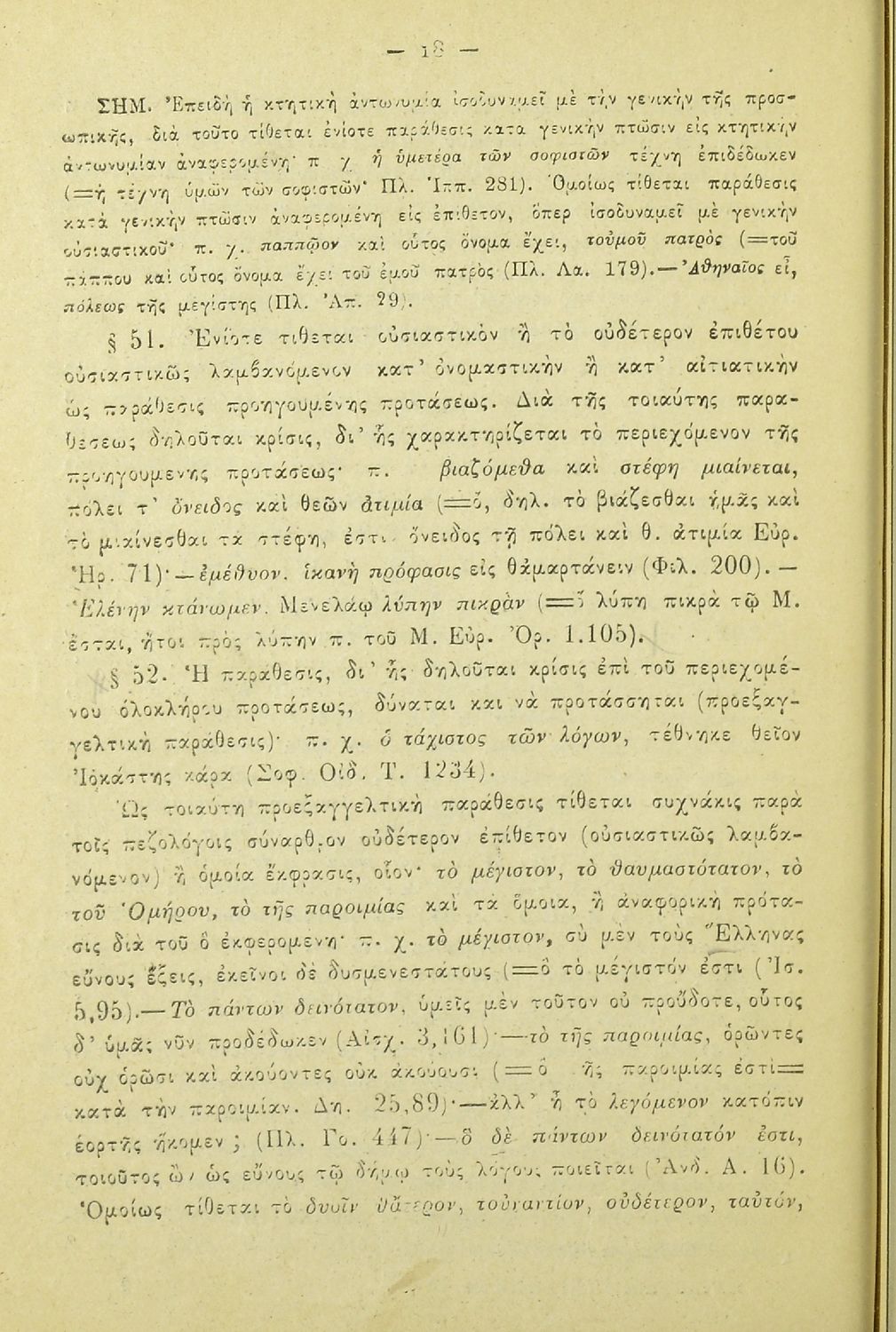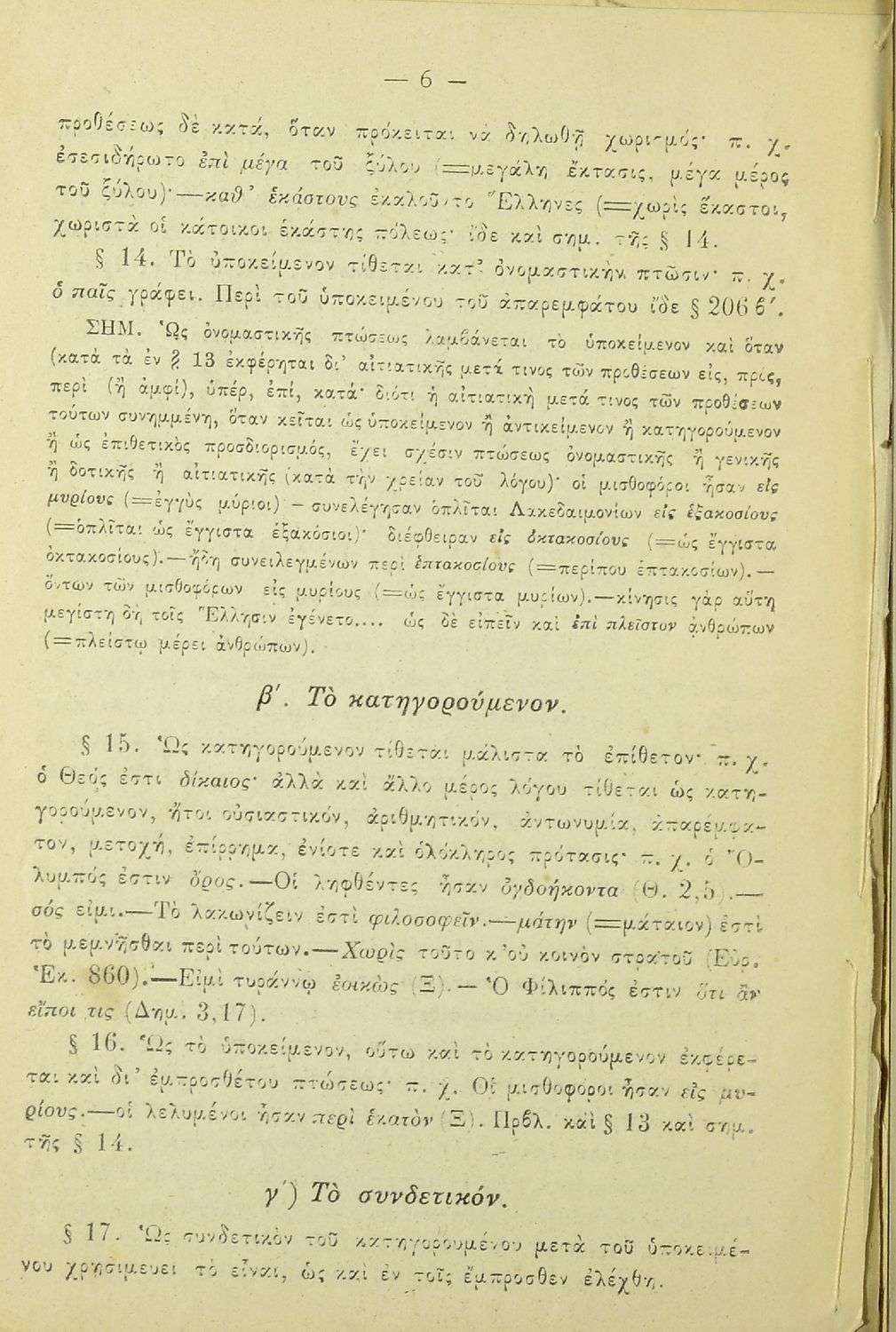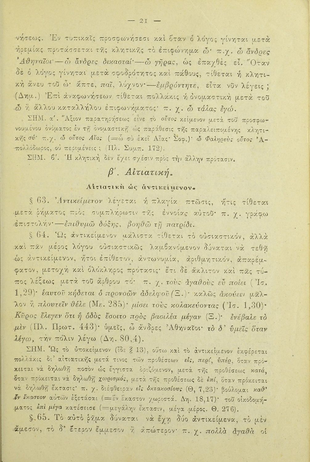 Βαθμίδα εκπαίδευσης: Δευτεροβάθμια Τάξη: Γυμνάσιο Μάθημα: Αρχαία Ελληνικά Γλώσσα: Καθαρεύουσα Παρουσίαση περιεχομένου: Σχολικό εγχειρίδιο Αρχαίων Ελληνικών Γυμνασίου που εξετάζει τα μέρη του λόγου και την σύνταξή τους. |